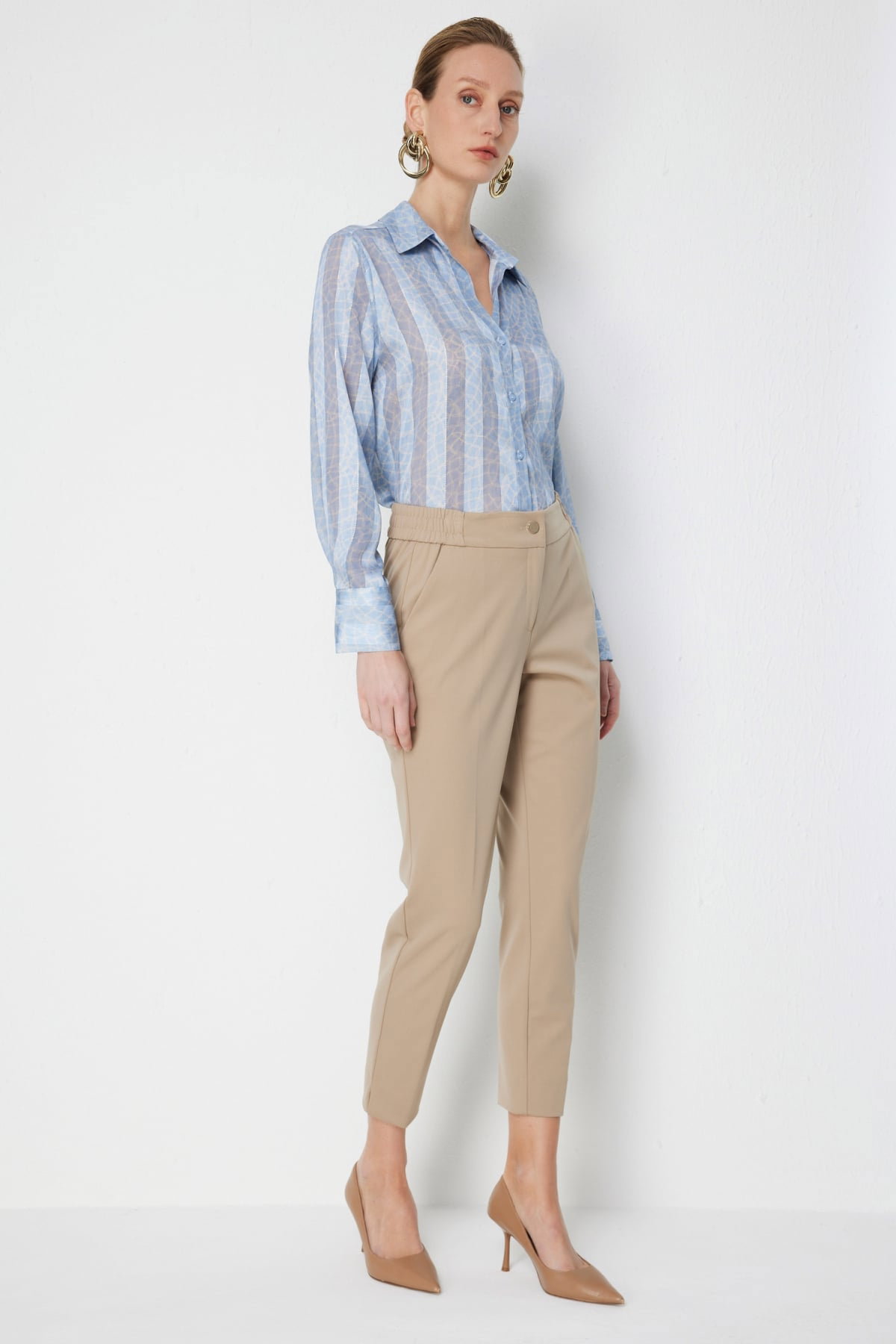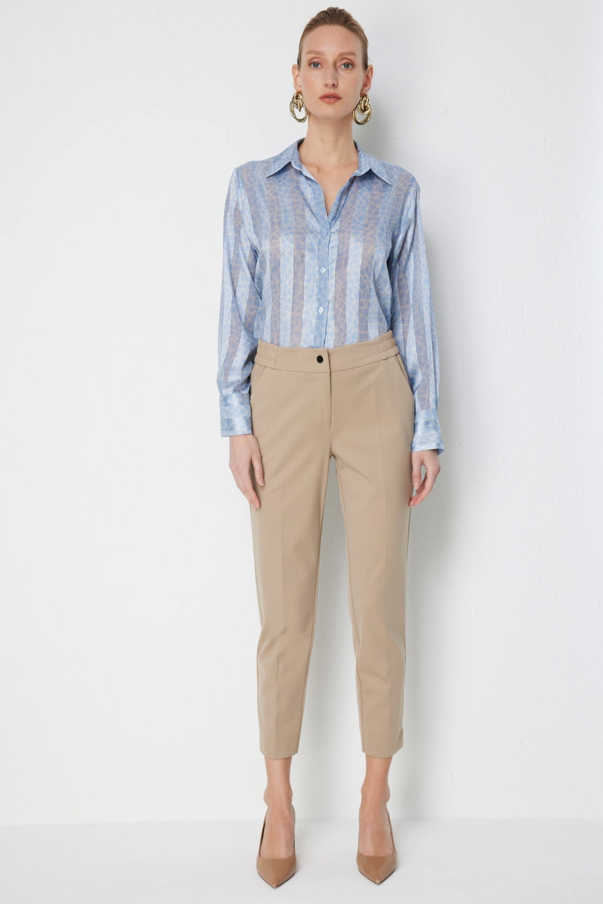 Detay: Dokuma kumaş, astarsız, lastikli bel, dar paça ve fermuarlı kapama ile yan cepli tasarımıyla öne çıkan bu pantolon modern ve rahat bir şıklık sunuyor. Lastikli bel formu konforlu bir kullanım sağlarken, dar paça tasarımı fit ve zarif bir duruş kazandırıyor. Yan cepler pratiklik katarken, dokuma kumaşın hafif ve dayanıklı yapısı sayesinde hem günlük kombinlerde hem de iş ortamında çok yönlü bir tercih haline geliyor;