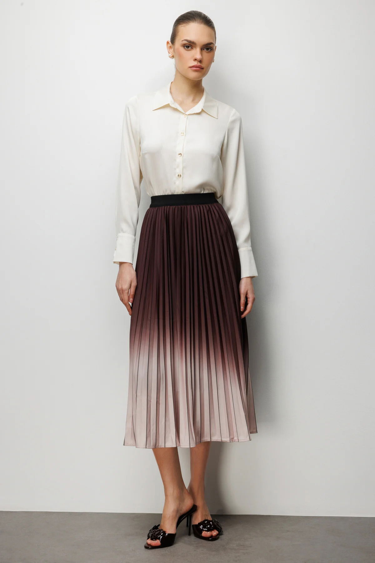 Detay: Polyester kumaştan üretilen, astarlı yapısıyla şık ve düzgün bir duruş sağlayan lastikli bel detaylı midi etek, hem rahatlık hem de zarif bir görünüm sunar. Lastikli bel tasarımı sayesinde esnek ve konforlu bir kullanım imkânı verirken, midi boyu ile modern ve feminen bir şıklık kazandırır. Dayanıklı polyester dokusu uzun süreli kullanım sağlarken, bu etek günlük kombinlerden özel davetlere kadar gardırobunuzun çok yönlü parçalarından biri olur;