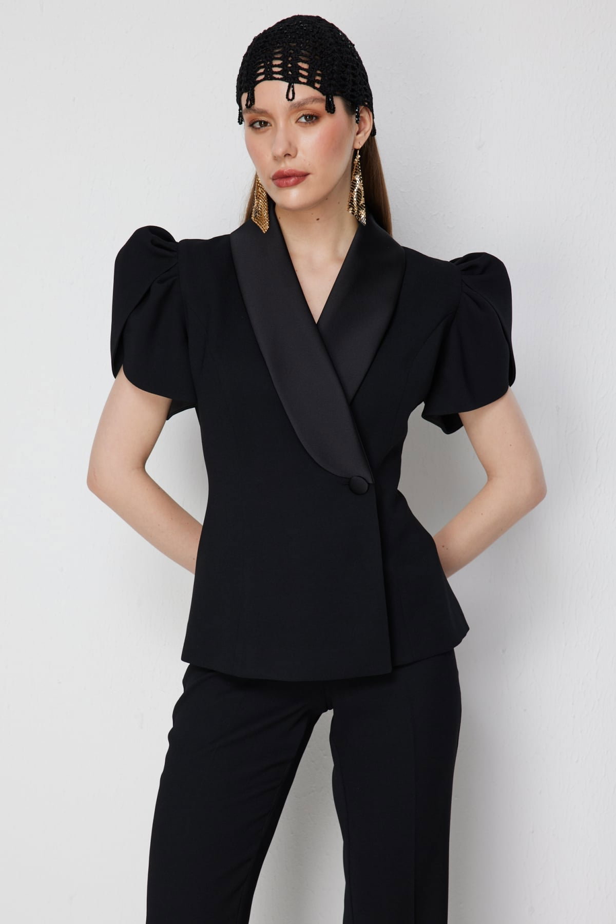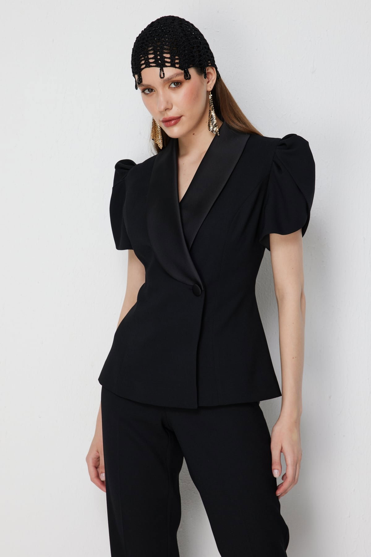 Detay: Polyester kumaş, astarlı, ceket yaka, balon kol, kısa kollu ve düğmeli bu ceket modeli modern ve zarif bir şıklık sunar. Dayanıklı polyester dokusu hafif ve rahat bir kullanım sağlarken astarlı yapısı daha düzgün bir duruş verir. Ceket yaka klasik bir zarafet kazandırırken balon kol detayı feminen bir görünüm ortaya çıkarır. Kısa kol formu dinamik bir stil sunarken düğmeli kapama pratiklik ve klasik bir şıklık sağlar. Bu ceket modeli hem günlük kombinlerde hem de özel davetlerde tercih edilebilir;