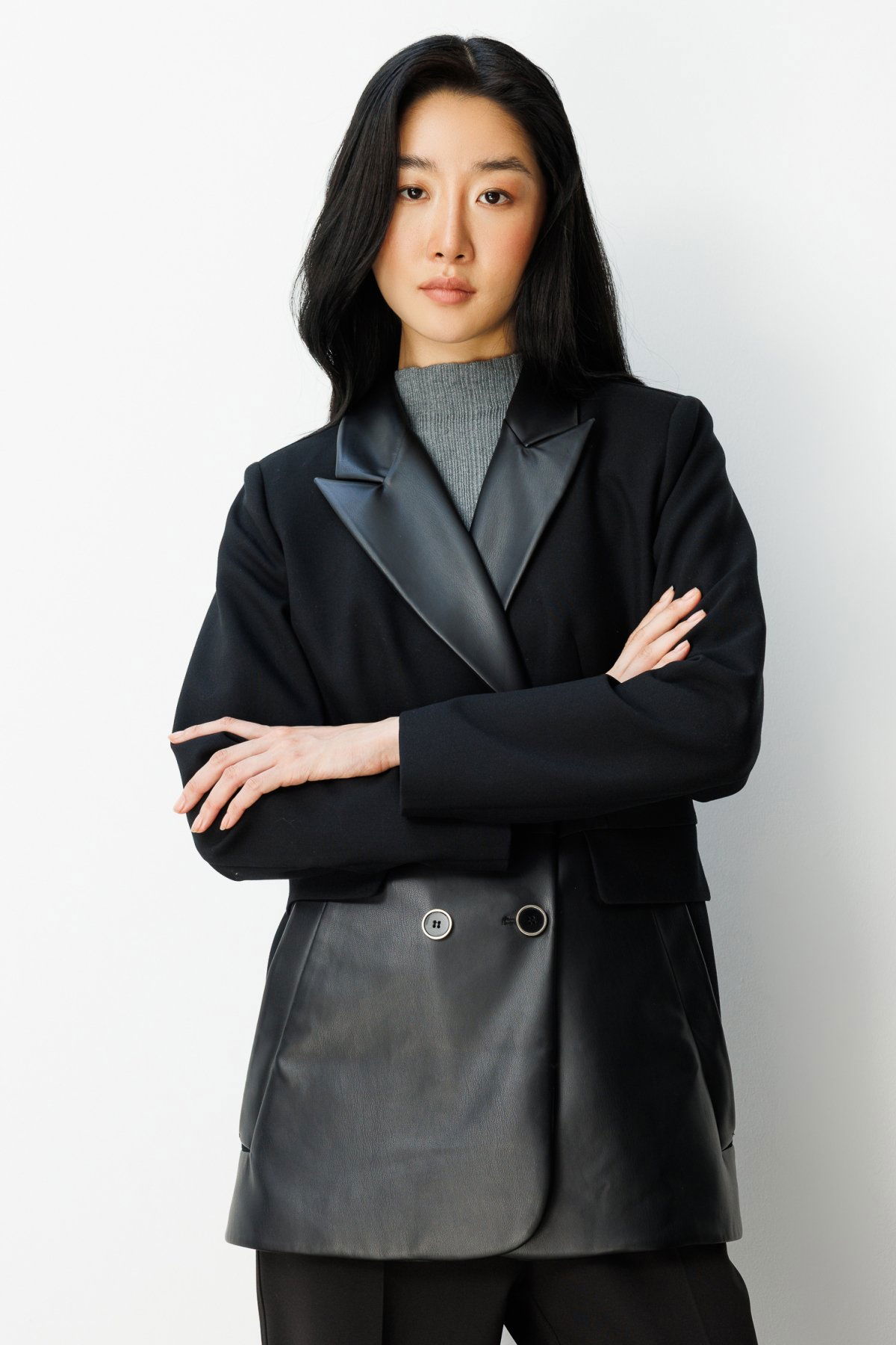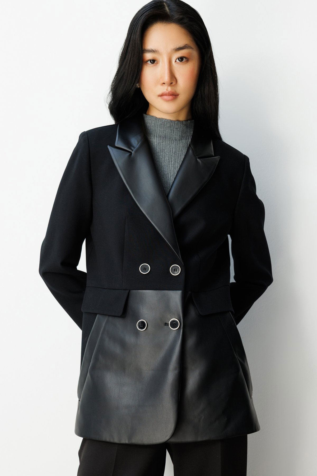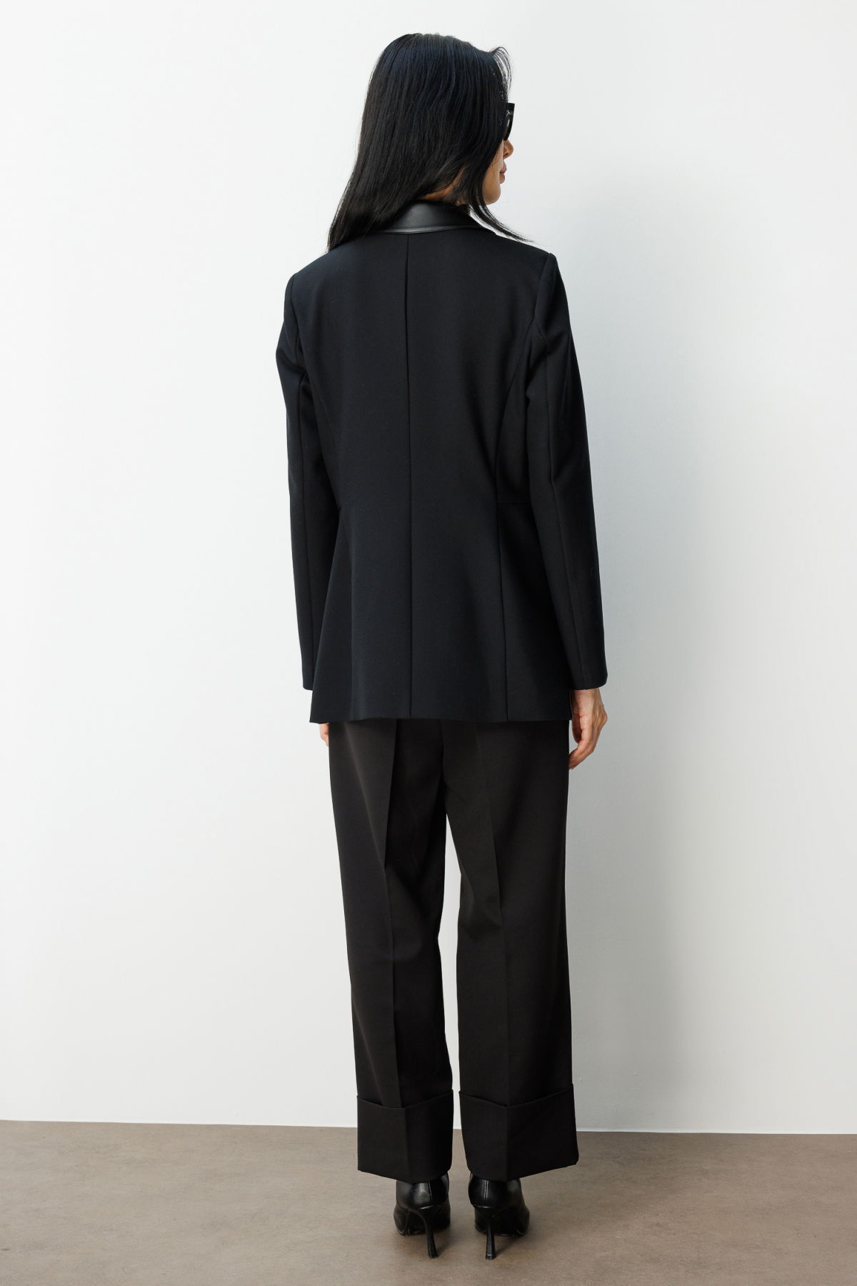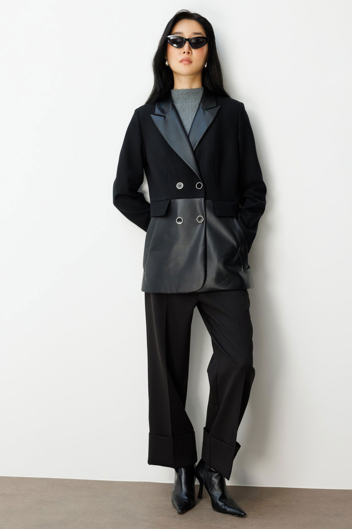 Detay: Dokuma kumaştan üretilmiş, astarlı ve uzun kollu bu ceket; kruvaze yaka tasarımıyla zarif ve güçlü bir siluet sunar. Düğmeli kapama şekli ve yan cep detaylarıyla hem klasik hem de fonksiyonel bir kullanım sağlar. Astarlı iç yapısı sayesinde serin havalarda konfor sunan bu ceket, stil sahibi kombinlerin tamamlayıcı parçası olarak öne çıkar;
