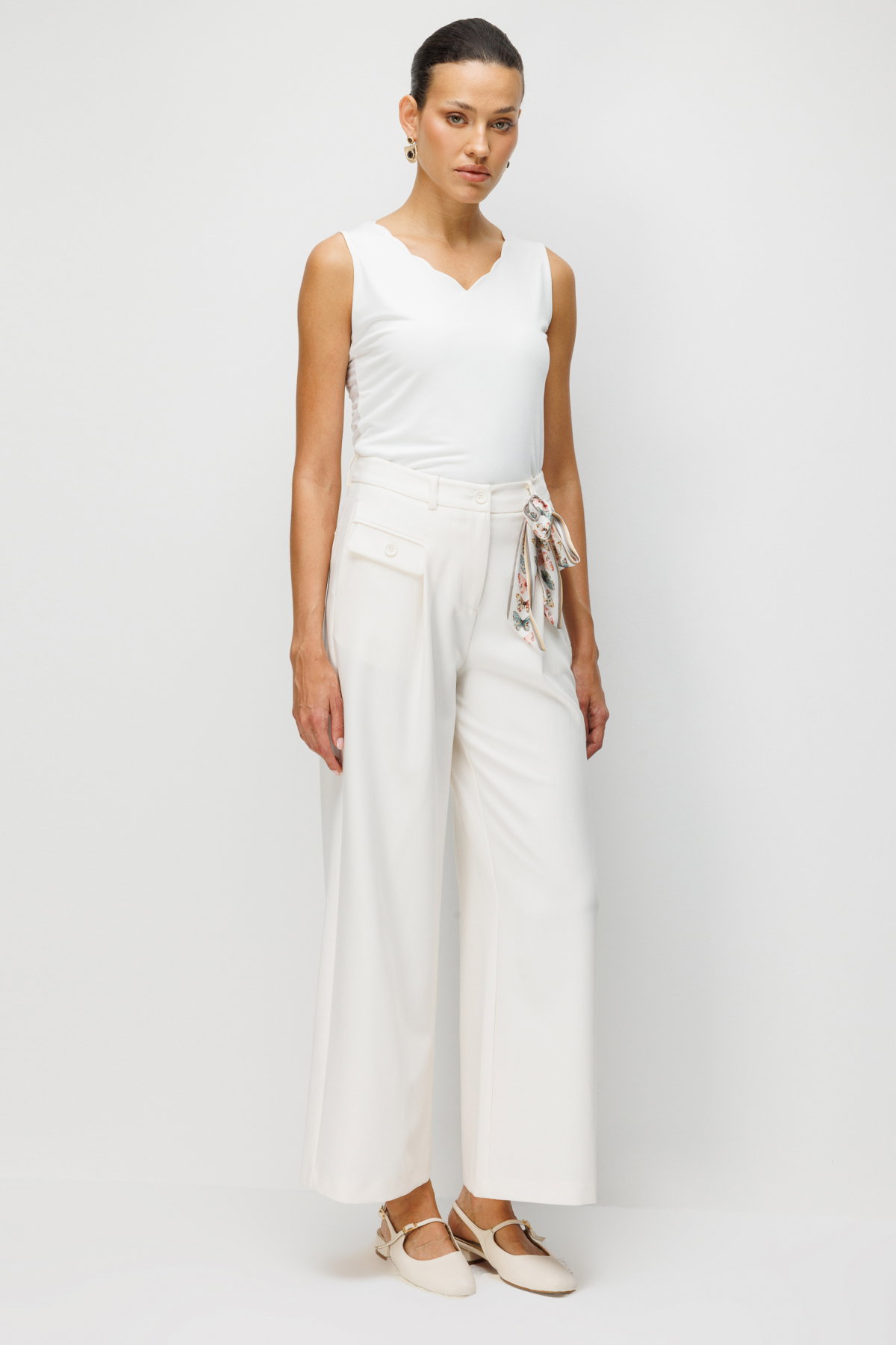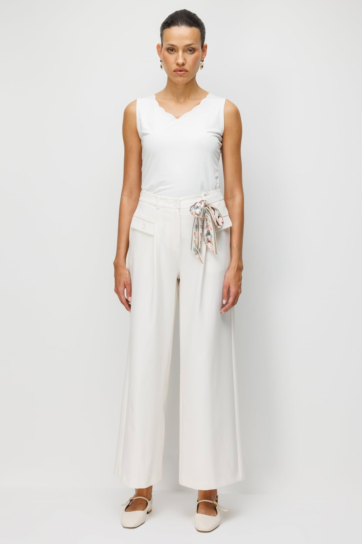 Detay: Dokuma kumaştan üretilen, astarsız, yüksek bel ve bol paça kesimli bu kemerli pantolon zarif bir tasarıma sahiptir. Dokuma kumaşın kaliteli dokusu şıklığı ön plana çıkarırken, astarsız yapısı hafif ve rahat bir kullanım sunar. Yüksek bel formu modern ve feminen bir görünüm kazandırırken, bol paça kesimi özgür ve zarif bir duruş sağlar. Kemer detayı bel hattını vurgulayarak şıklığı artırırken, fermuarlı kapama pratiklik sunar. Yan cepli tasarım ise hem işlevsel hem de sade bir görünüm ortaya koyar;