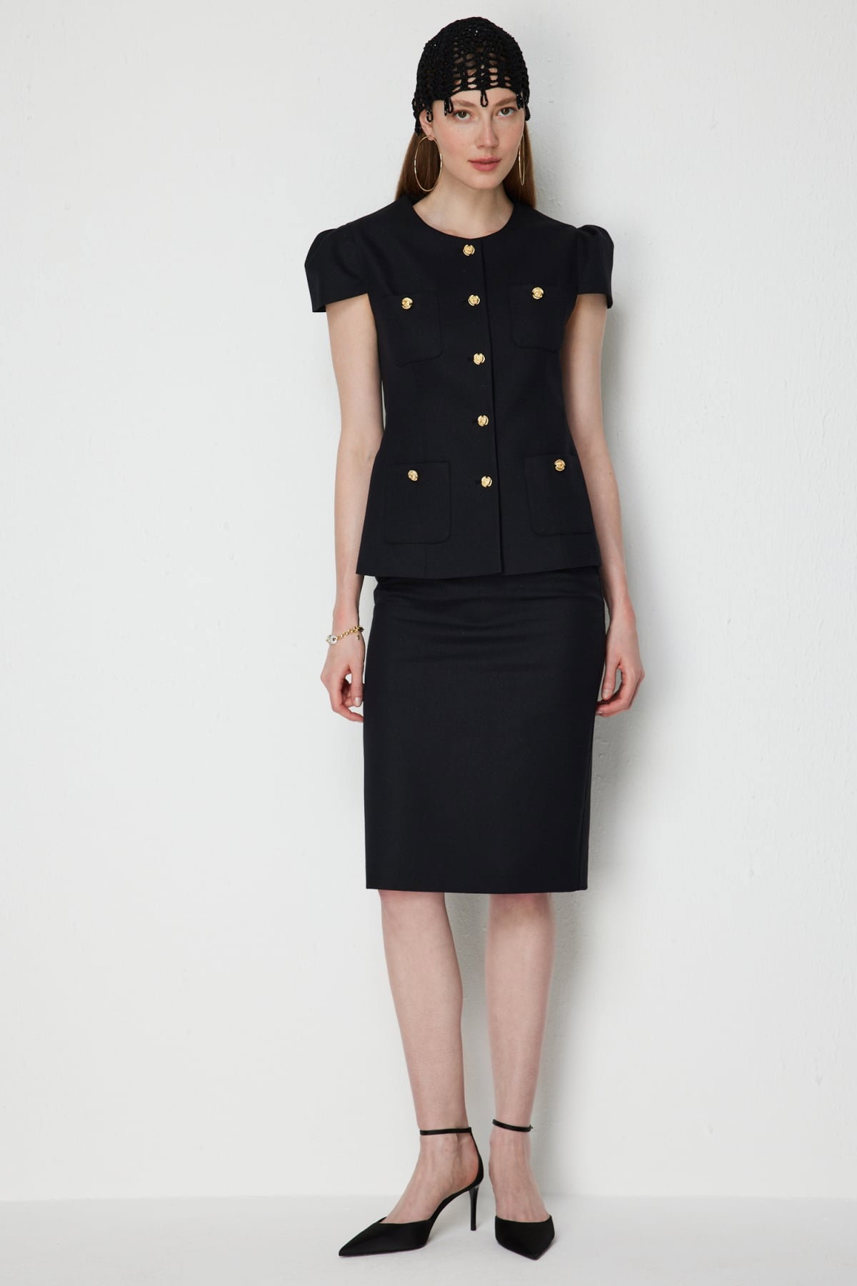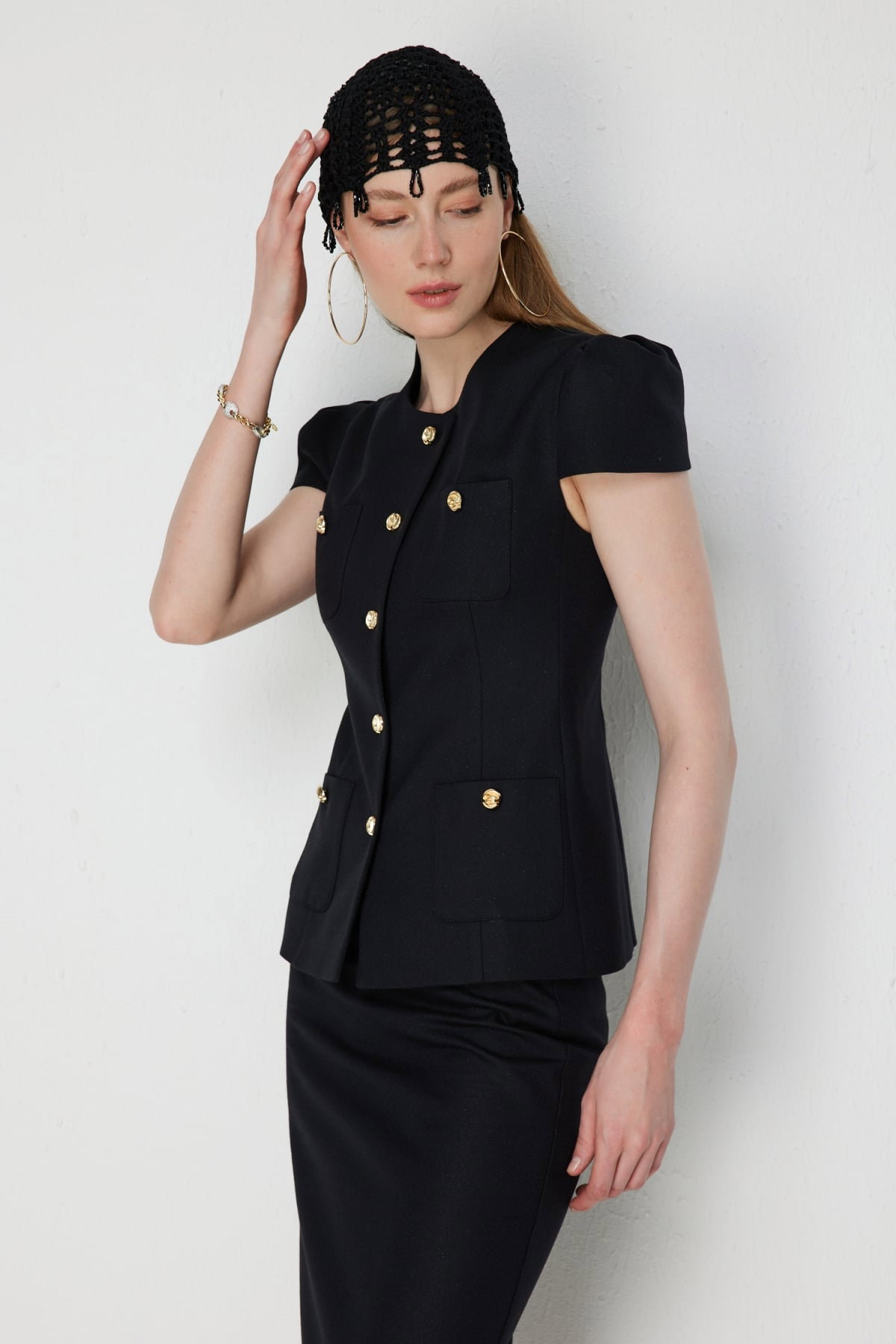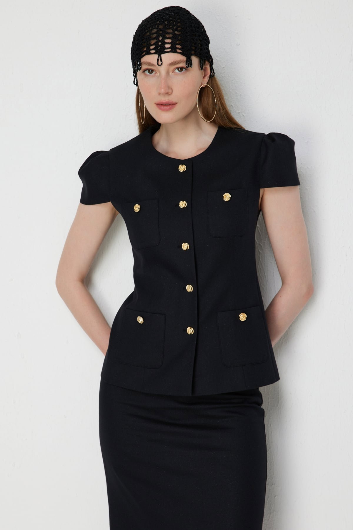 Ekol Kadın Süs Cepli Kısa Kollu Ceket 1038 Siyah