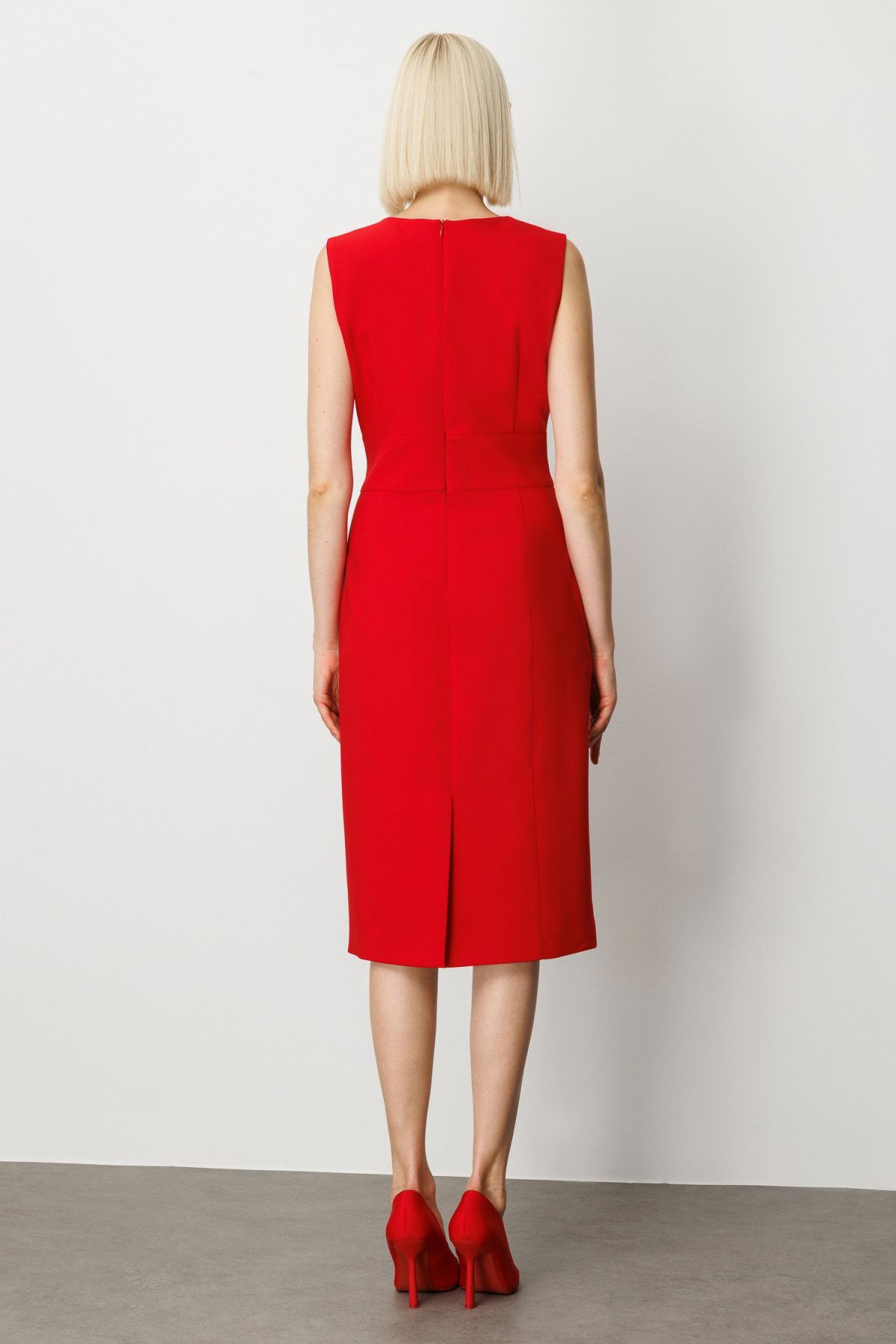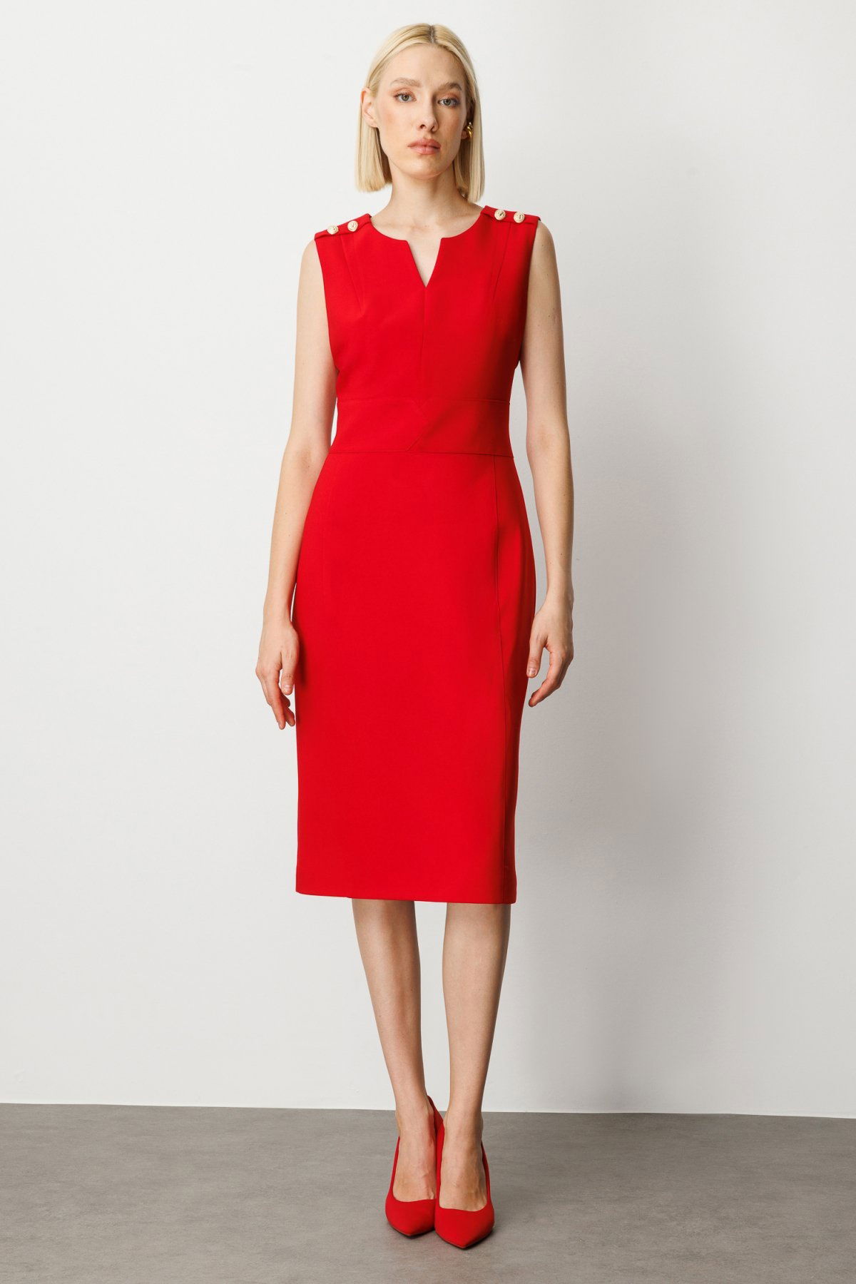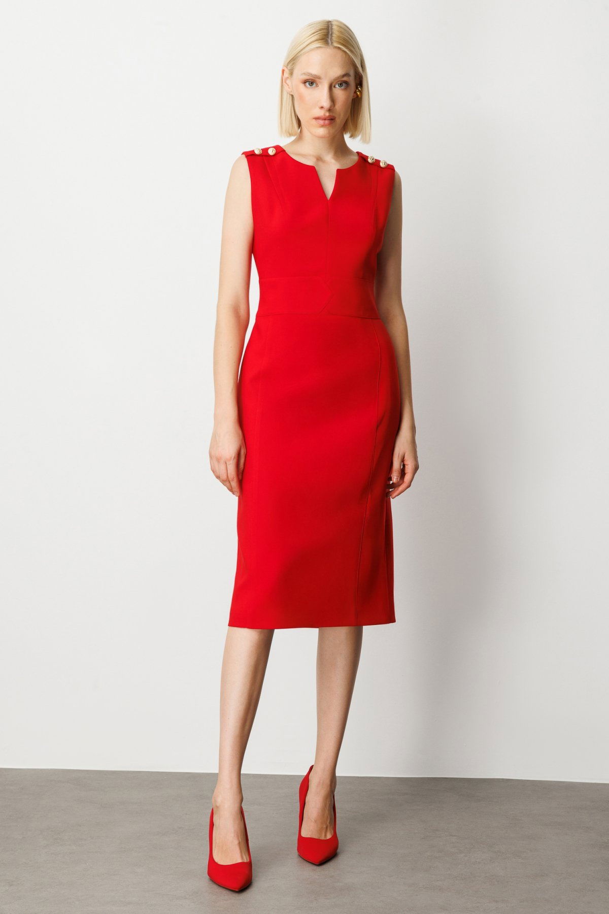 Detay: Hakim yaka tasarımıyla zarif bir duruş sunan bu kolsuz dokuma elbise, astarlı yapısıyla hem konfor hem de kaliteyi bir araya getiriyor. Fermuarlı kapama detayı sayesinde kolay kullanım sağlarken, modern çizgileriyle özel günlerde ve günlük kombinlerde şıklığı ön plana çıkarıyor. Vücuda oturan kesimiyle feminen bir siluet sunan bu elbise, stil sahibi kadınların gardırobunda vazgeçilmez bir parça olmaya aday