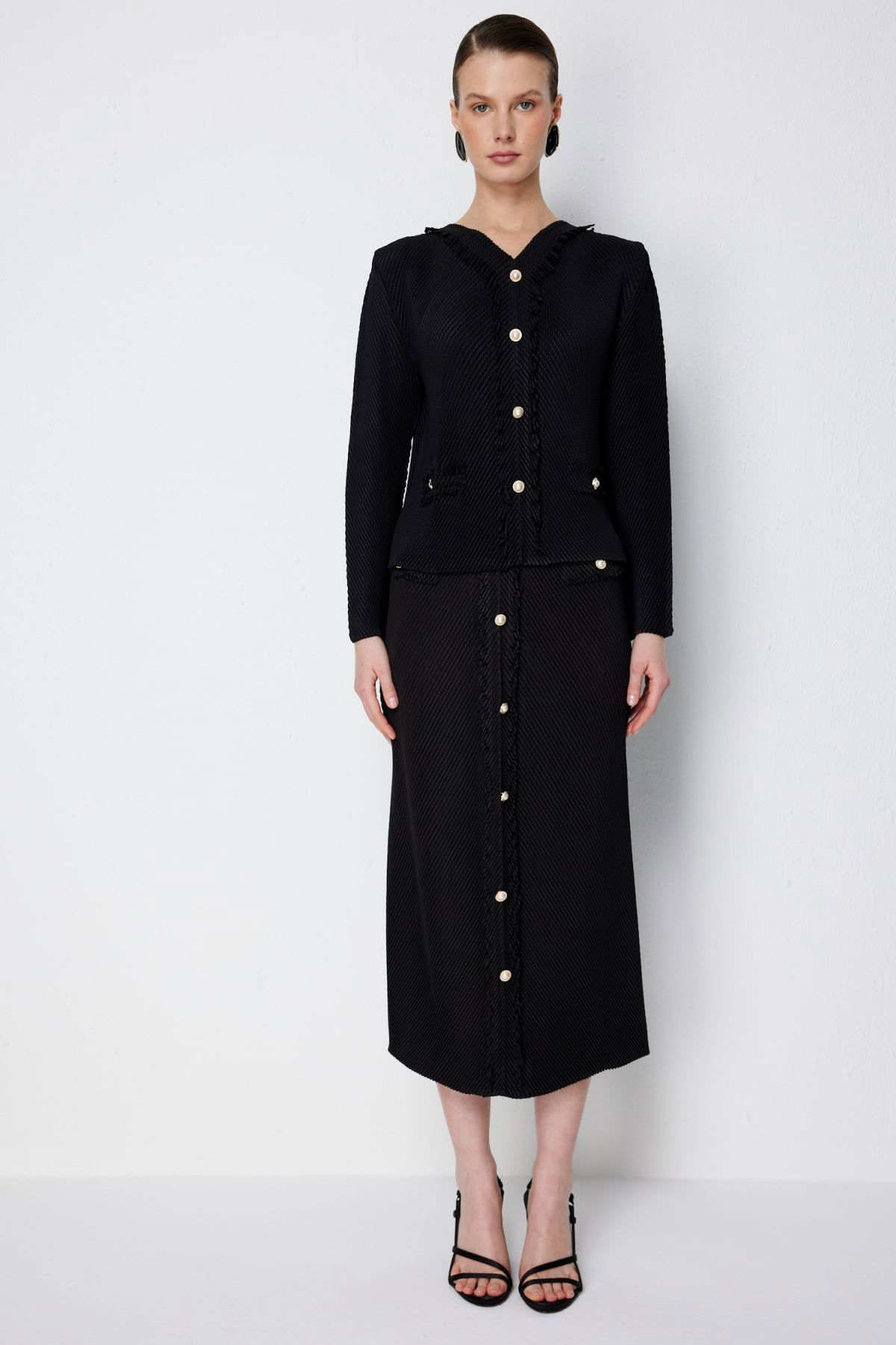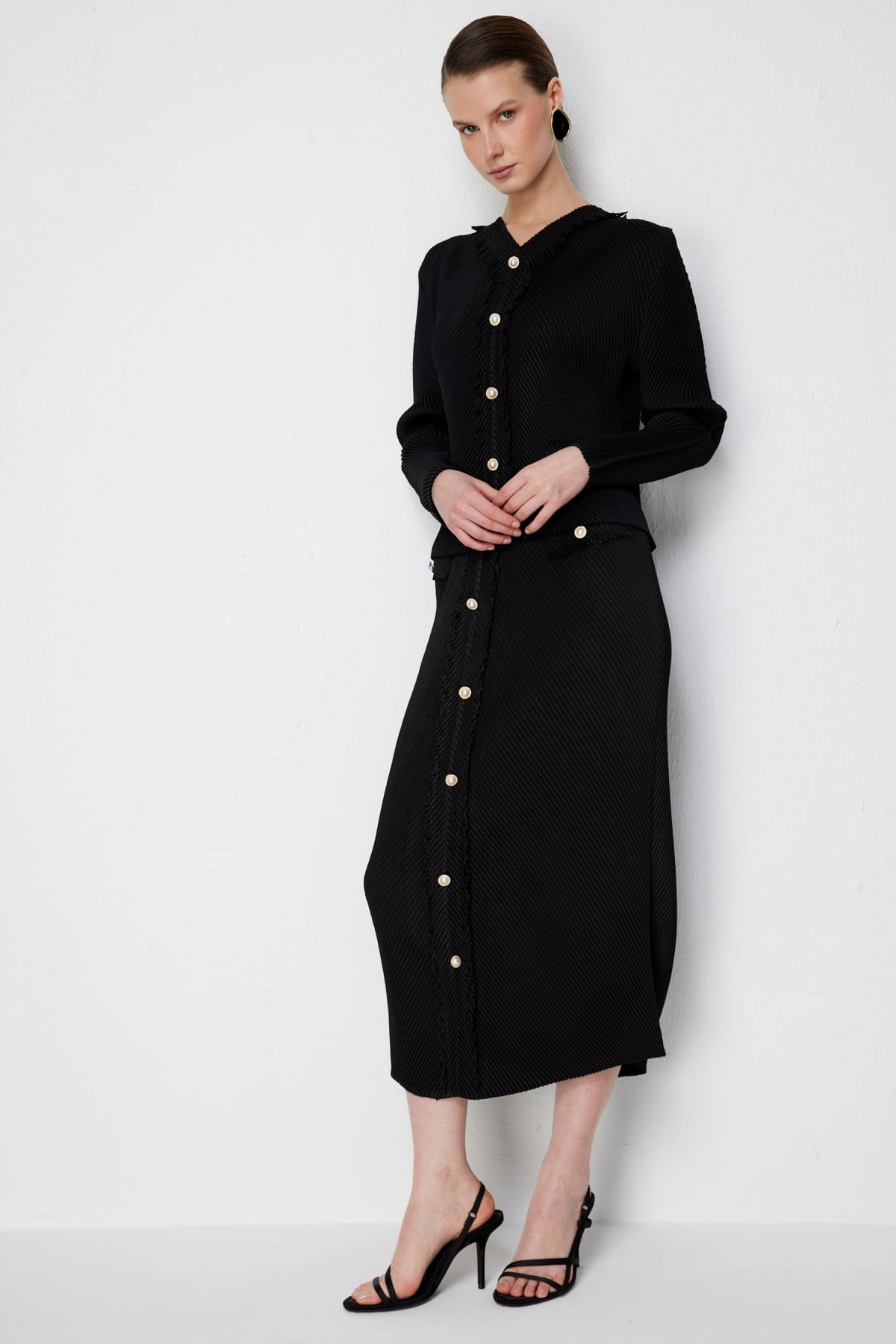 Detay: Bu etek modeli, polyester kumaş yapısıyla hafif ve dayanıklı bir kullanım sunarken astarsız tasarımı sayesinde rahat bir giyim deneyimi sağlar. Lastikli bel detayı, hem konforlu bir oturuş hem de pratik bir kullanım kolaylığı sunar. Günlük kombinlerde rahatlıkla tercih edilebilecek bu parça, minimal ve modern tarzıyla gardırobunuzun işlevsel seçeneklerinden biri olmaya adaydır;