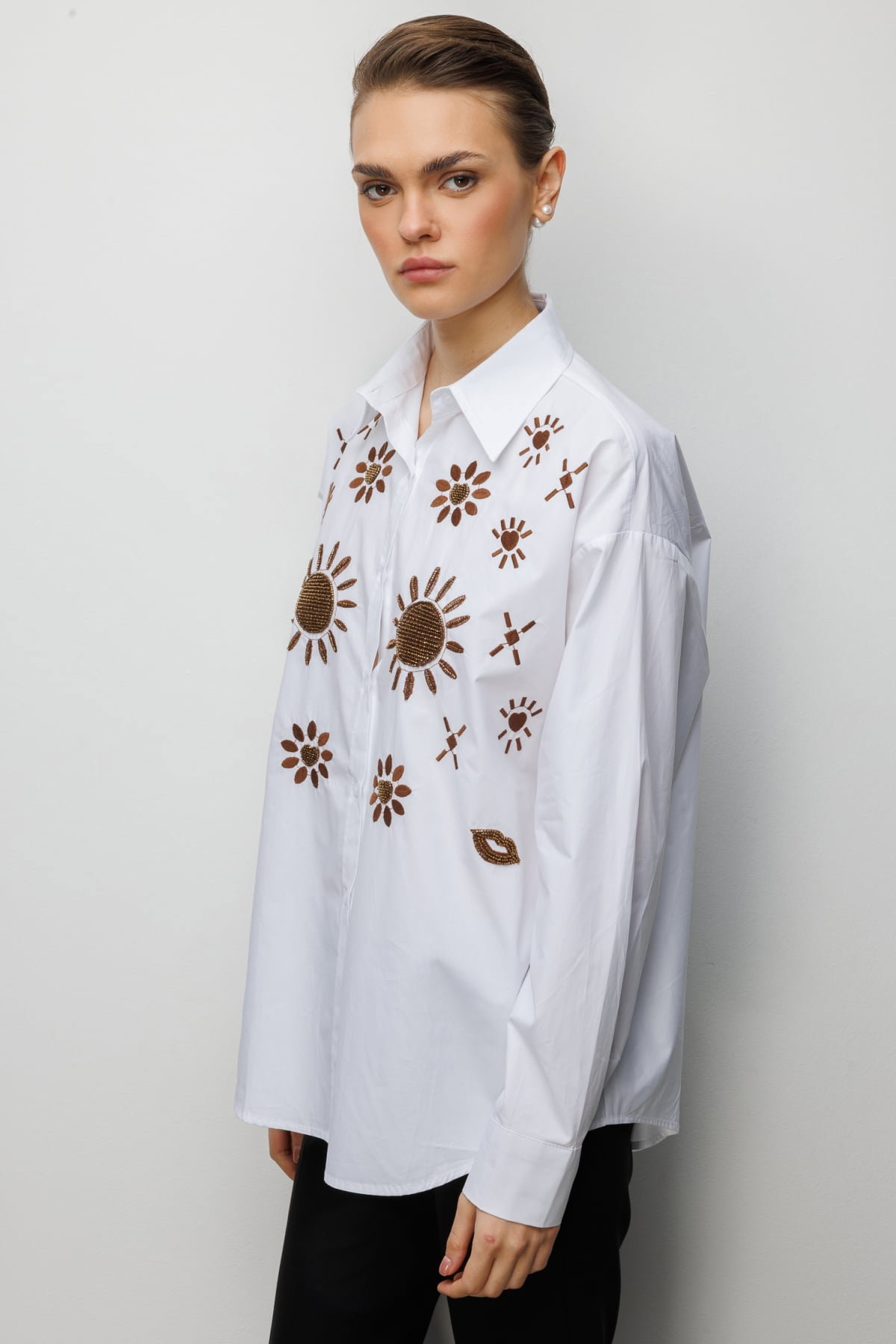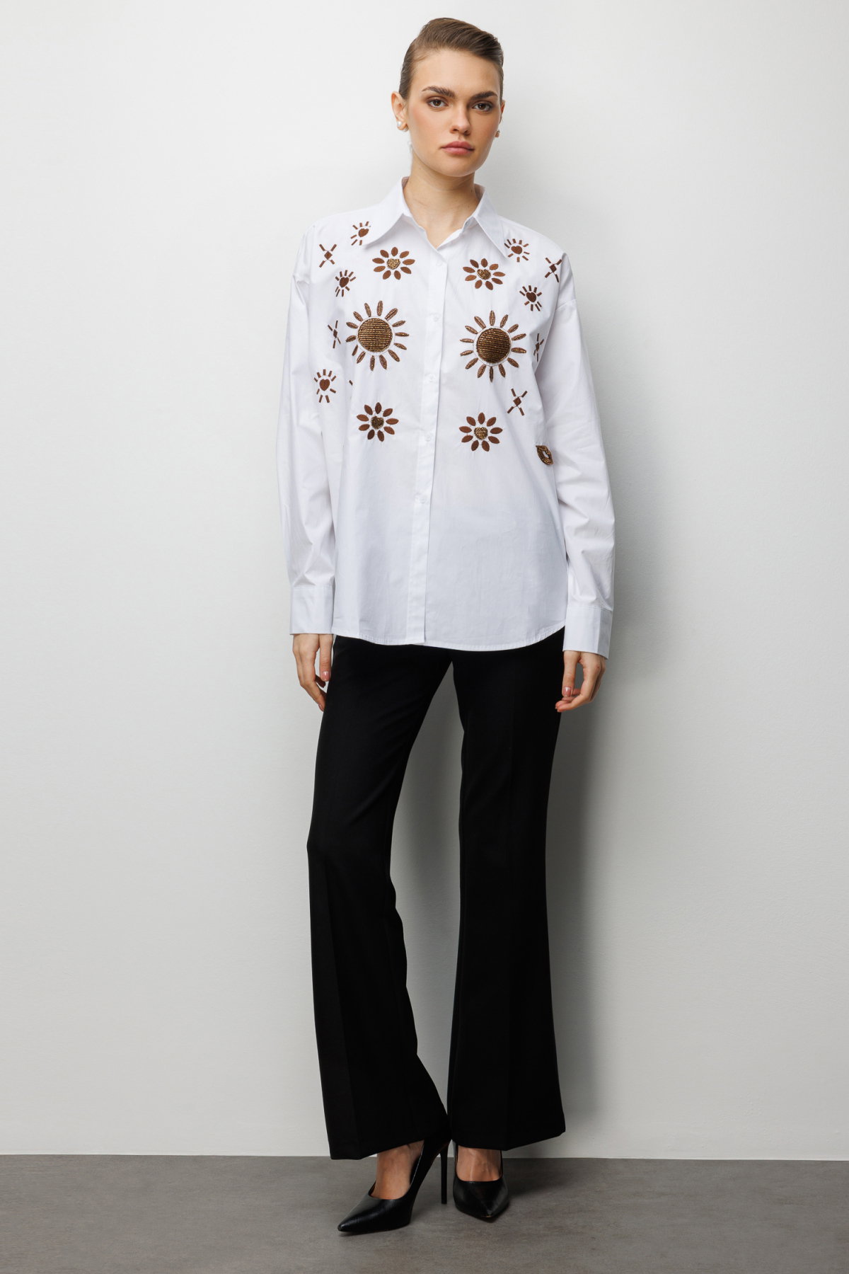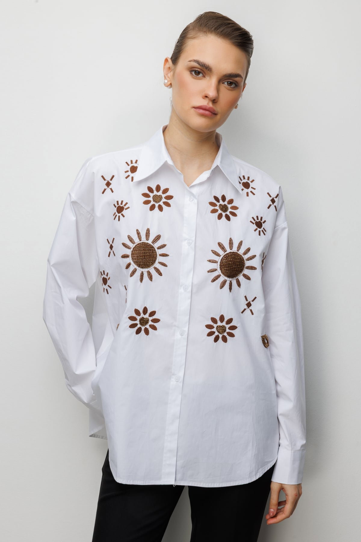 Detay: Pamuk kumaştan üretilen, astarsız, gömlek yaka ve uzun kollu bu düğmeli gömlek zarif bir tasarıma sahiptir. Pamuk kumaşın doğal dokusu gün boyu konfor ve nefes alabilirlik sağlarken, astarsız yapısı hafif ve rahat bir kullanım sunar. Gömlek yaka detayı klasik ve şık bir görünüm kazandırırken, uzun kollu tasarım mevsim geçişlerinde de ideal bir tercih olur. Düğmeli kapama şekli ise hem pratiklik hem de modern bir duruş sunarak bu gömleği günlük ve iş kombinlerinde vazgeçilmez hale getirir;