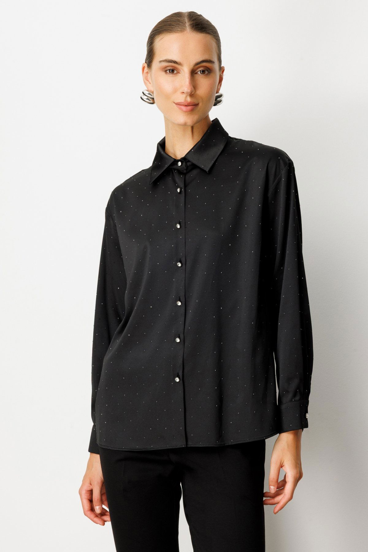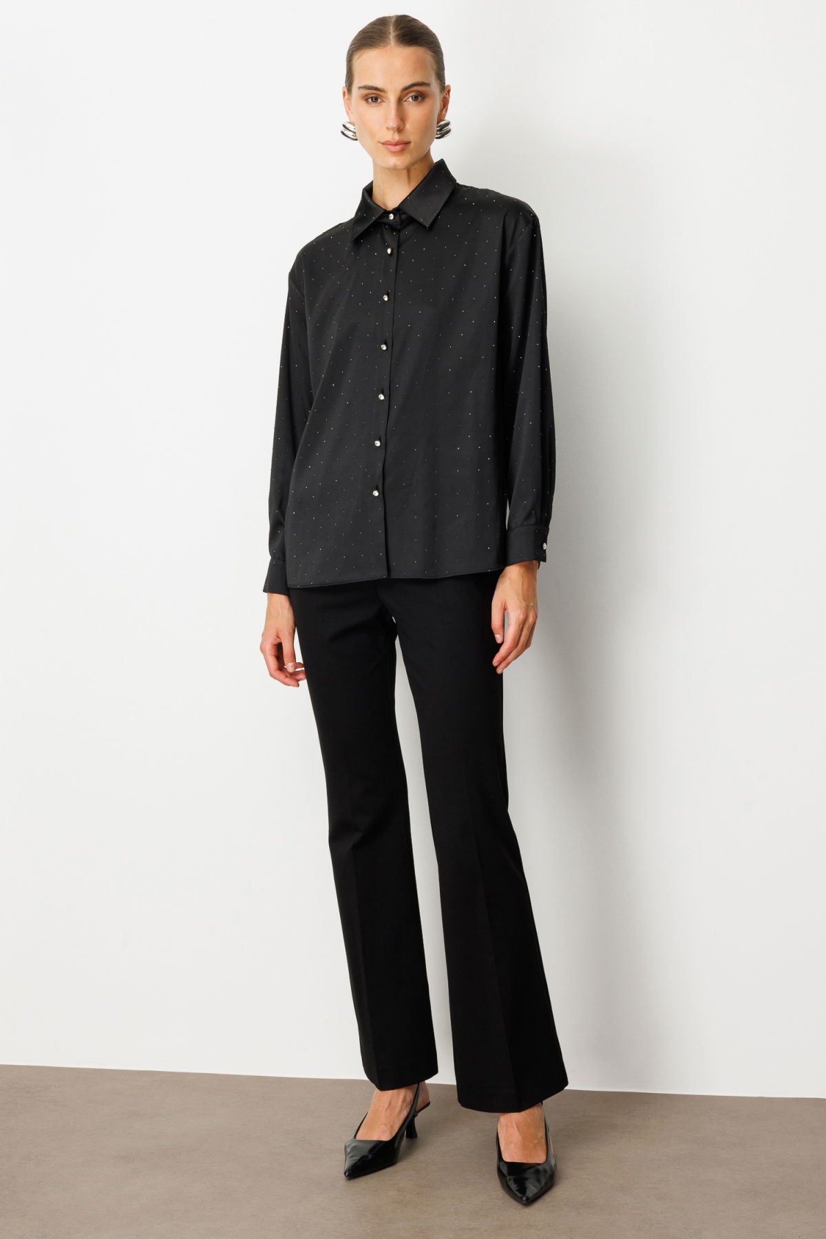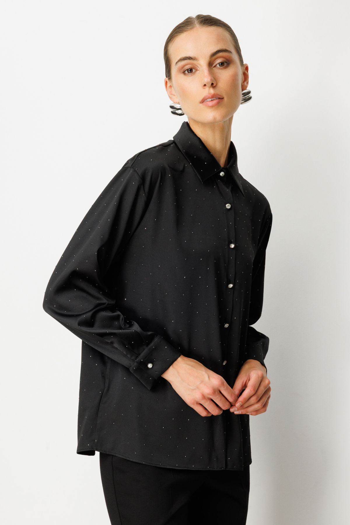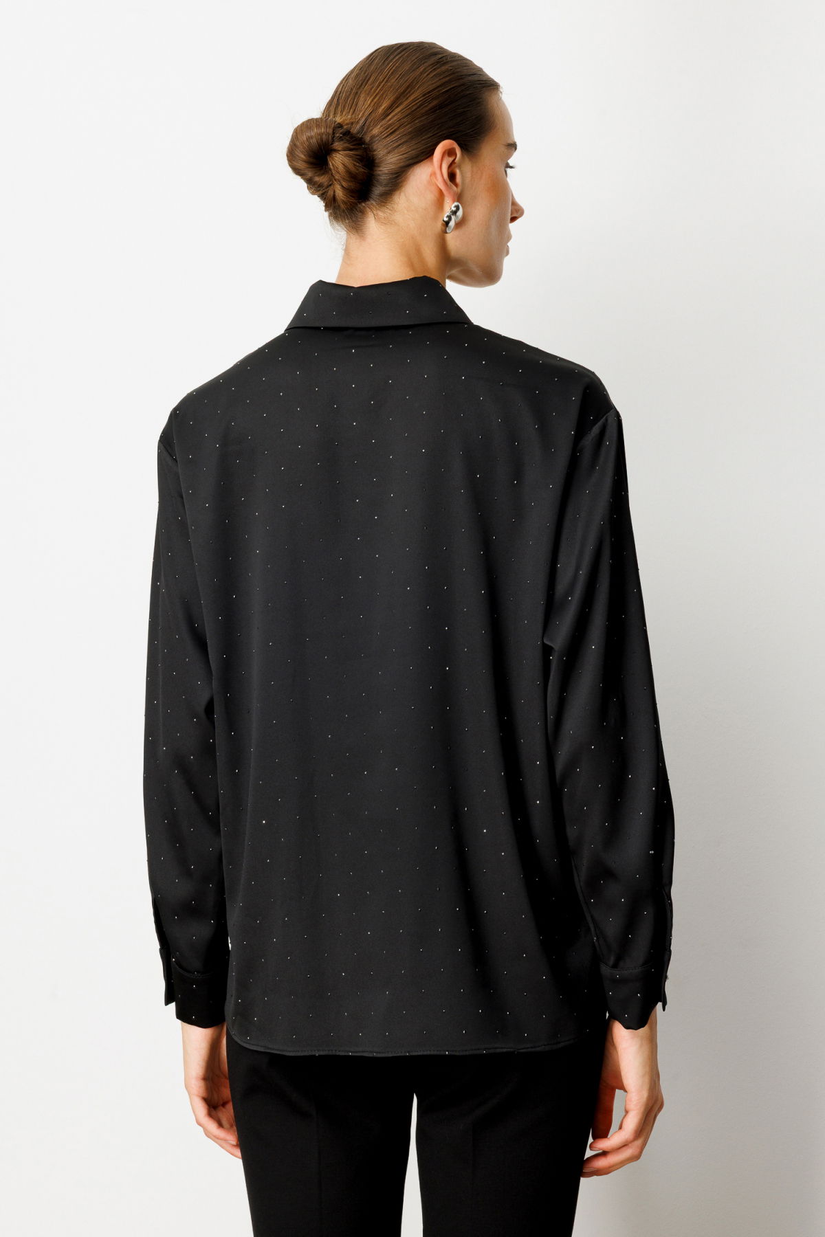 Ekol Kadın Taşlı Saten Gömlek 3003 Siyah