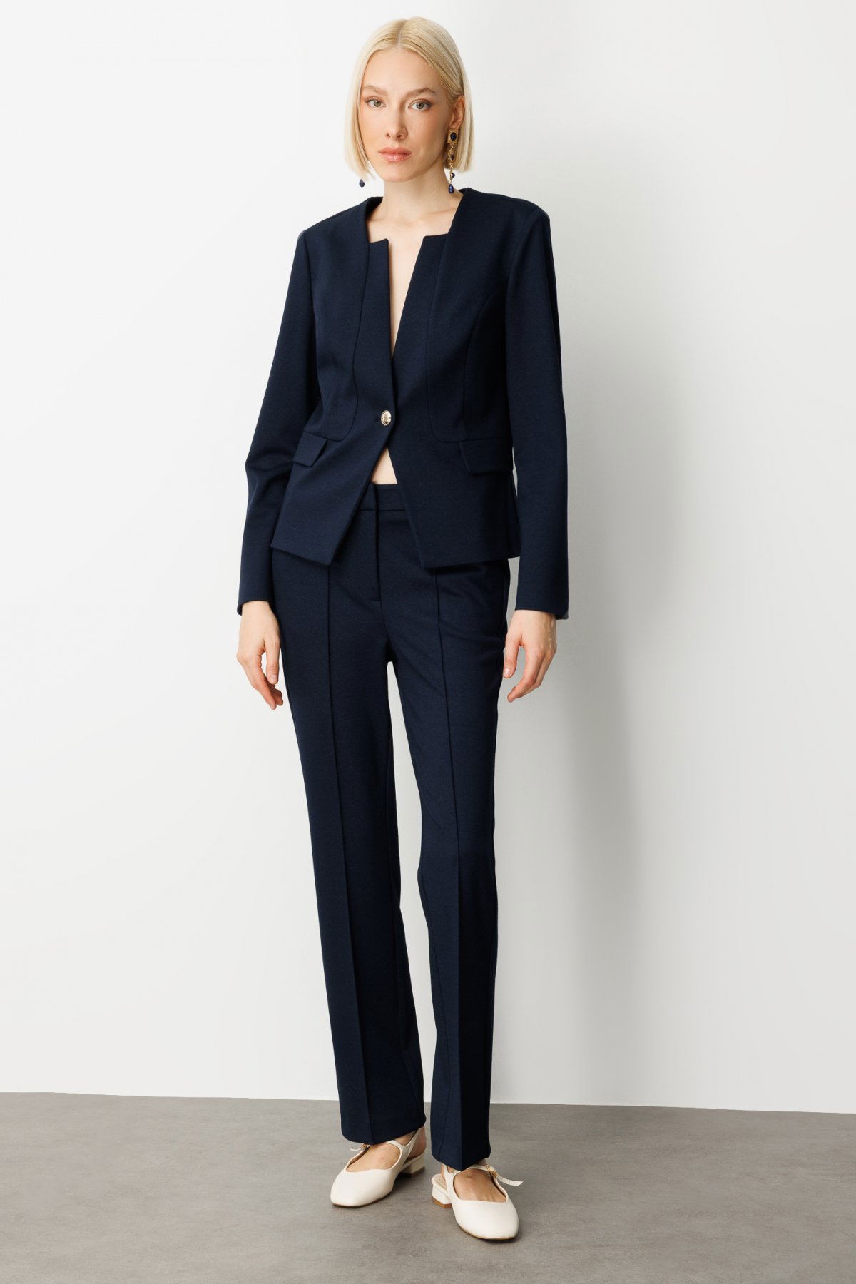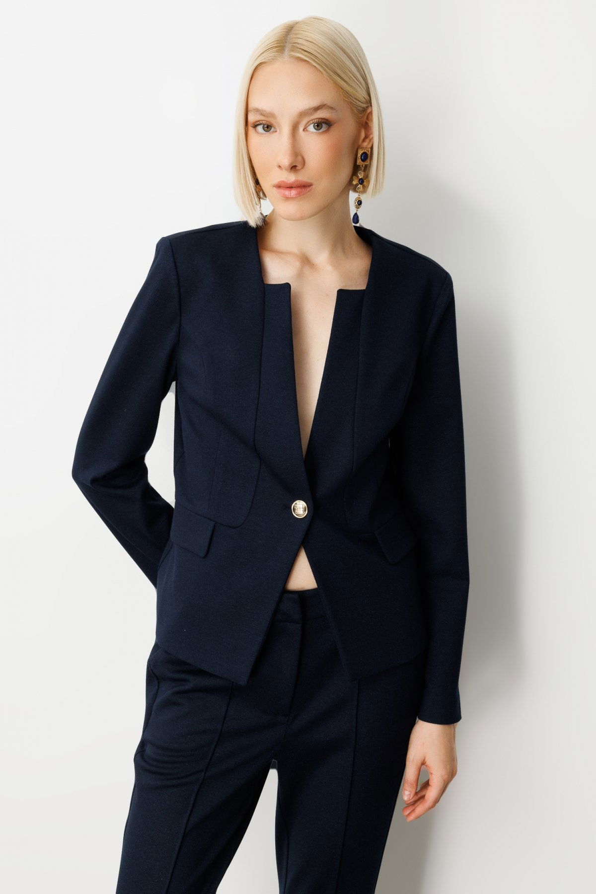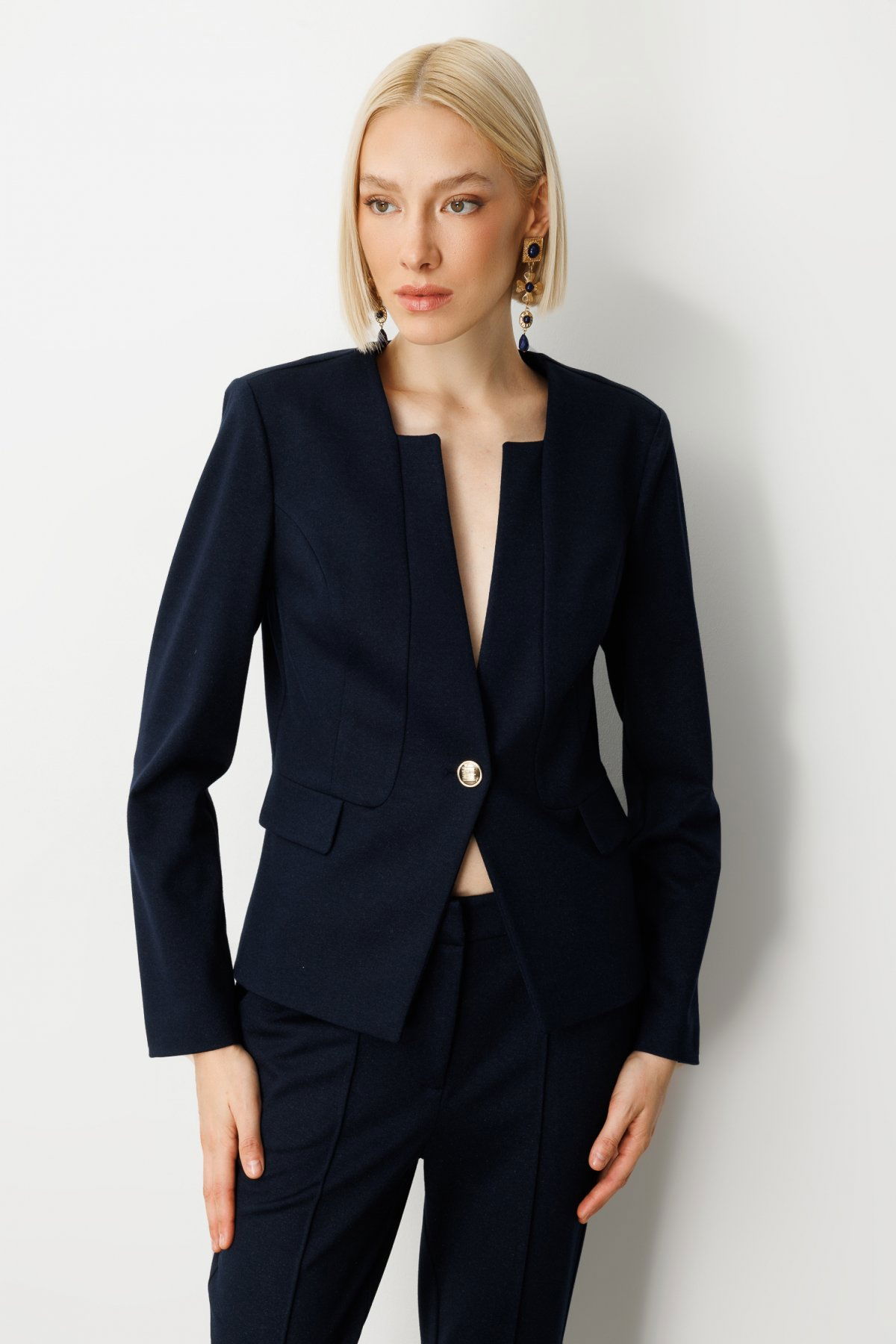 Detay: Dokuma kumaştan üretilmiş, astarsız yapısıyla hafiflik sunan bu uzun kollu ceket, hakim yaka detayıyla modern ve zarif bir duruş sergiliyor. Düğmeli kol kapaması sayesinde klasik şıklığı tamamlayan tasarım, mevsim geçişlerinde konforlu bir kullanım sağlıyor. Astarsız ve uzun kol yapısıyla hem günlük kombinlerde hem de ofis stilinde ideal bir tercih olarak öne çıkıyor;