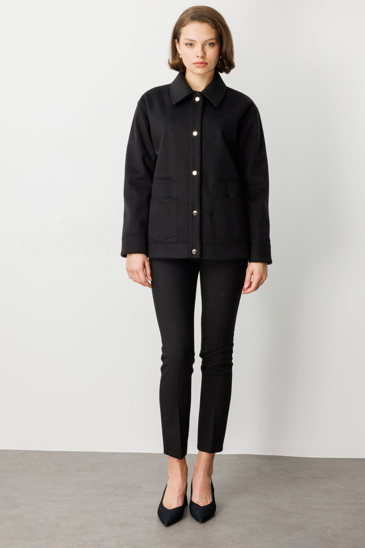Detay: Klasik yaka tasarımıyla zamansız bir şıklık sunan bu uzun kollu mont, dokuma kumaşı ve astarlı yapısıyla soğuk havalarda üstün konfor sağlar. Çıt çıt kapama özelliğiyle pratik bir kullanım sunarken, torba cepli tasarımıyla hem fonksiyonel hem de modern bir görünüm kazandırır. Günlük stilinize sıcaklık ve zarafet katmak isteyenler için ideal bir dış giyim parçasıdır;
