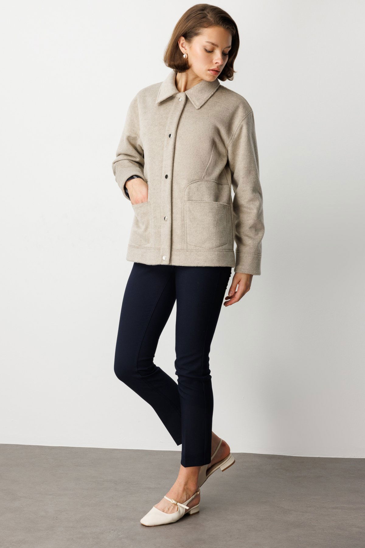 Ekol Kadın Torba Cepli Kısa Kaşe Mont 6087 Vizon