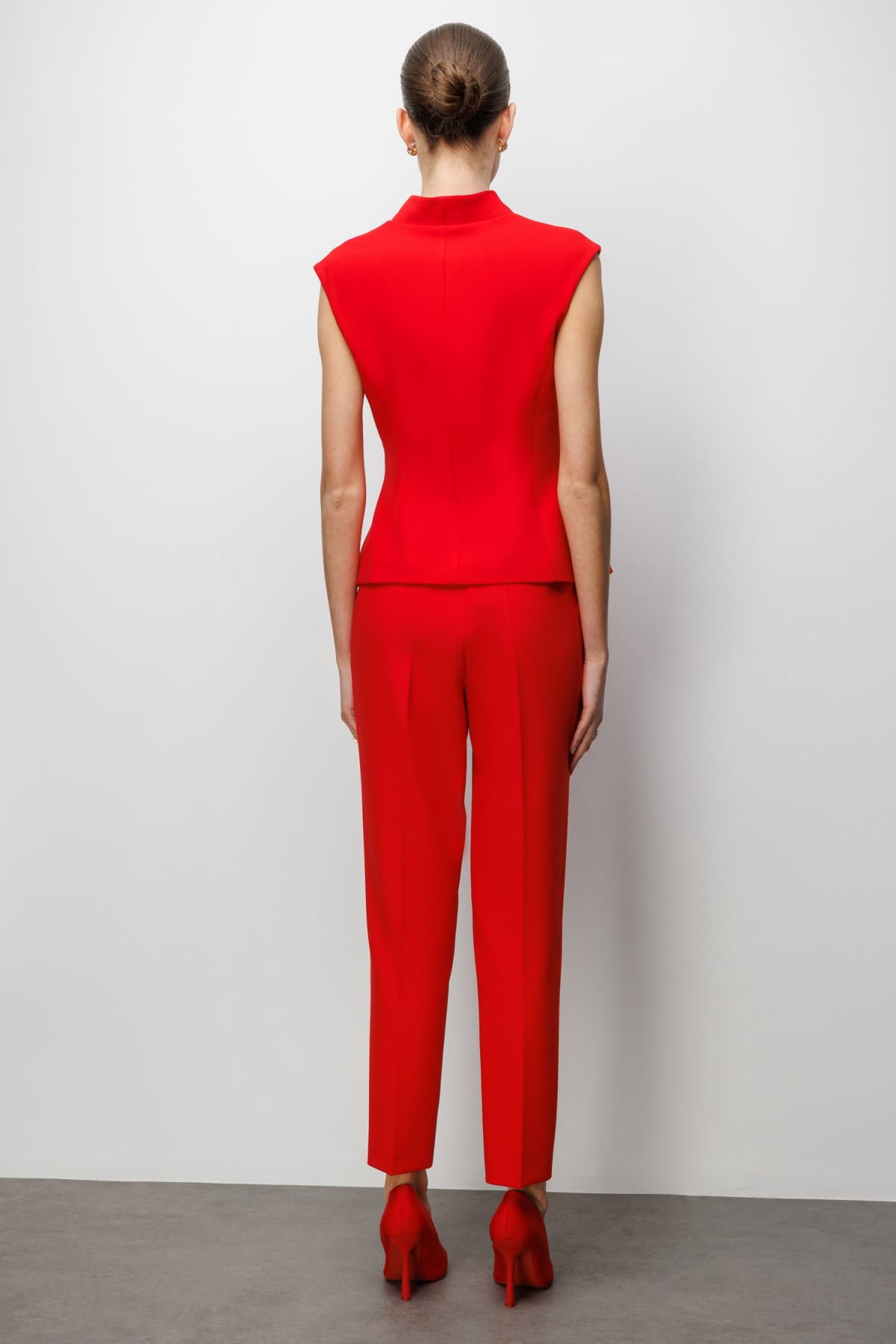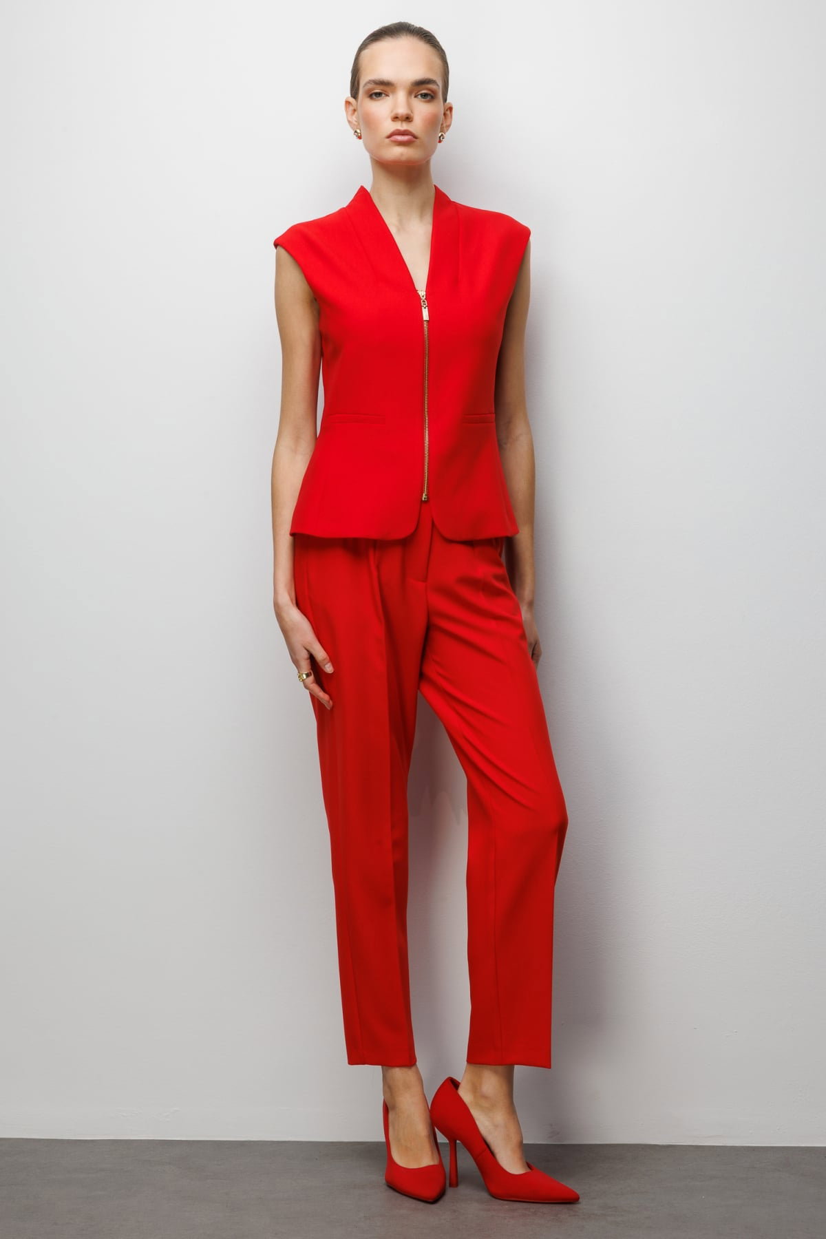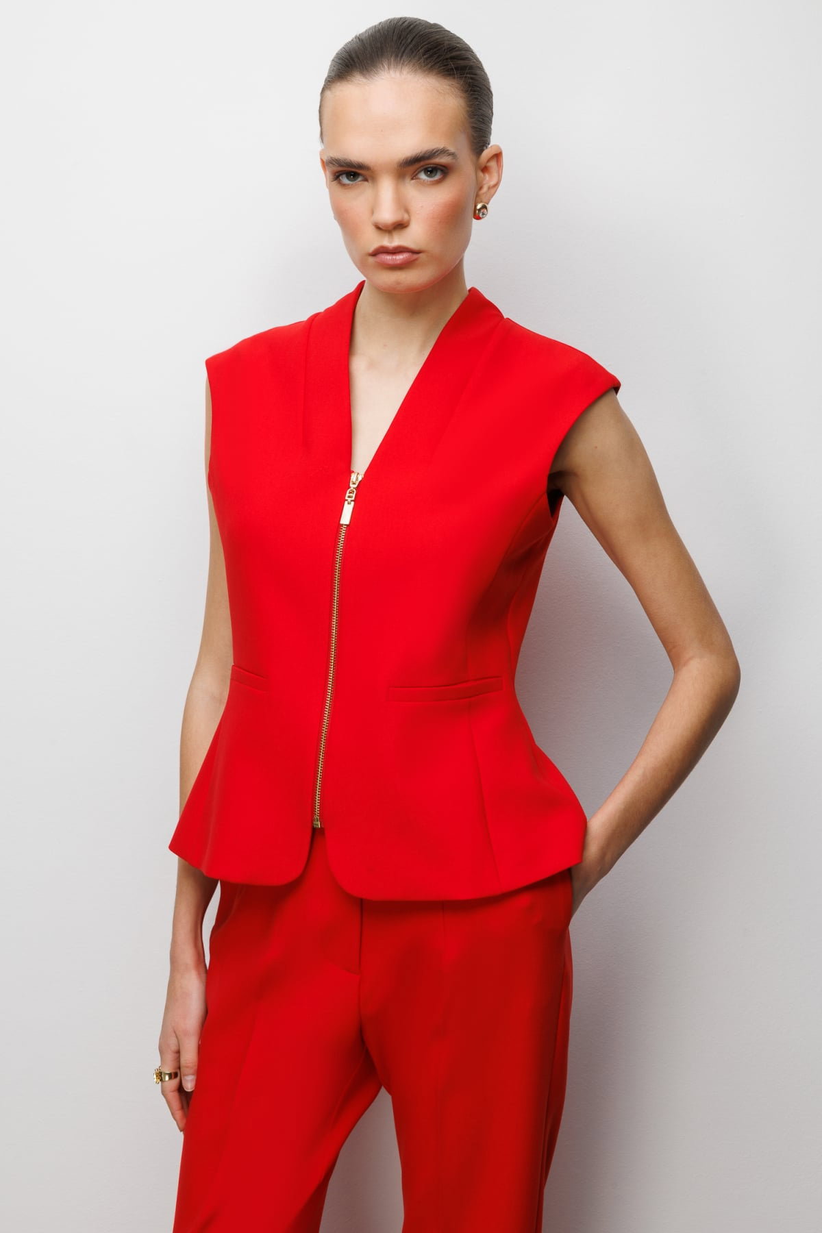 Detay: Polyester dokuma kumaştan üretilmiş, astarlı yapısı sayesinde düzgün bir duruş sunan bu V yaka, kolsuz ve fermuarlı yelek modern tasarımıyla şıklığı ön plana çıkarır. V yaka detayı zarif bir görünüm sağlarken, kolsuz yapısı sayesinde katmanlı kombinlerde rahatlıkla kullanılabilir. Fermuarlı kapama pratik bir kullanım sunarken, polyester dokusu uzun süre formunu korur. Hem günlük kombinlerde hem de özel davetlerde tercih edilebilecek bu yelek, gardırobunuzun tamamlayıcı parçalarından biri olmaya adaydır;