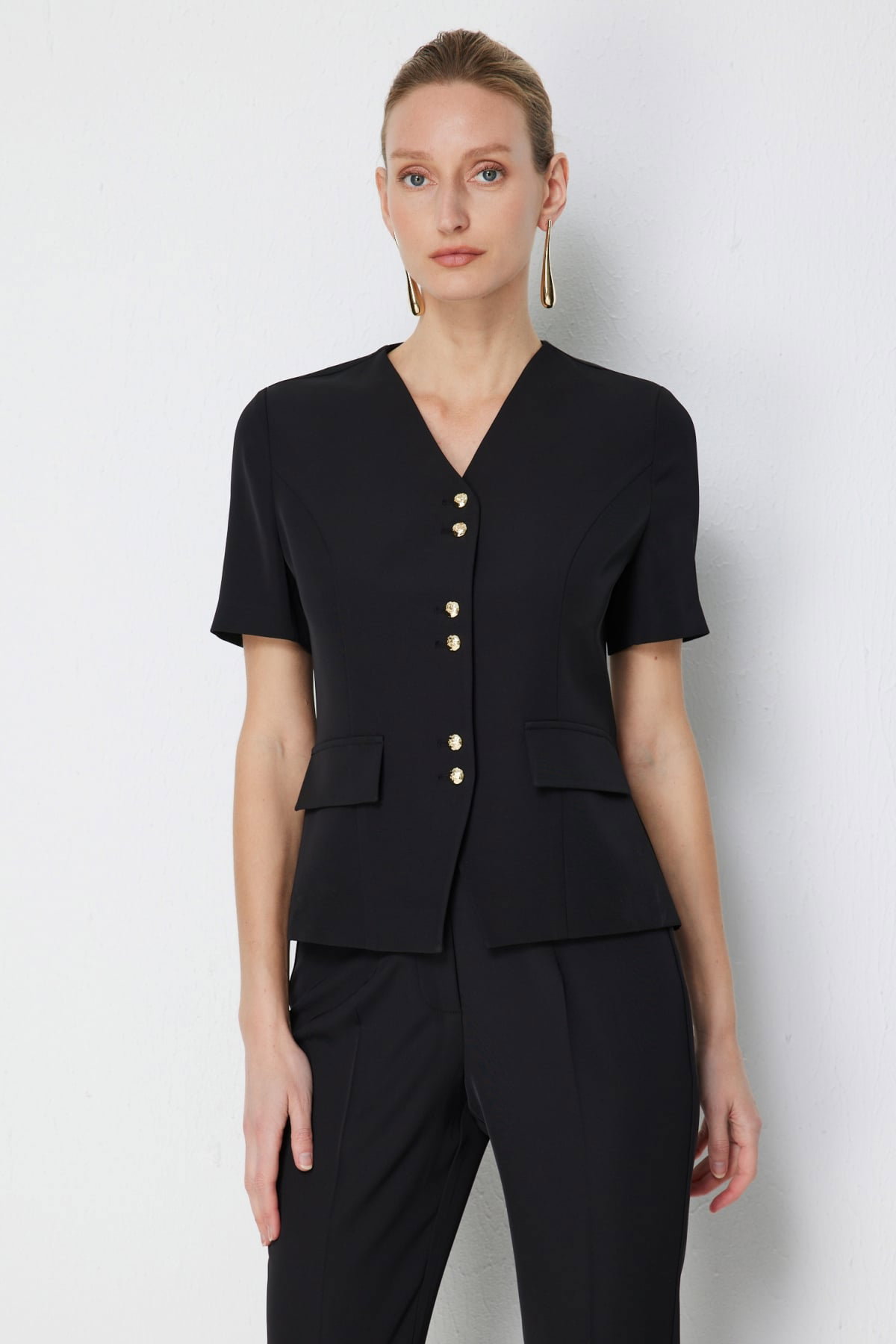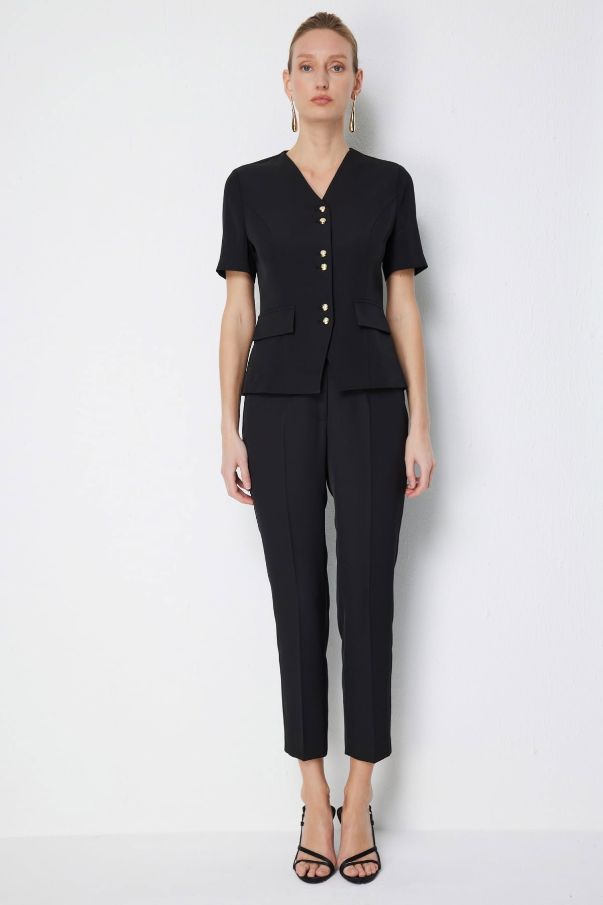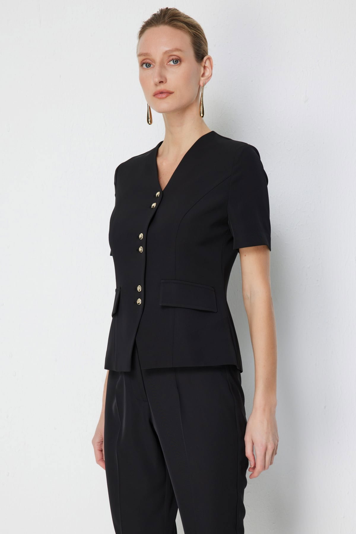 Detay: Polyester kumaş, astarsız, V yaka, kısa kollu ve düğmeli bu ceket modeli modern ve şık bir görünüm sunar. Dayanıklı polyester dokusu hafif ve rahat bir kullanım sağlarken, astarsız yapısı serin bir his verir. V yaka tasarım feminen bir zarafet kazandırırken, kısa kol detayı dinamik bir stil ortaya çıkarır. Düğmeli kapama ise pratik kullanım sağlarken klasik bir şıklık katar. Bu ceket modeli hem günlük kombinlerde hem de özel davetlerde stil sahibi bir tercih olabilir;