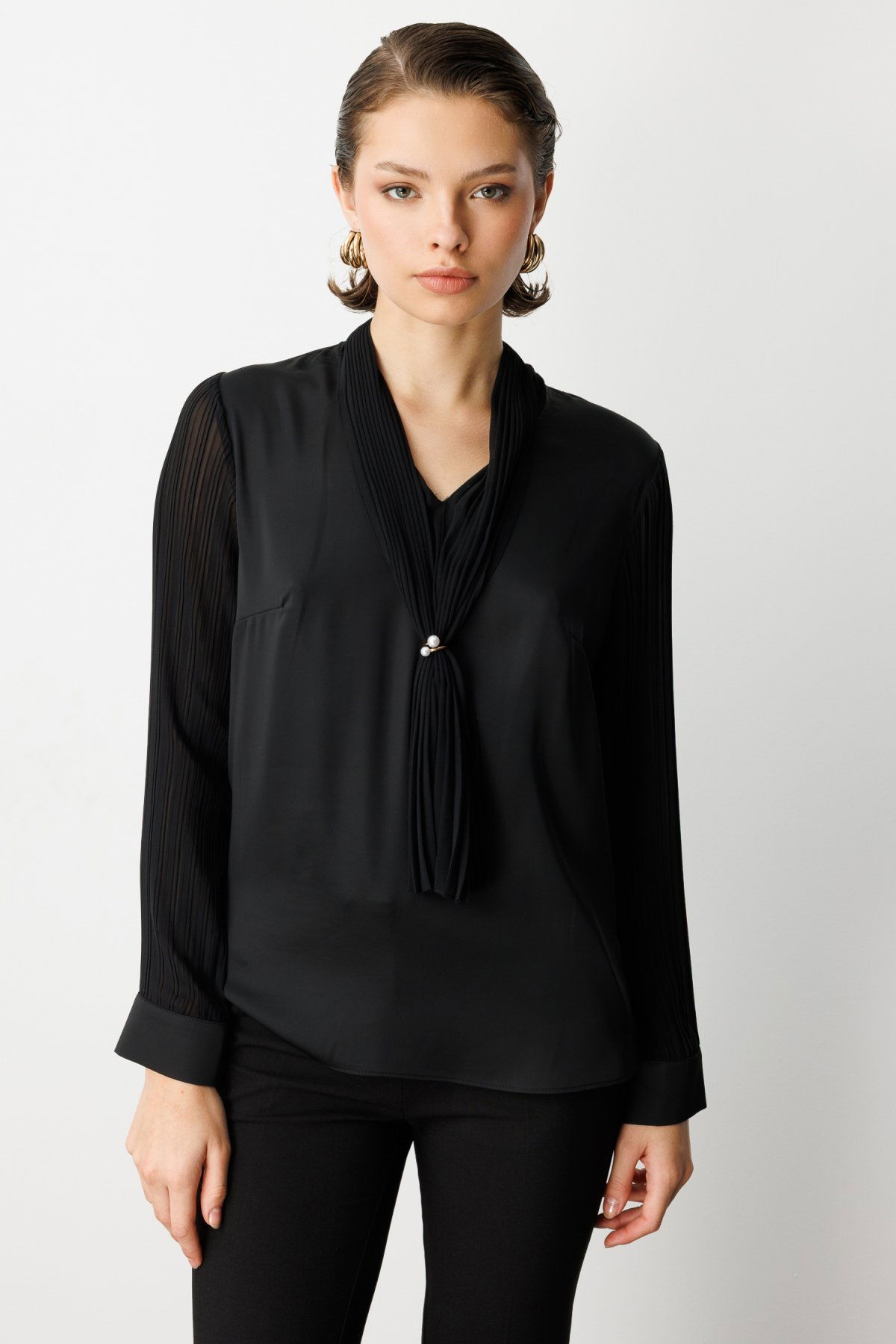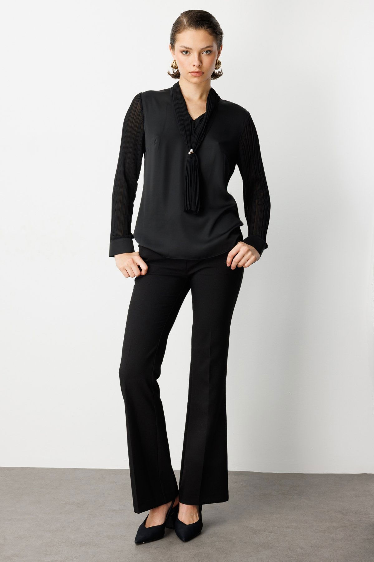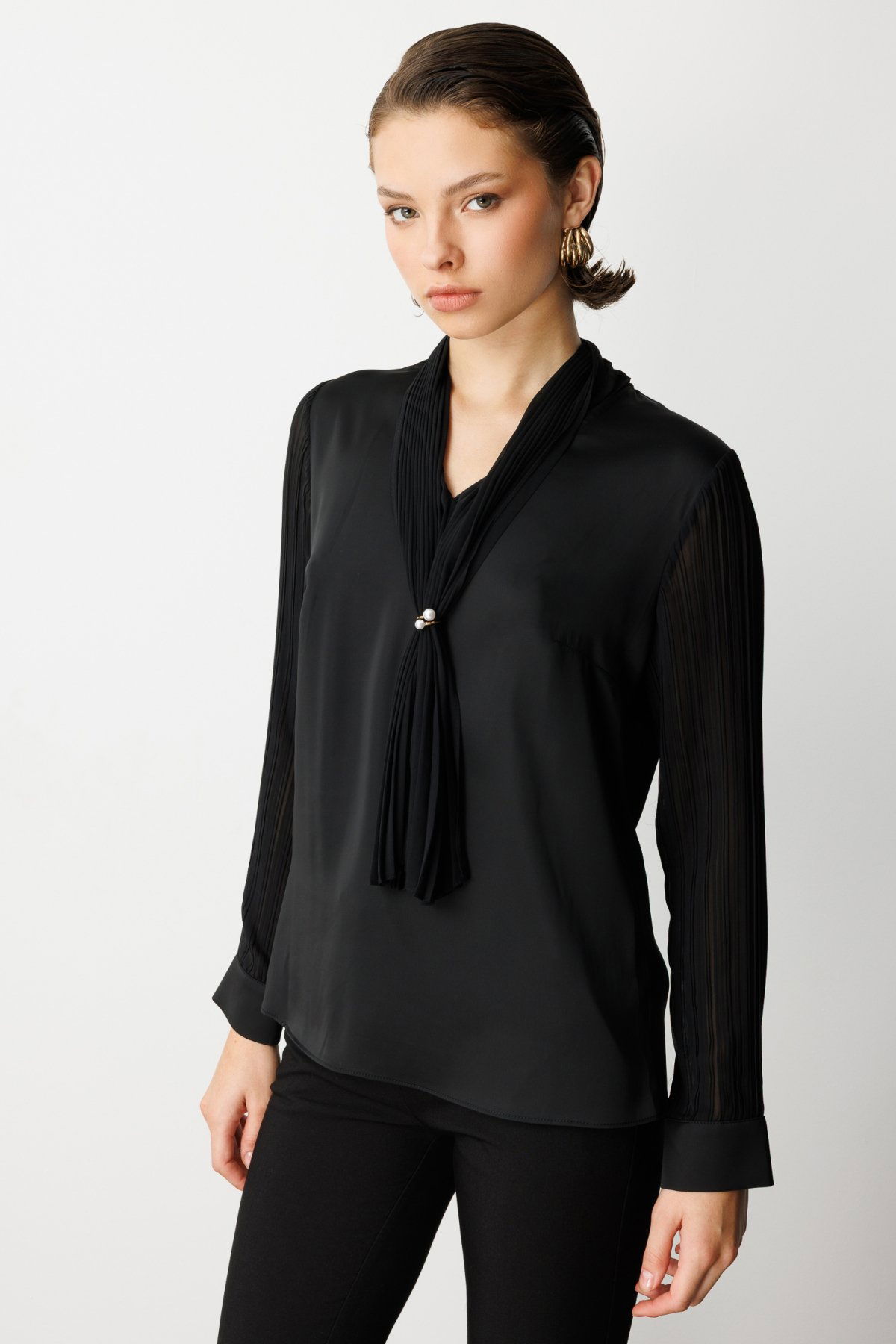 Detay: Zarif fular yaka detayıyla dikkat çeken bu uzun kollu bluz, dokuma kumaşı sayesinde hem şık hem de dayanıklı bir yapı sunar. Astarsız tasarımıyla hafif ve rahat bir kullanım sağlayan bu parça, özellikle mevsim geçişlerinde ideal bir tercihtir. Modern kesimiyle günlük stilinize sofistike bir dokunuş katmak için mükemmel bir seçenektir;