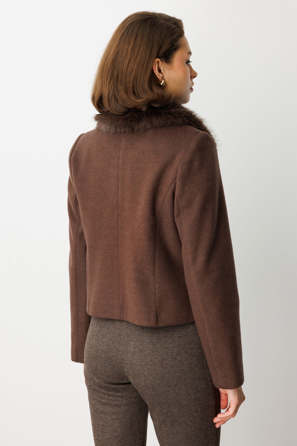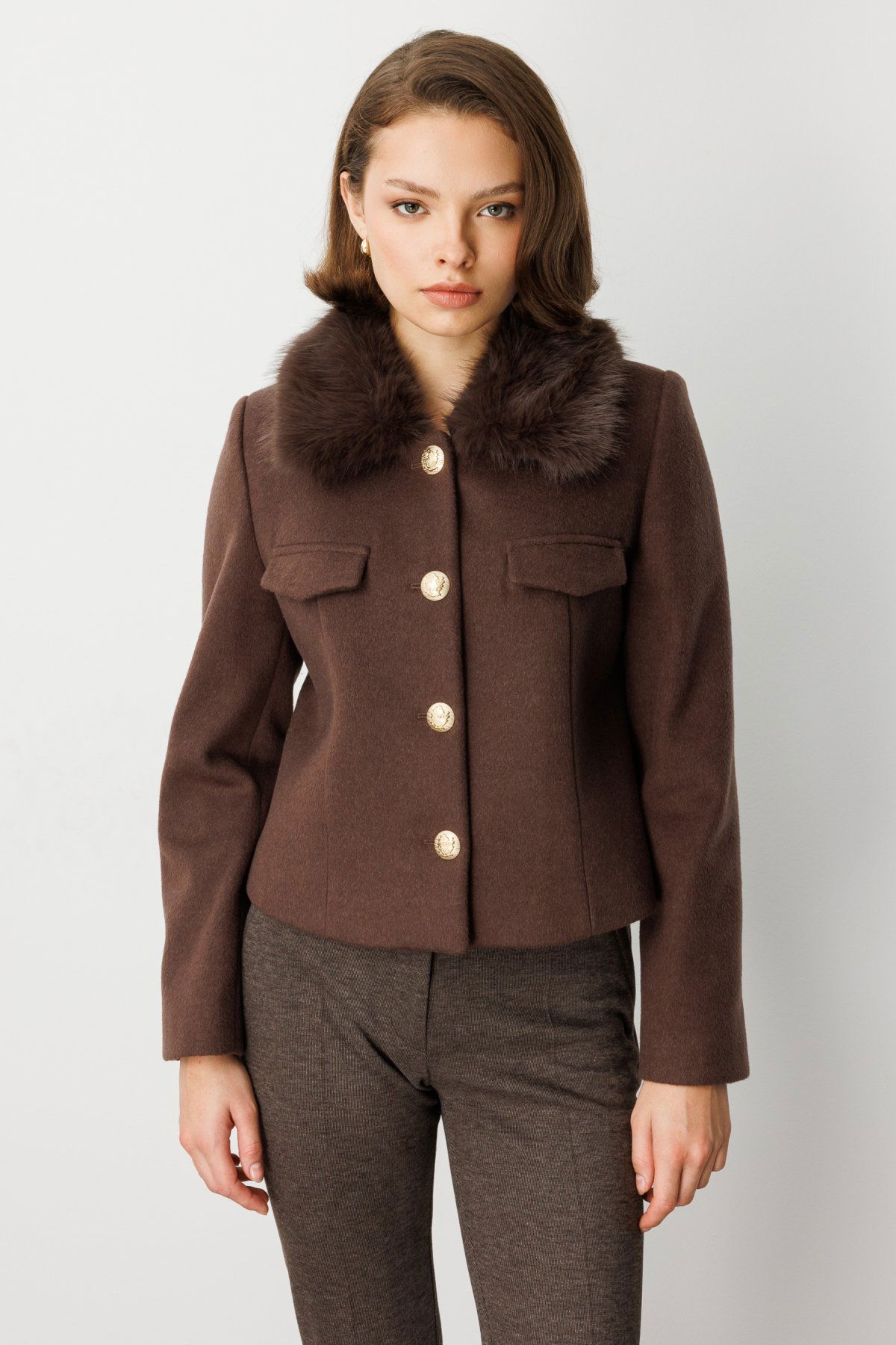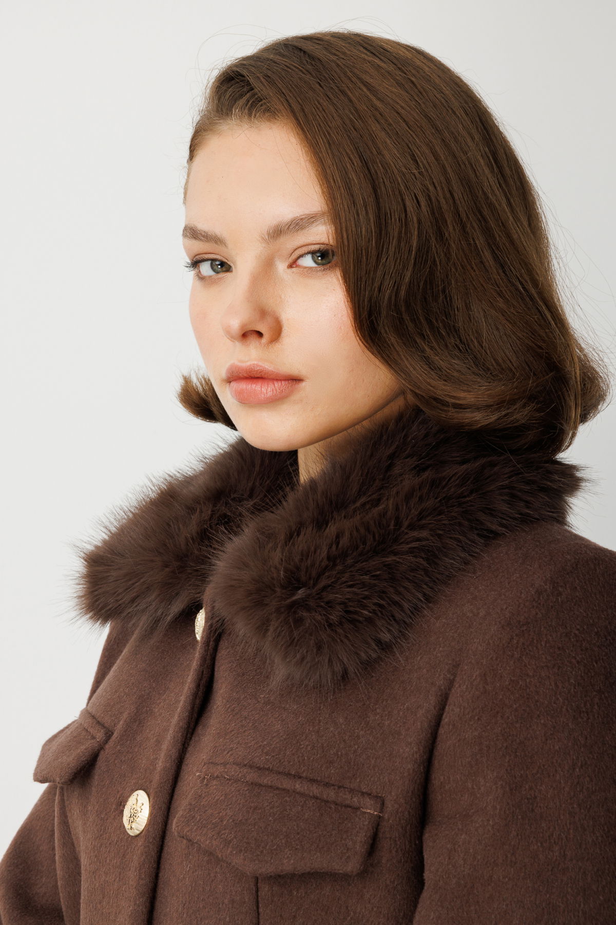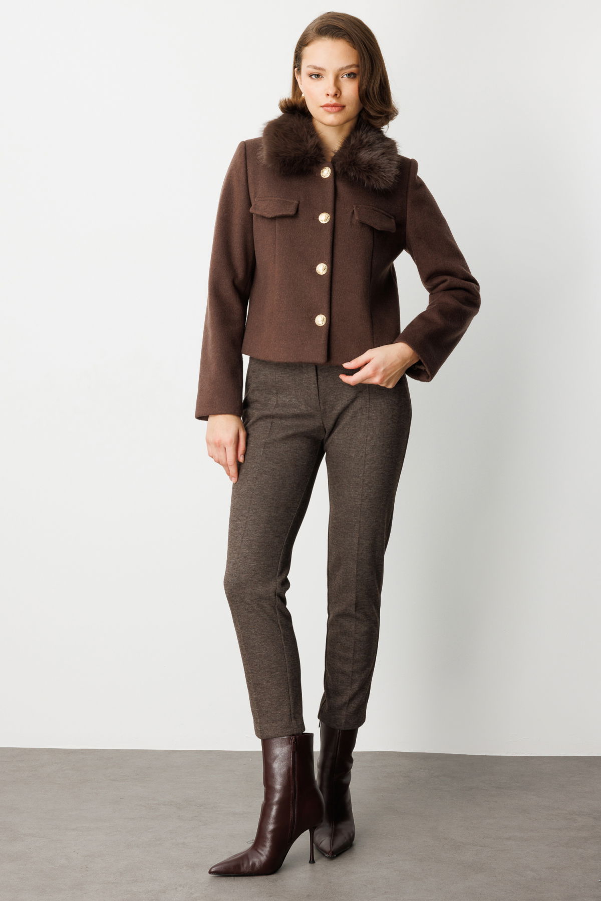 Ekol Kadın Yakası Kürklü Kısa Mont 6121 Kahverengi