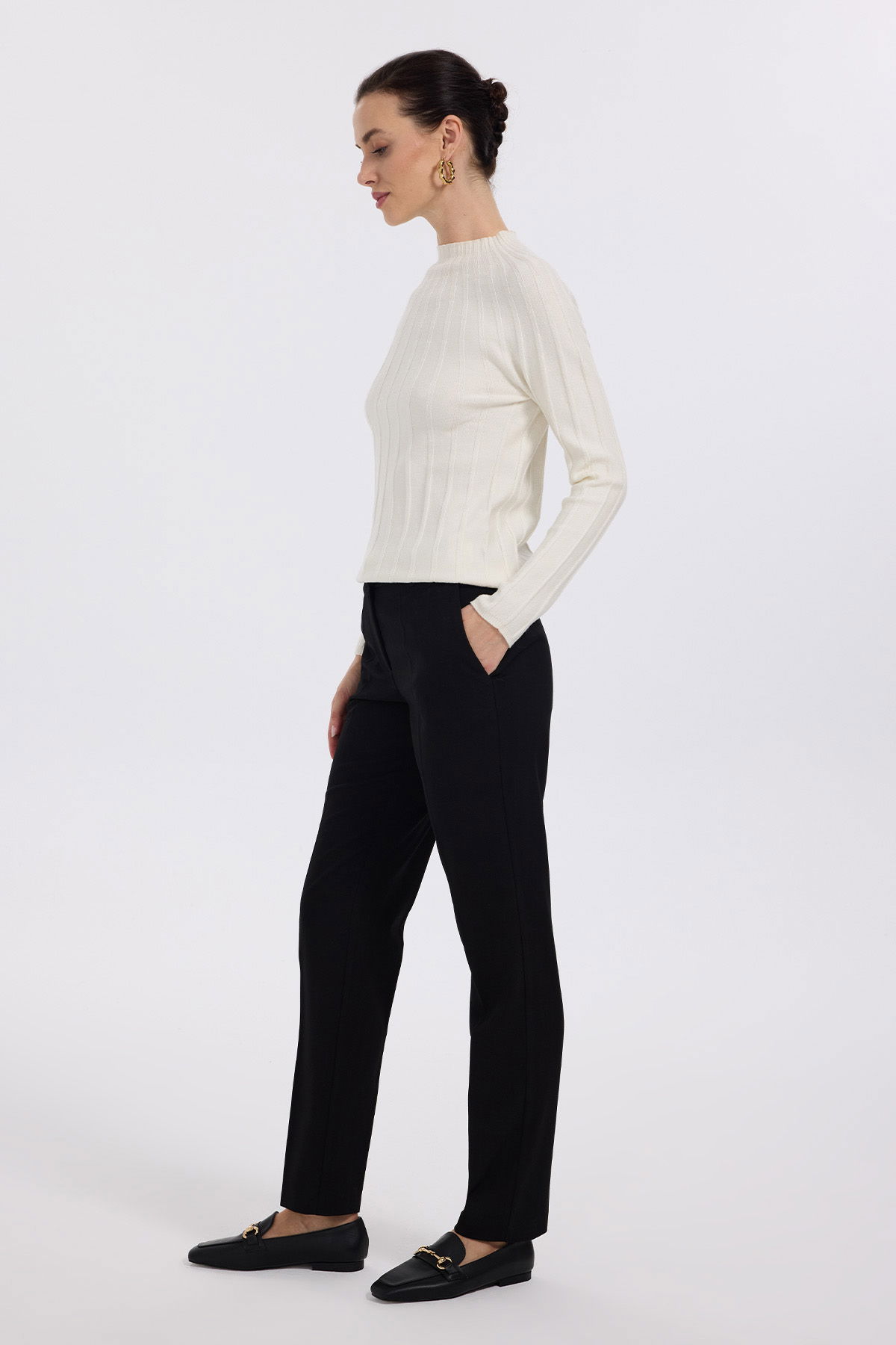 Detay: Yandan cepli, dar paça, yüksek bel pantolon;