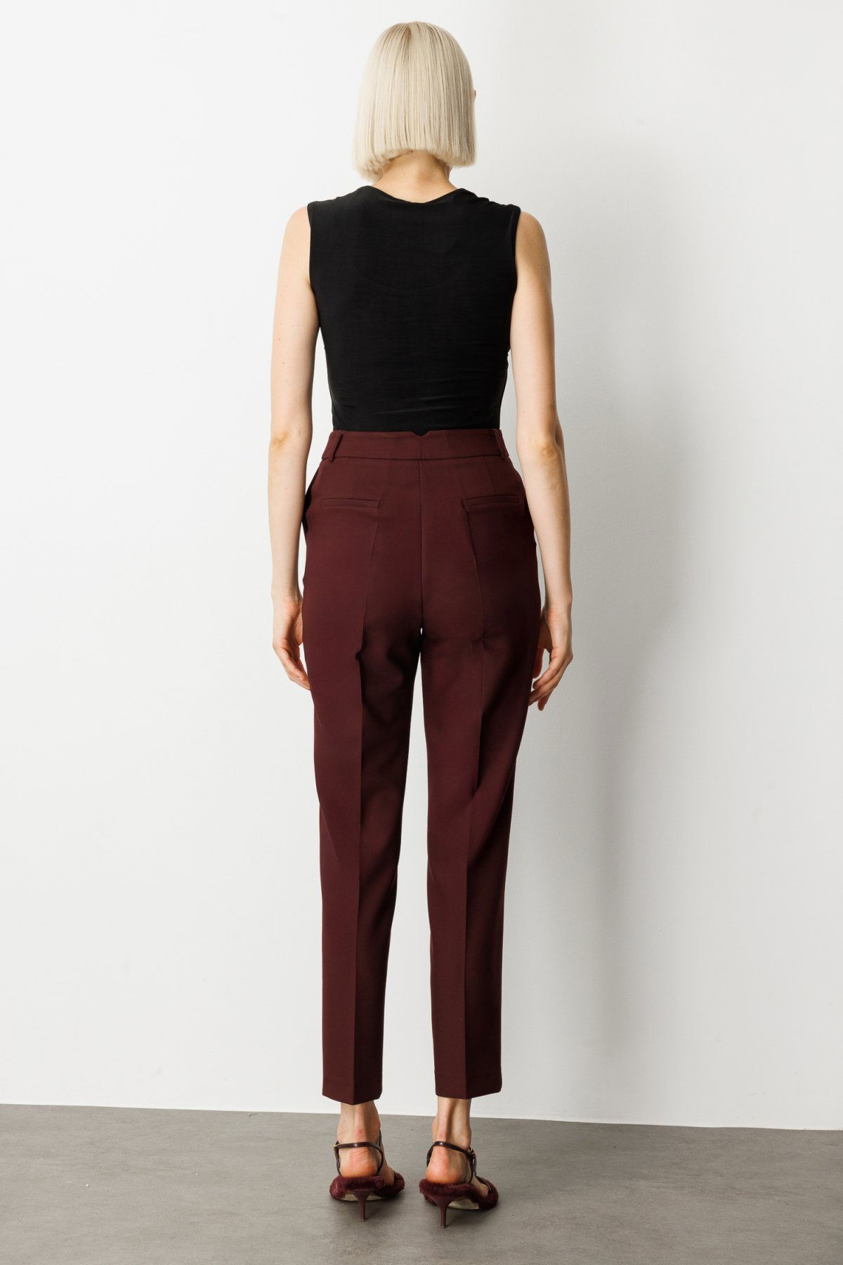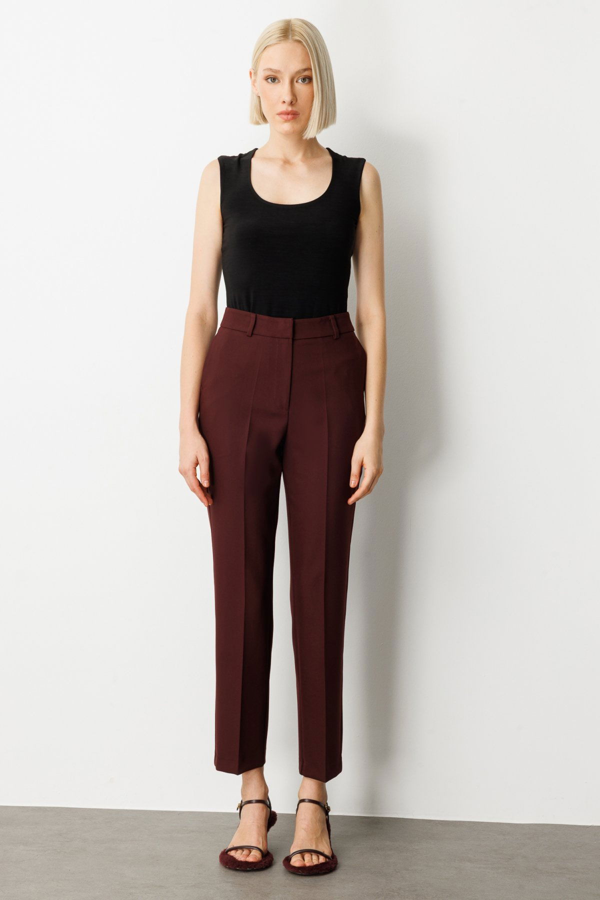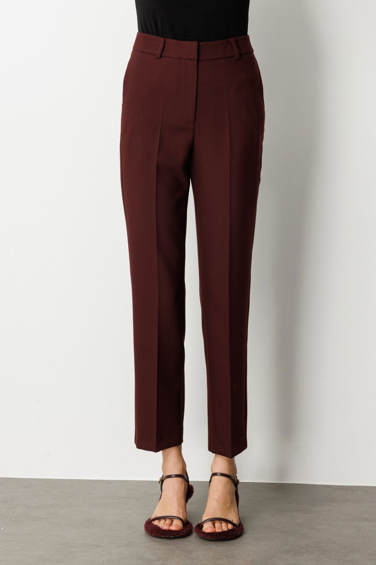 Detay: Yüksek bel tasarımıyla vücut hatlarını zarifçe vurgulayan bu dokuma kumaş pantolon, boru paça kesimiyle klasik ve dengeli bir siluet sunar. Yan cepleriyle fonksiyonelliği artırırken, fermuarlı kapama detayı sayesinde hem pratik hem de şık bir kullanım sağlar. Günlük stilinizden ofis kombinlerine kadar her ortamda rahatlıkla tercih edilebilecek bu pantolon, modern kadının gardırobunda şıklığın tamamlayıcı parçası olabilir;