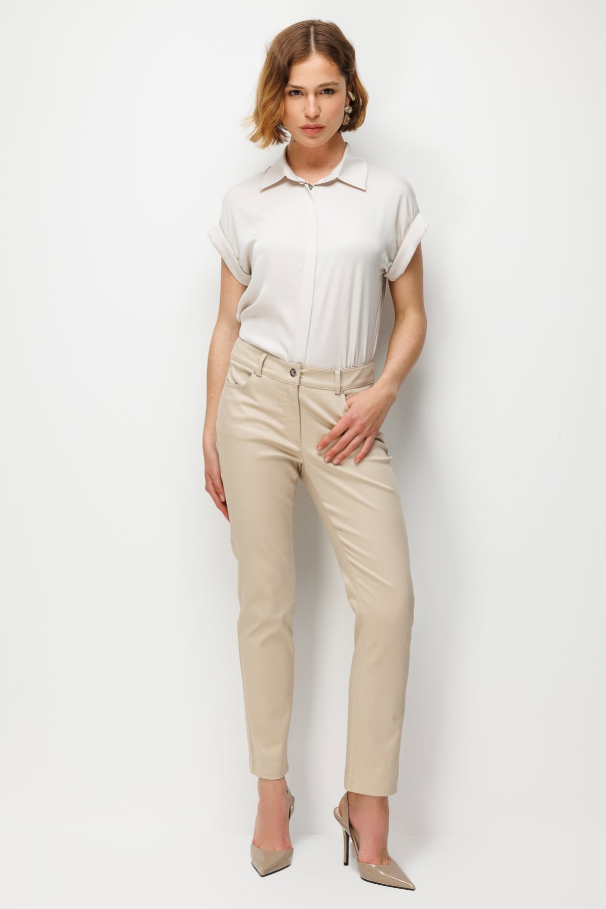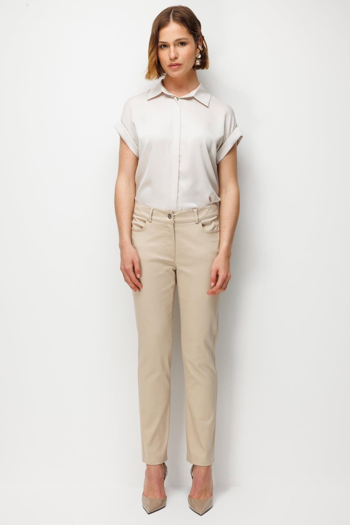 Ekol Kadın Yan Cepli Dar Paça Pamuklu Pantolon 4098 Kum