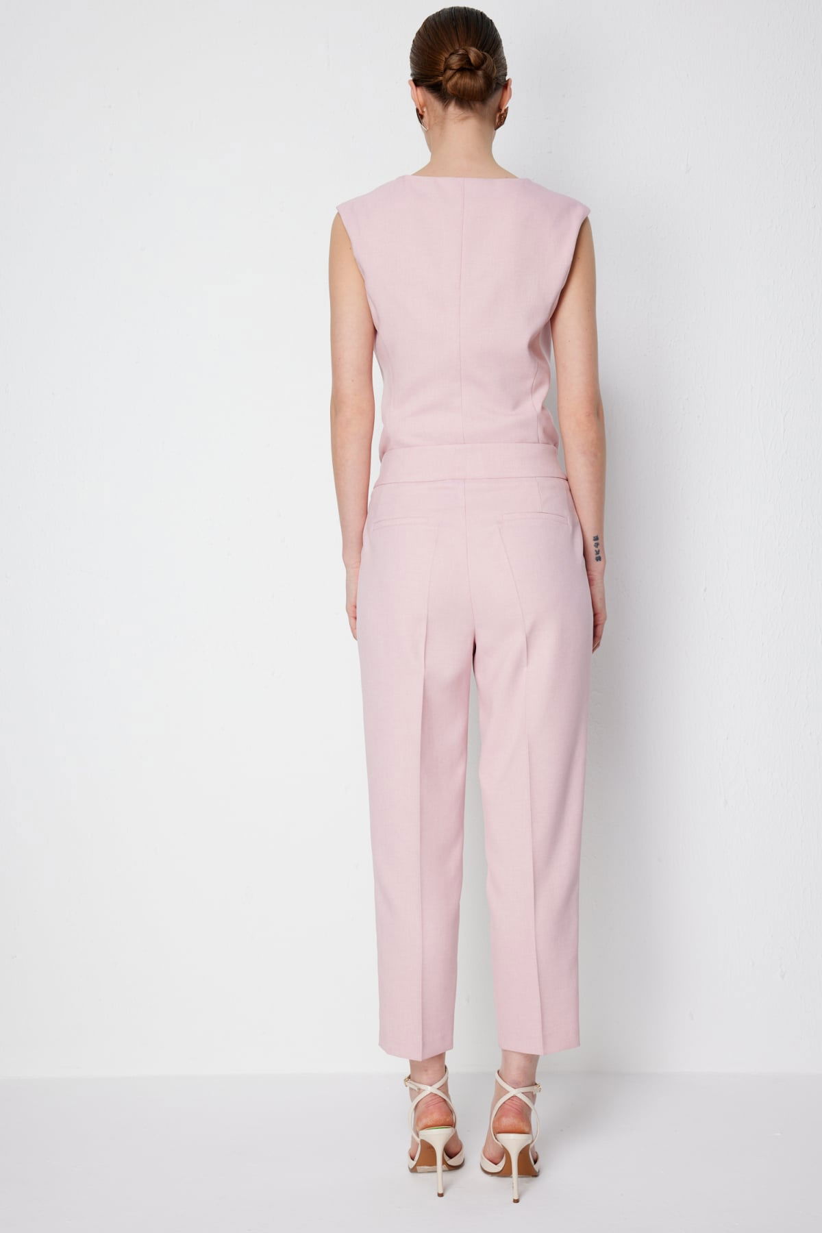 Detay: Bu pantolon modeli, polyester kumaş yapısıyla hafif ve dayanıklı bir kullanım sunarken astarsız tasarımı sayesinde rahat bir giyim deneyimi sağlar. Yüksek bel formu şık bir duruş kazandırırken, dar paça kesimi modern ve zarif bir görünüm ortaya çıkarır. Fermuarlı kapama pratiklik sağlarken, yan cepler fonksiyonel bir kullanım sunar. Günlük kombinlerden ofis şıklığına kadar çok yönlü bir parçadır;