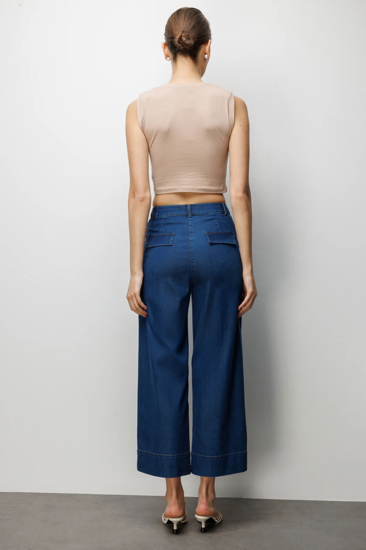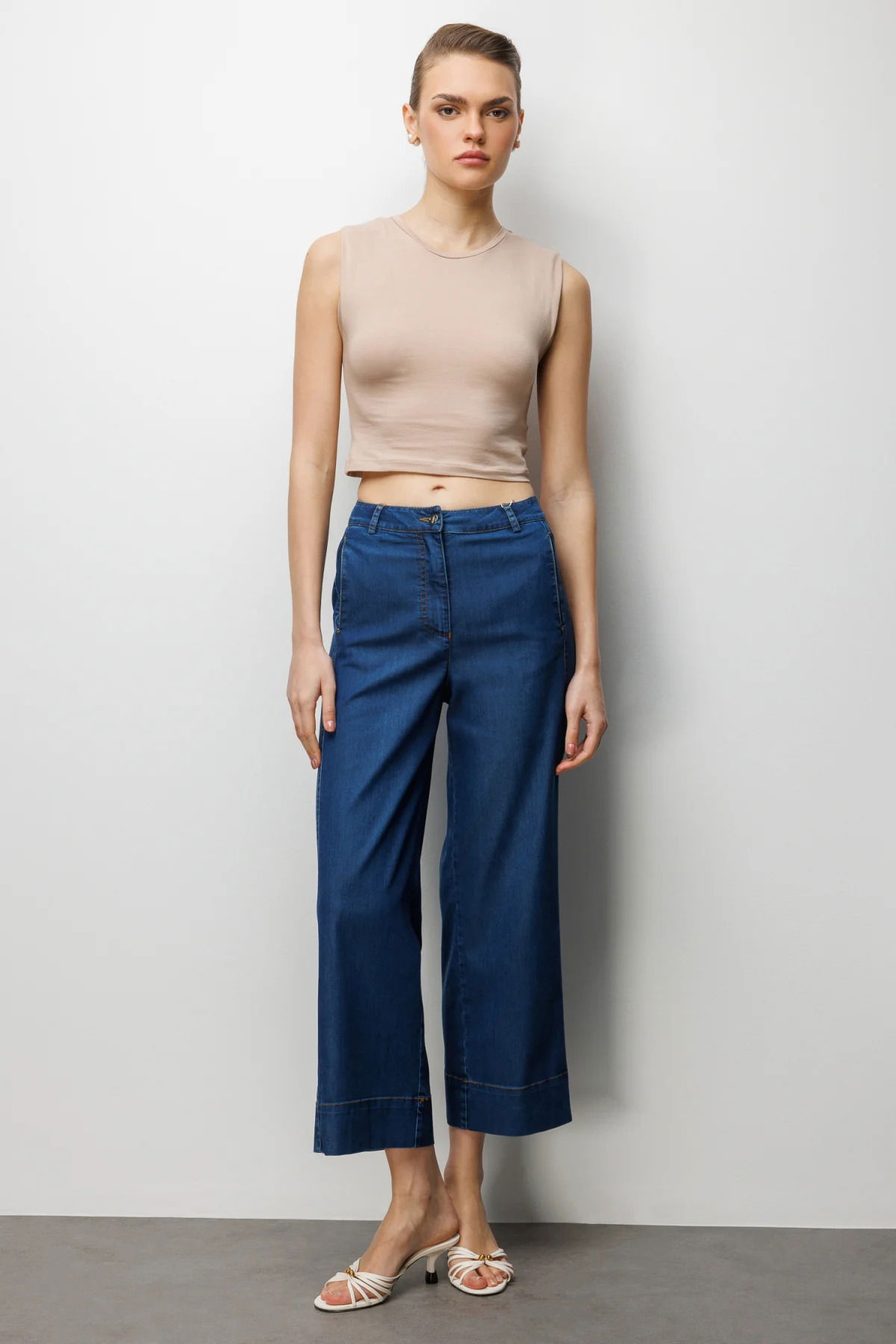 Detay: %100 polyester dokuma kumaştan üretilmiş, astarsız yapısı sayesinde hafif ve rahat bir kullanım sunan bu yüksek bel, fermuarlı ve yan cepli bol paça pantolon modern kesimiyle şıklığı ön plana çıkarır. Yüksek bel detayı zarif bir duruş sağlarken, bol paça tasarımı feminen ve özgür bir siluet oluşturur. Yan cep detayı ise hem işlevsellik hem de şık bir görünüm kazandırır. Dayanıklı polyester dokusu sayesinde uzun süre formunu koruyarak hem günlük kombinlerde hem de özel davetlerde gardırobunuzun dikkat çekici parçalarından biri olmaya adaydır;