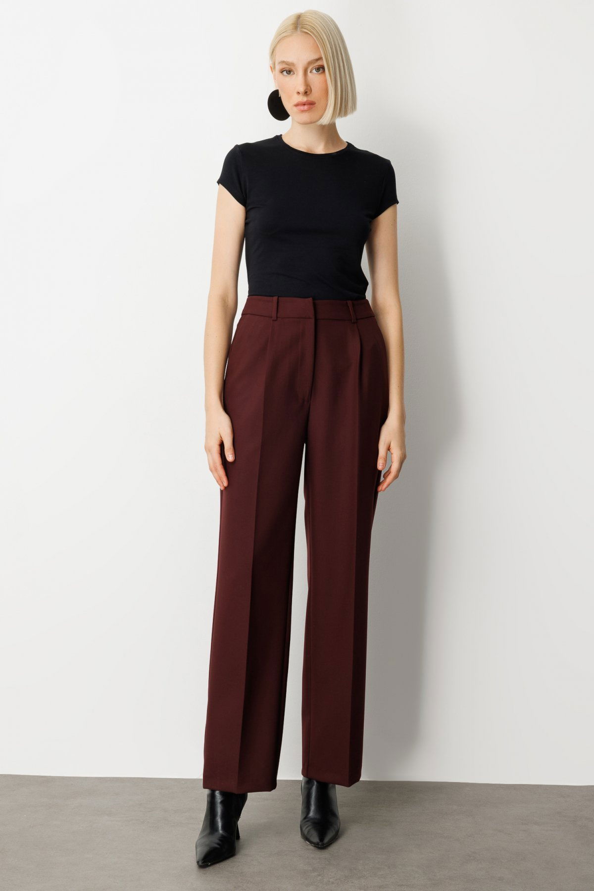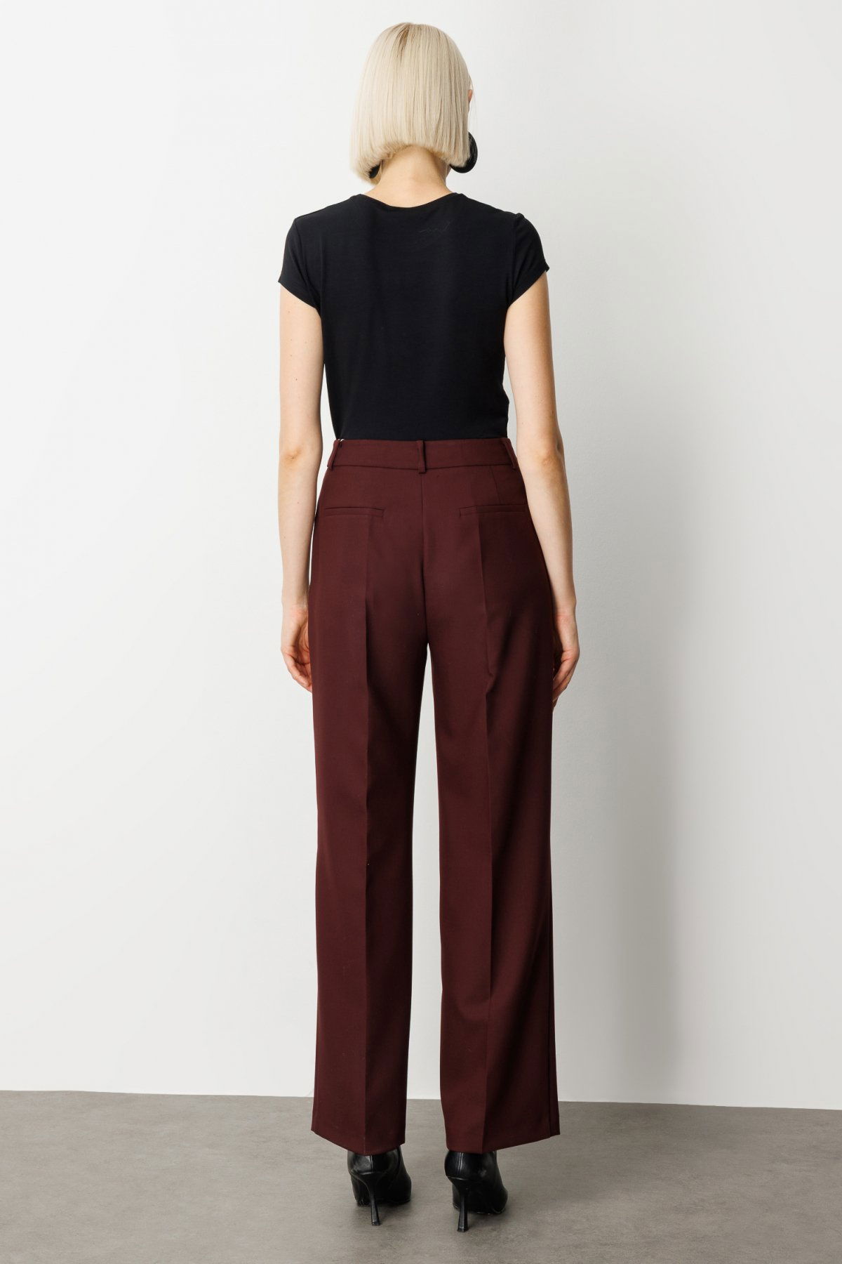 Detay: Bu pantolon modeli, dokuma kumaşıyla hem şık hem de dayanıklı bir yapı sunarken, astarsız tasarımı sayesinde hafif ve rahat bir kullanım sağlar. Yüksek bel kesimi, bel hattını vurgulayarak zarif bir siluet oluştururken, bol paça tasarımıyla özgür ve akıcı bir duruş kazandırır. Fermuarlı kapama şekli pratiklik sunarken, yan cepler hem işlevsel hem de stil tamamlayıcı detaylar olarak öne çıkar. Günlük şıklıkta ve ofis stilinde modern bir görünüm arayanlar için ideal bir tercihtir;