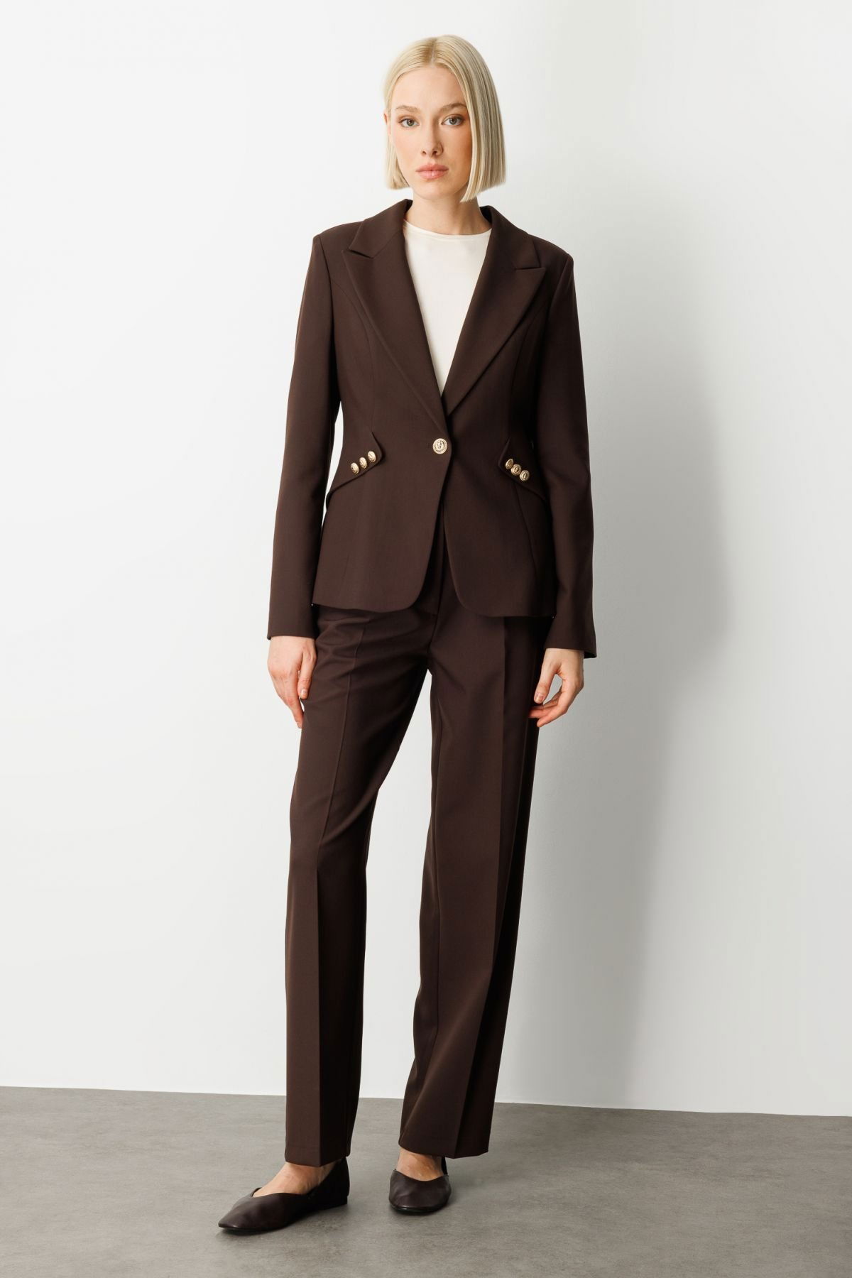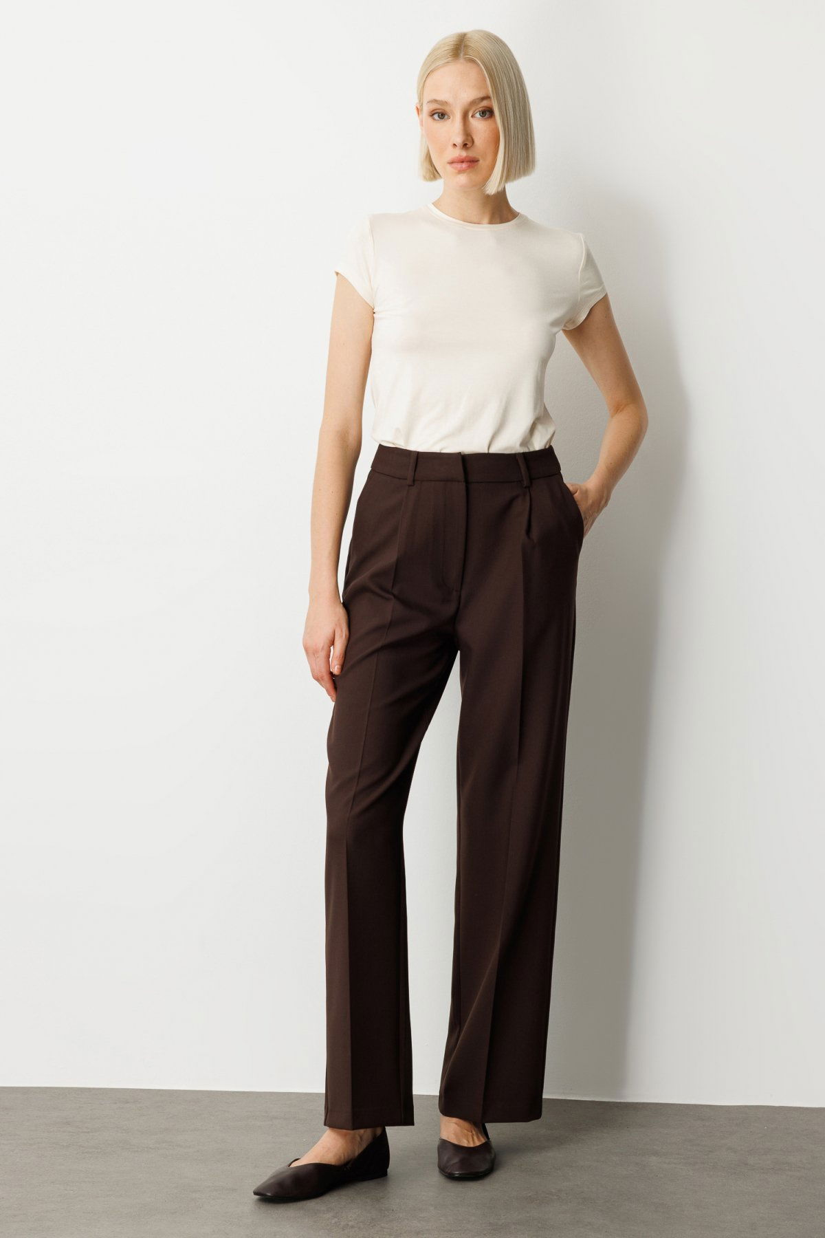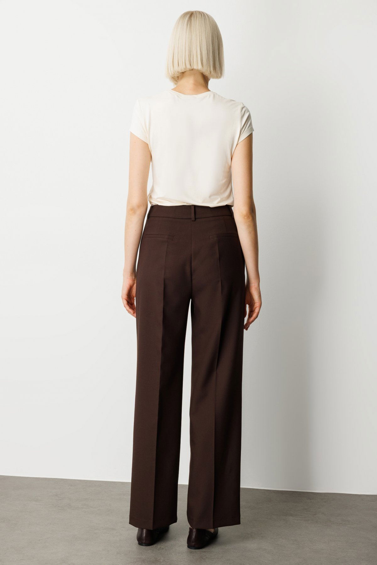 Ekol Kadın Yüksek Bel Bol Paça Pantolon 5019 Kahverengi