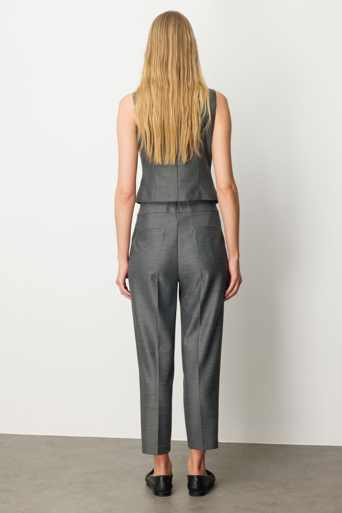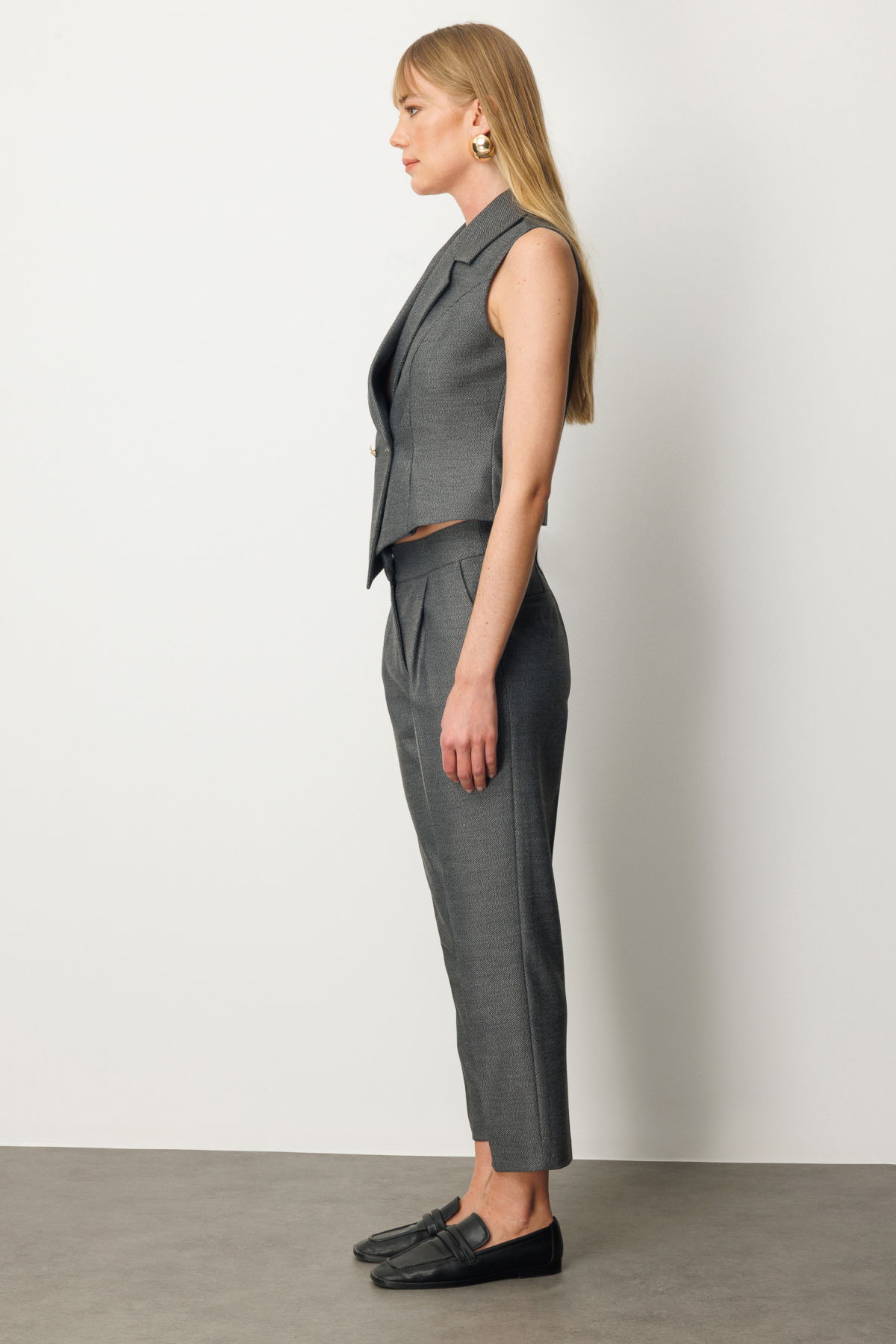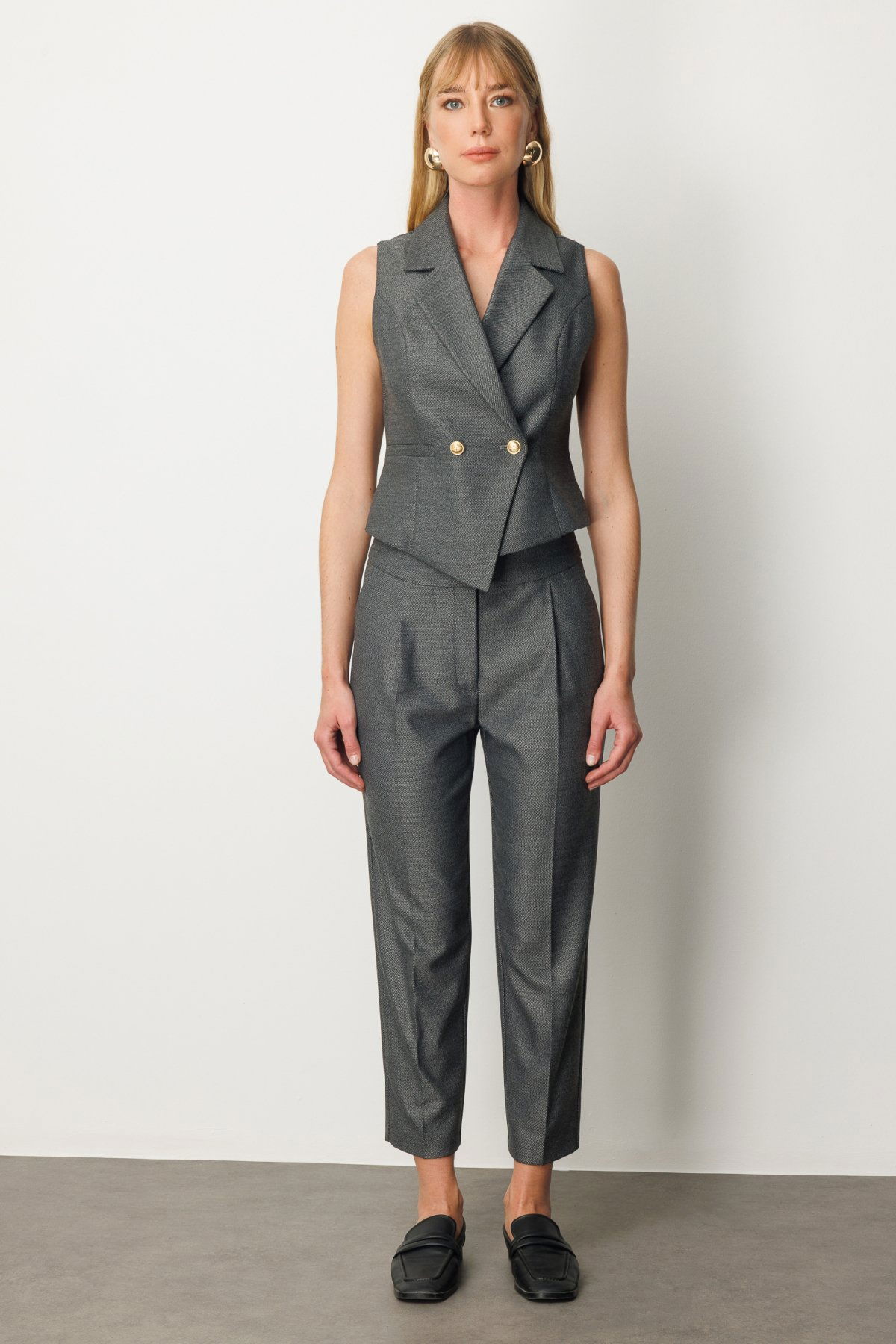 Detay: Dokuma kumaştan üretilen bu pantolon, yüksek bel tasarımıyla vücut hatlarını zarifçe vurgularken dar paça kesimiyle modern ve şık bir siluet sunar. Fermuarlı kapama detayıyla pratiklik sağlayan model, yan cepleriyle fonksiyonelliği artırarak günlük stilinize sade bir dokunuş katar. Hem ofis hem de günlük kullanım için ideal bir tercih olan bu pantolon, konfor ve stilin dengeli birleşimini sunar;