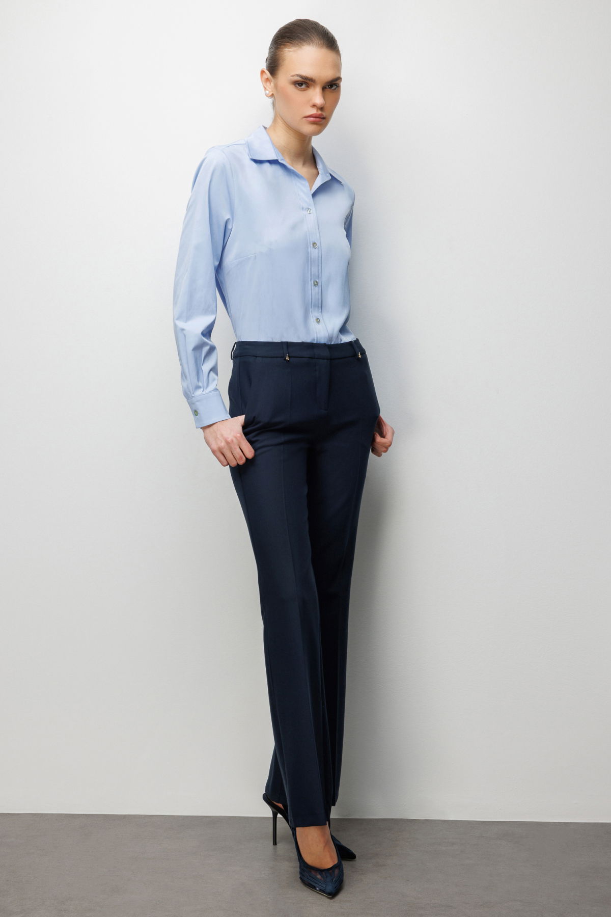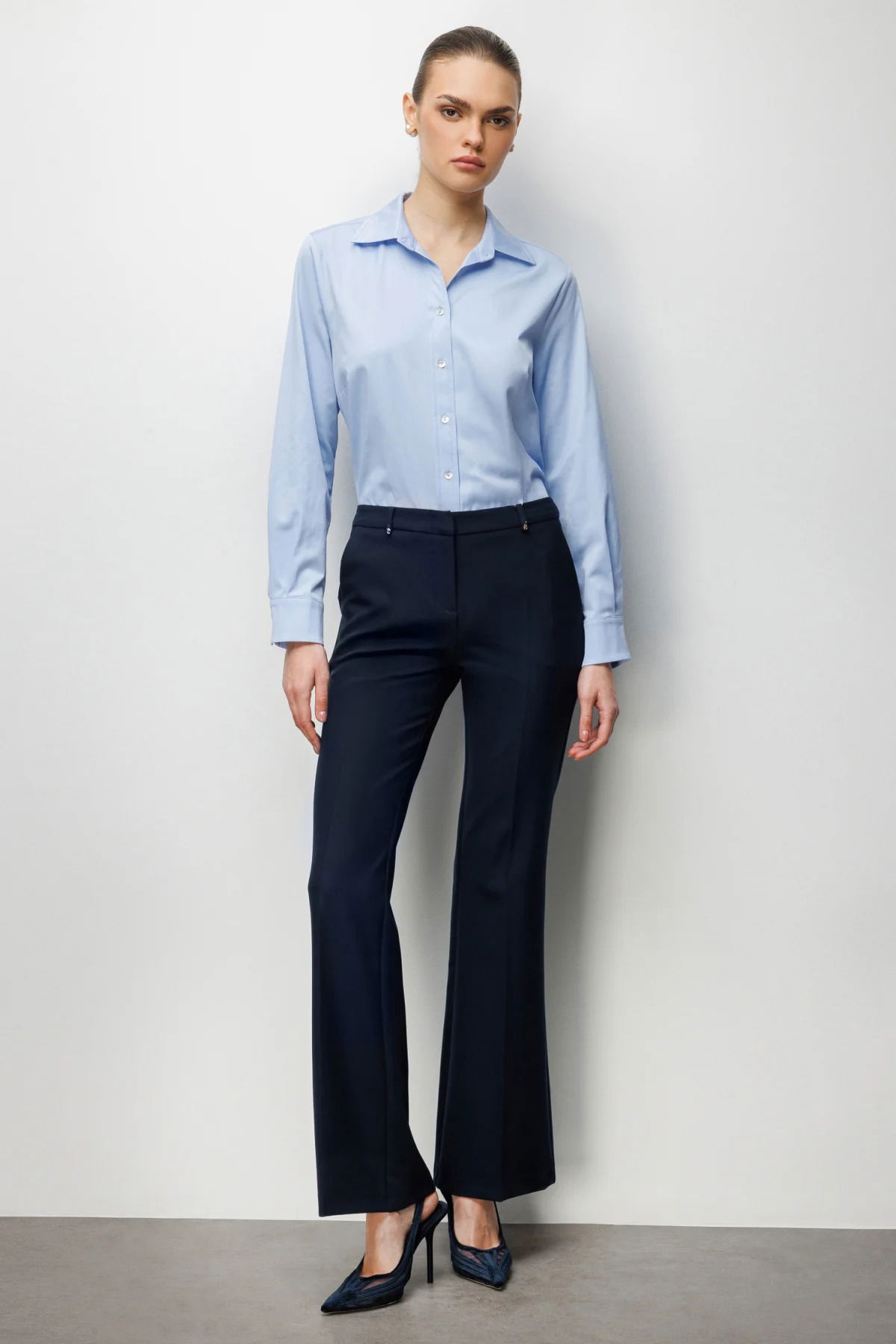 Ekol Kadın Yüksek Bel İspanyol Paça Pantolon 4004 Lacivert