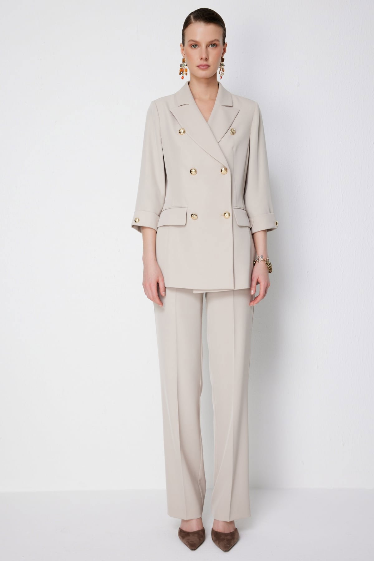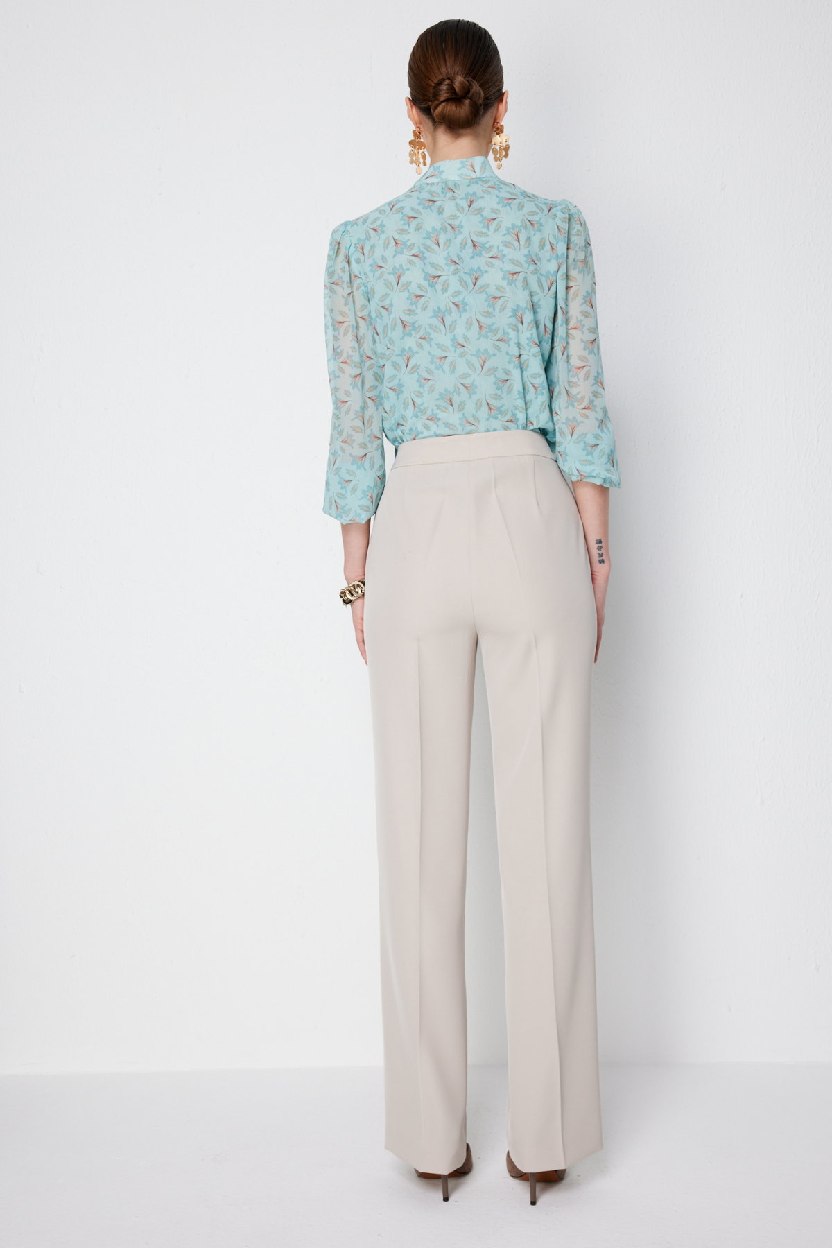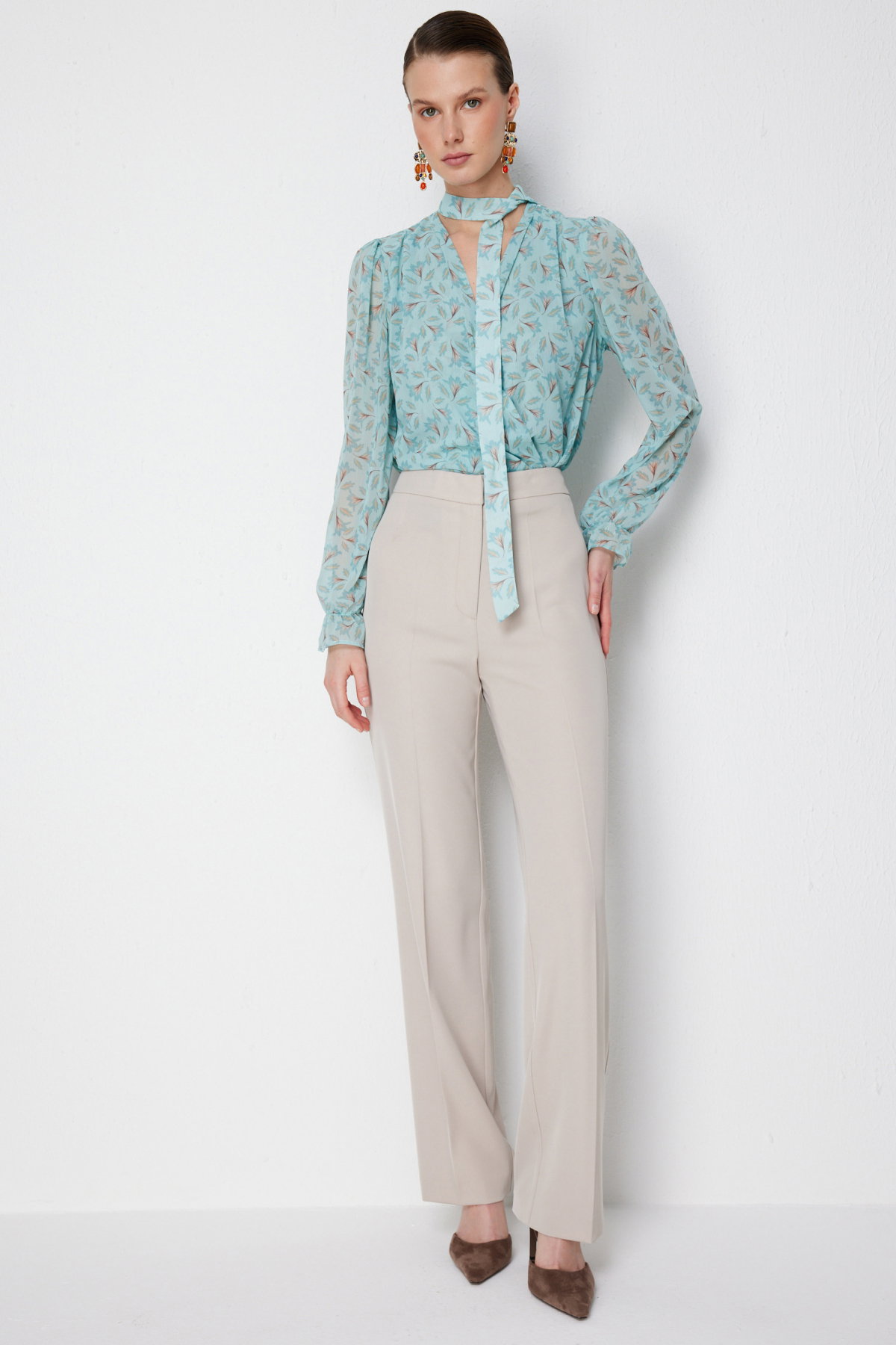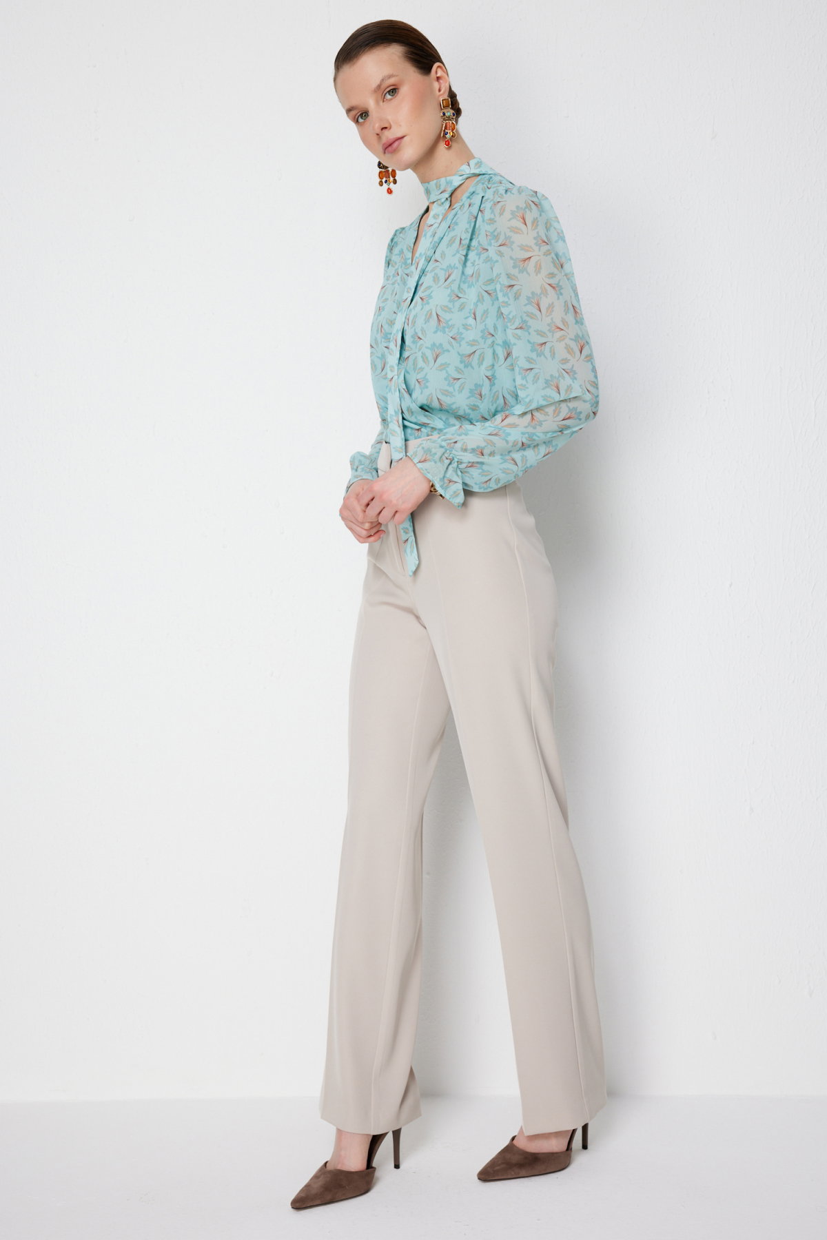 Detay: Polyester kumaştan üretilen, astarsız, yüksek bel, boru paça, fermuarlı ve cepsiz bu pantolon modeli tüm bu özellikleri ile modern ve zarif bir görünüm sunar. Yüksek bel tasarımı bel hattını vurgulayarak daha uzun bir siluet etkisi yaratırken boru paça formu klasik ve şık bir duruş sağlar. Fermuarlı kapama şekli pratiklik sunarken cepsiz tasarım minimal bir estetik kazandırarak sade ve çağdaş bir tarz ortaya çıkarır;