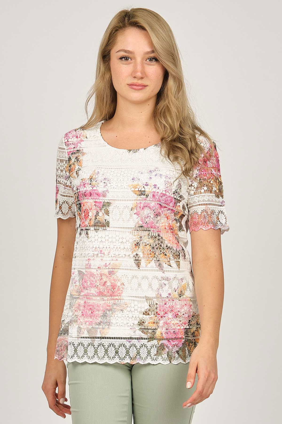 Detay: Dantel detaylı, yuvarlak yaka bluz;