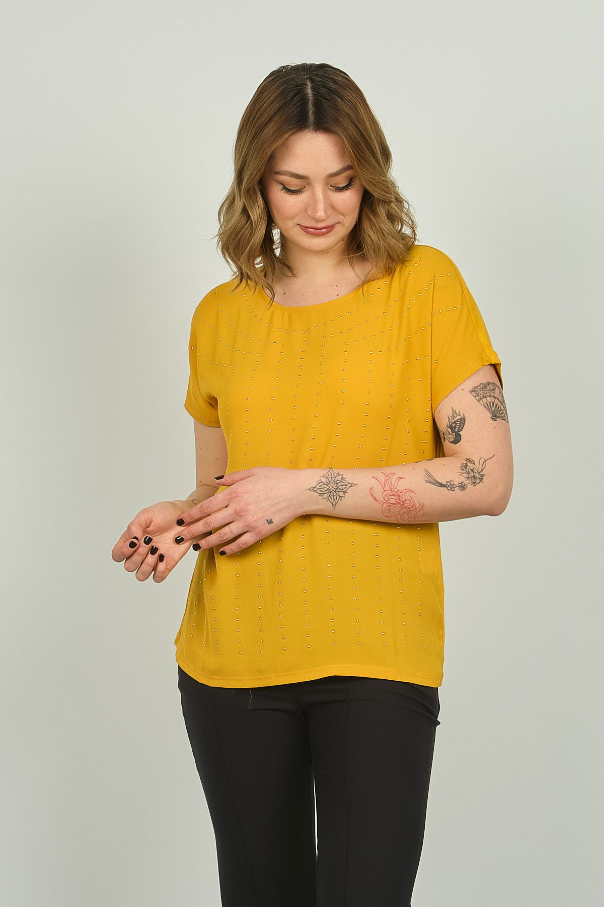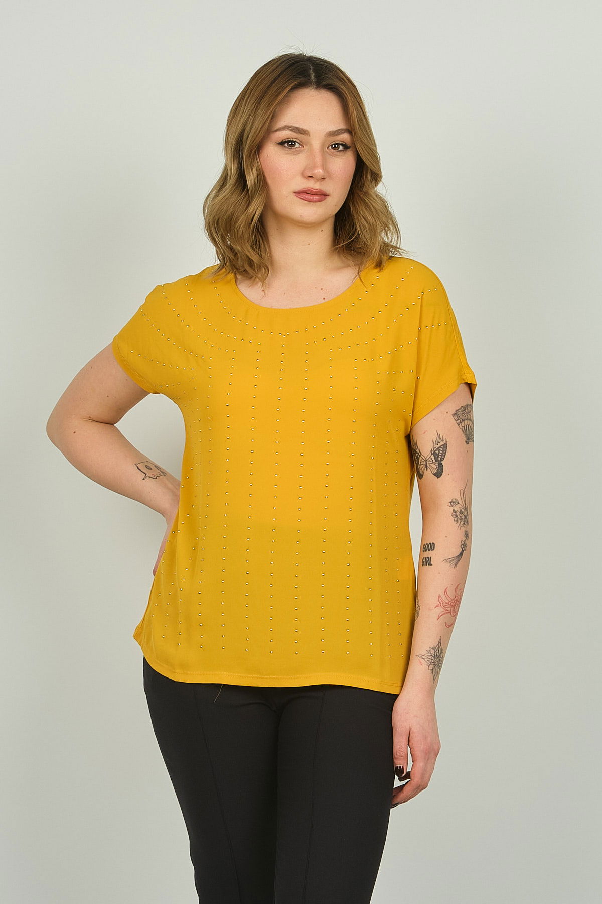 Ella Camelia Kadın İşlemeli Bluz 19E093 Hardal