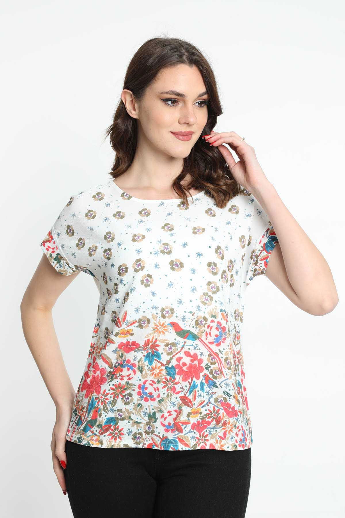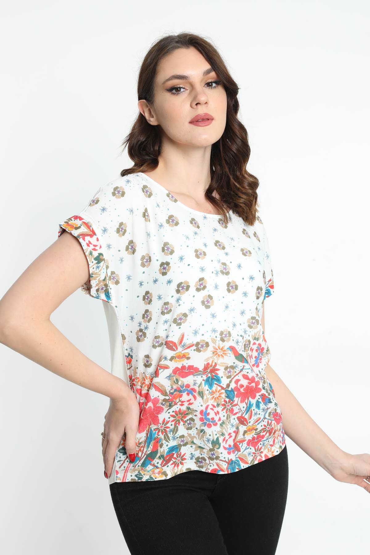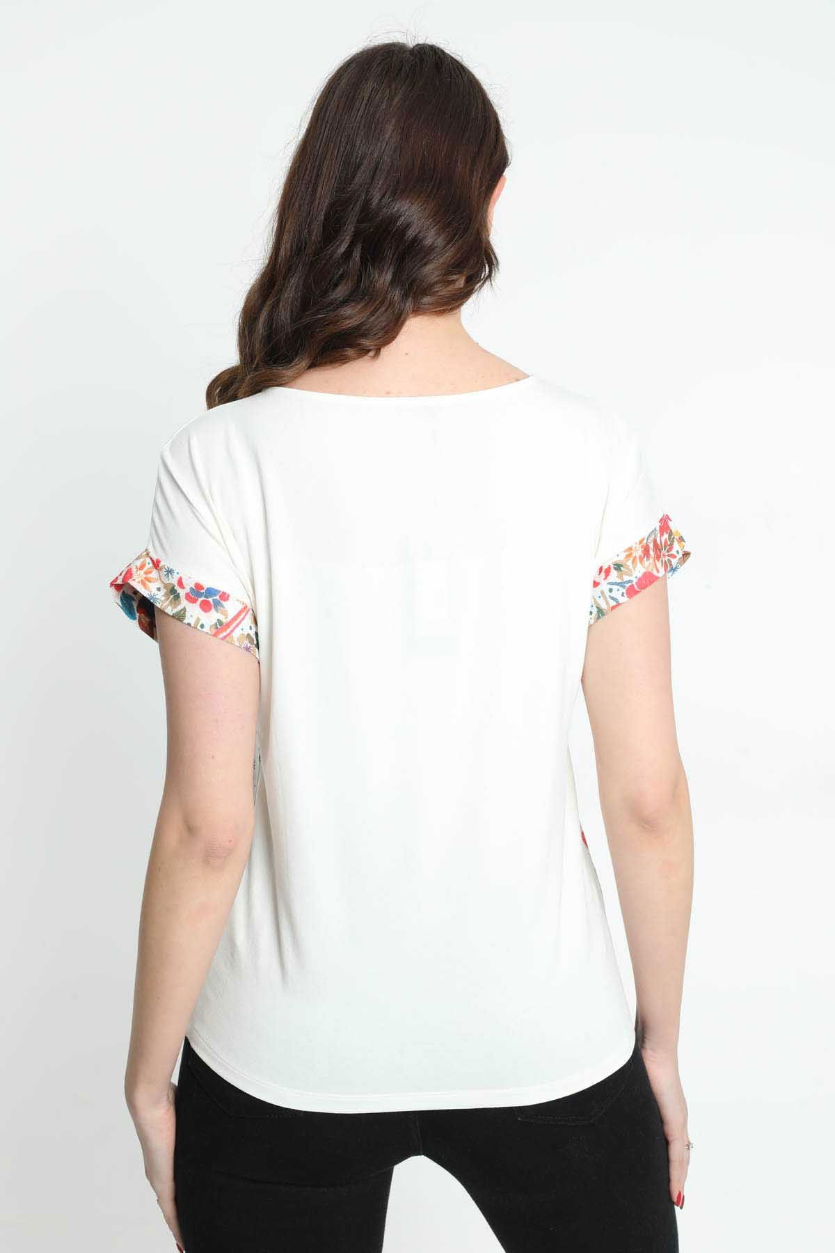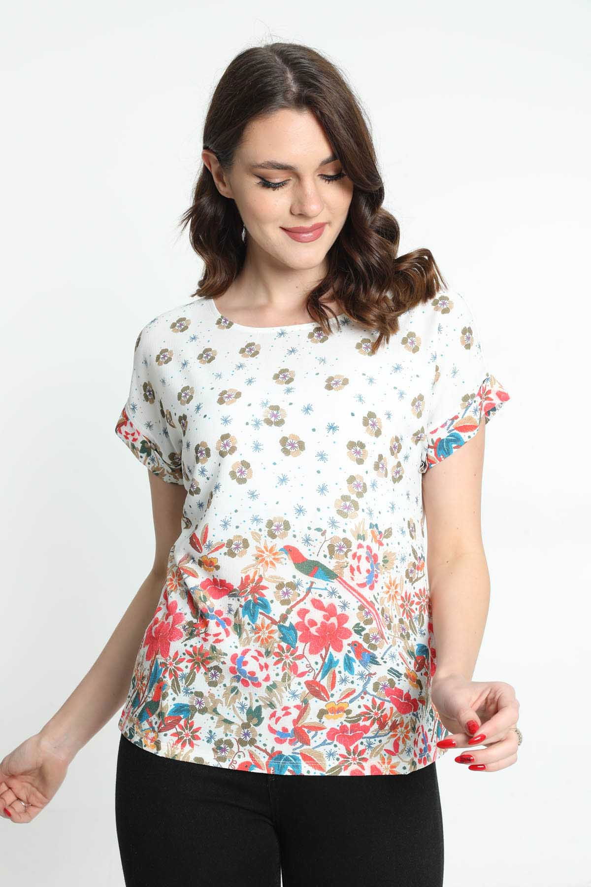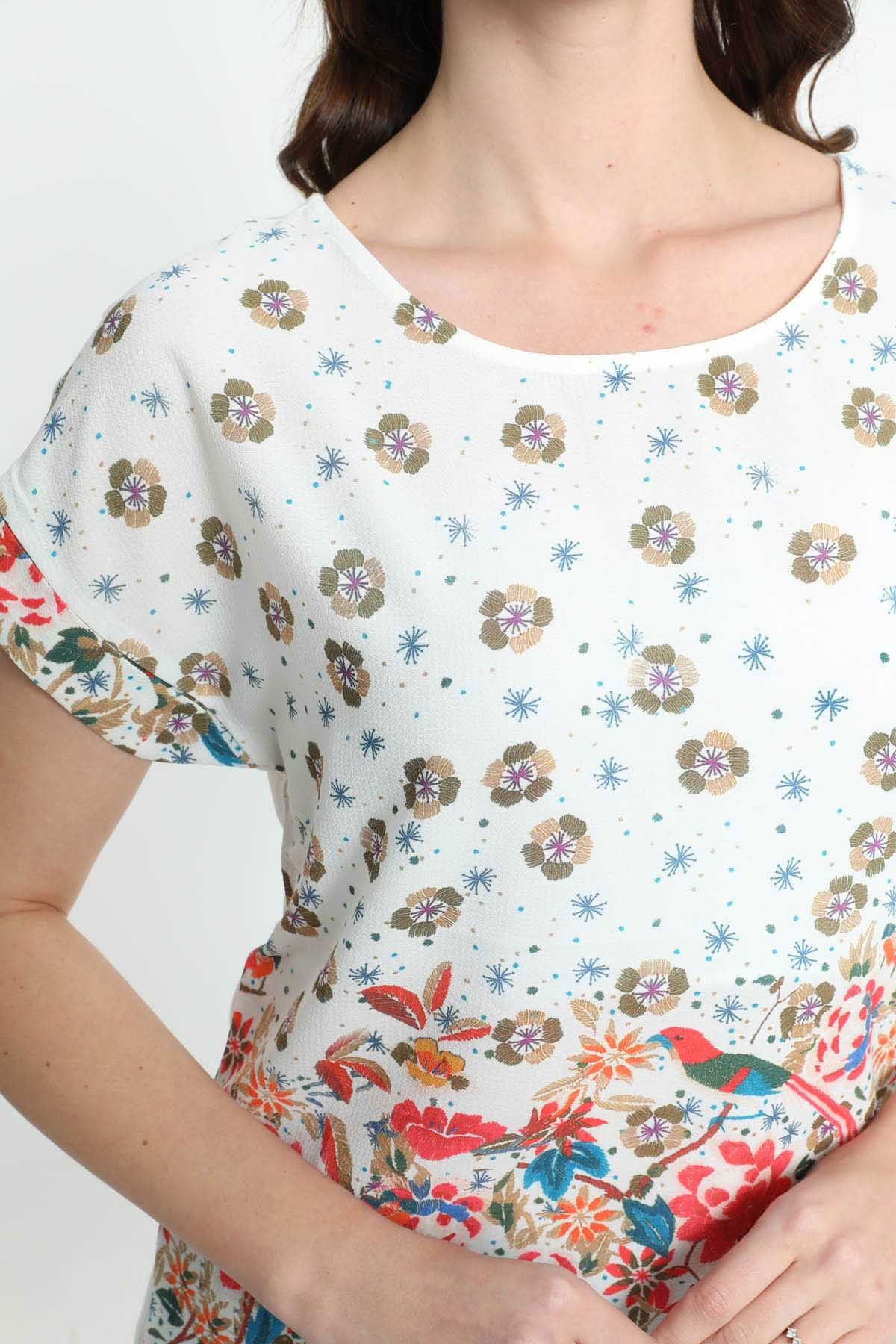 Ella Camelia Kadın Kısa Kol Desenli Bluz 5010038 Ekru