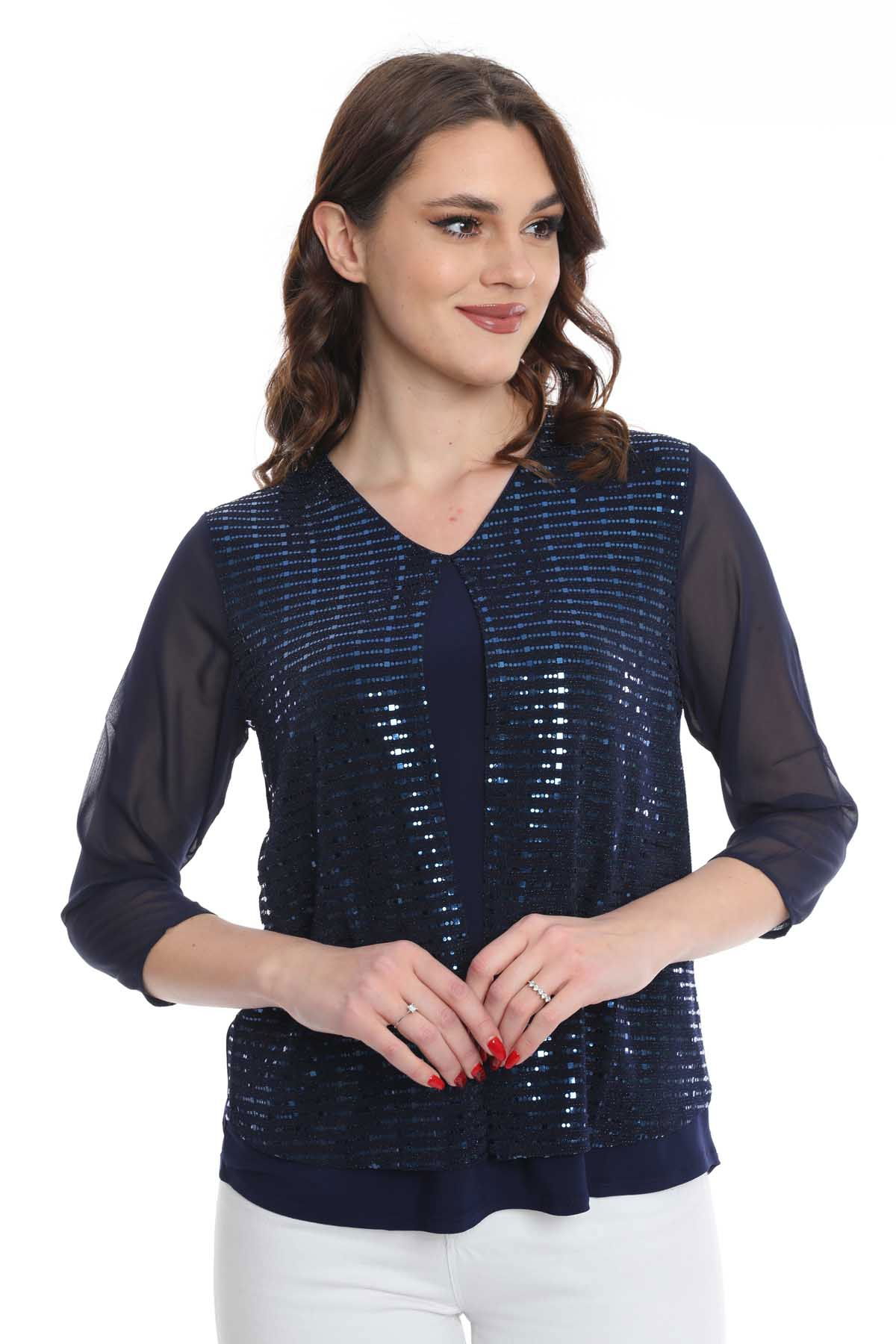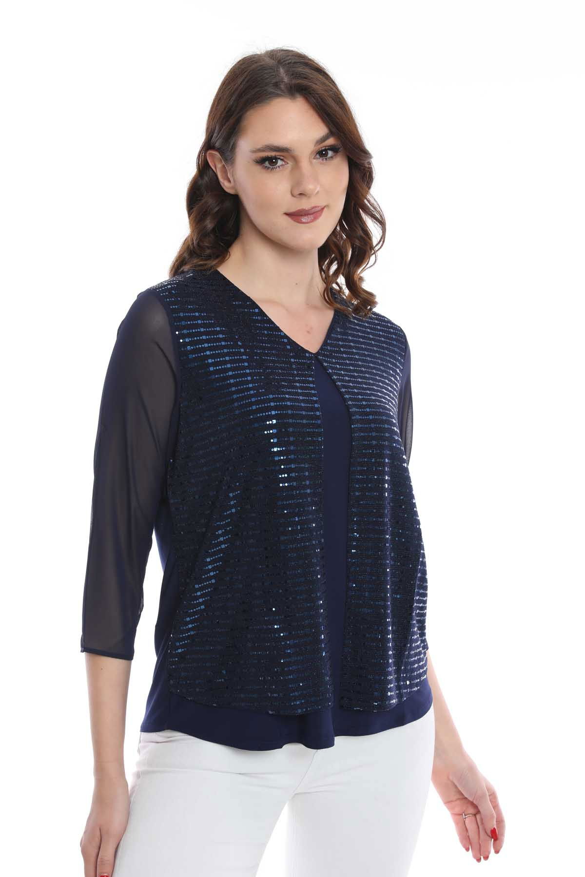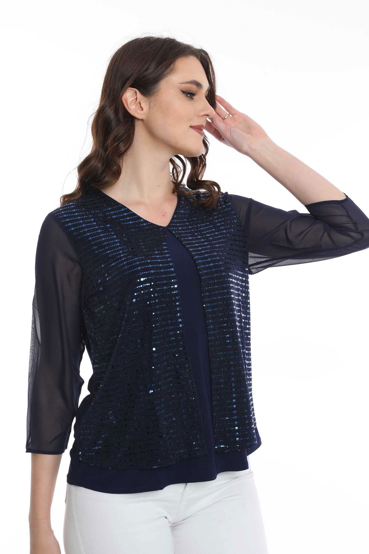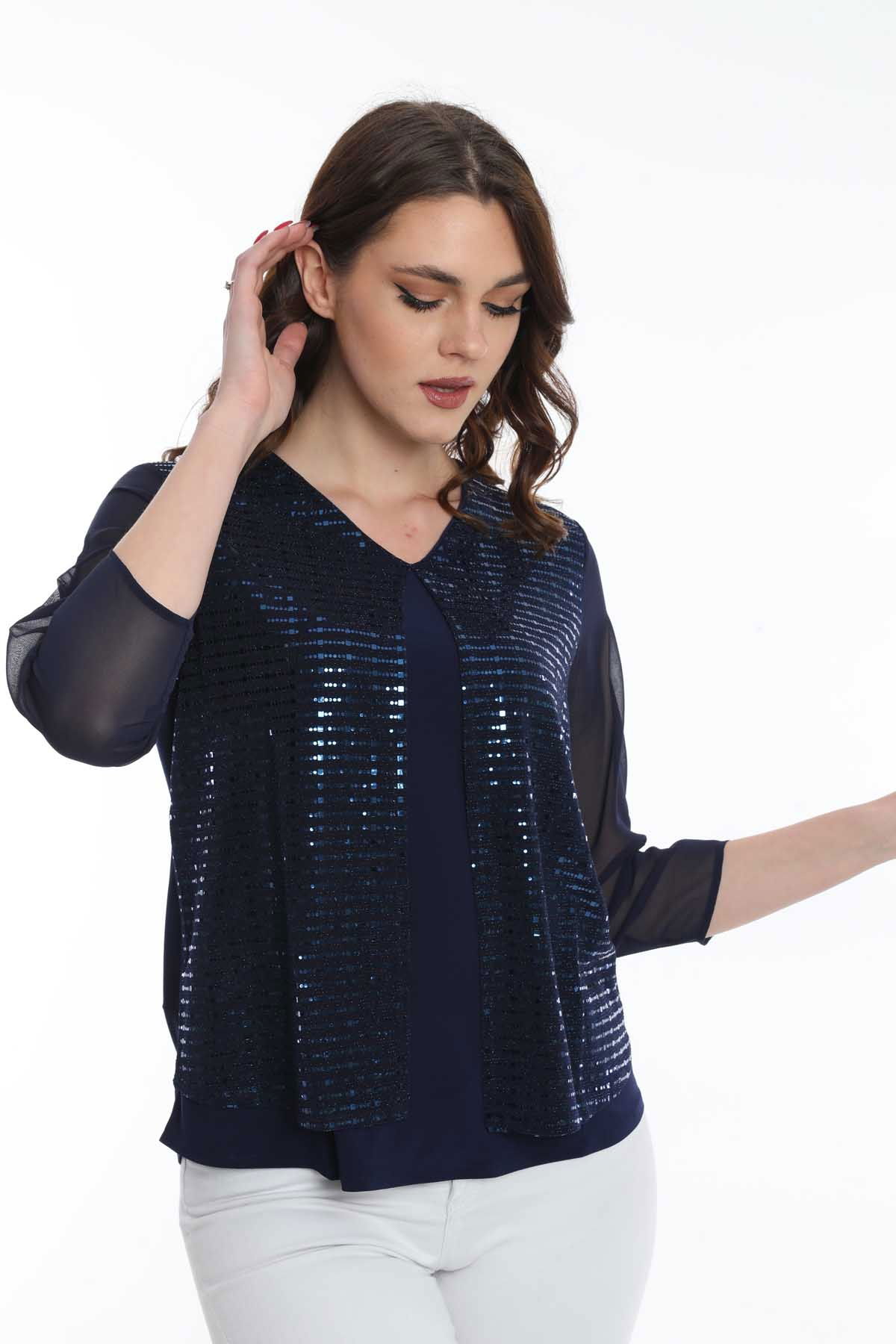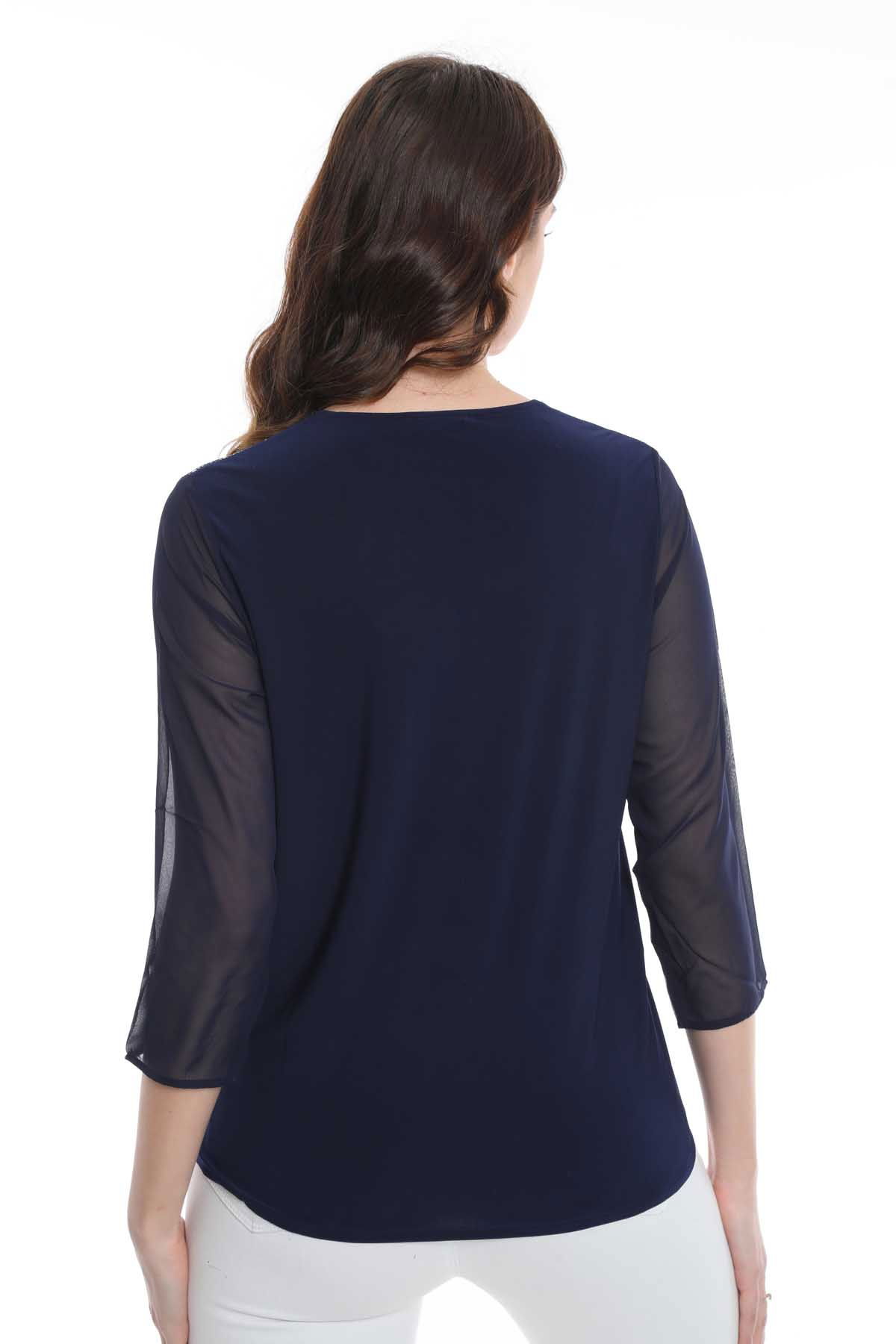Ella Camelia Kadın Kolları Tül Detaylı Bluz 19E040 Lacivert