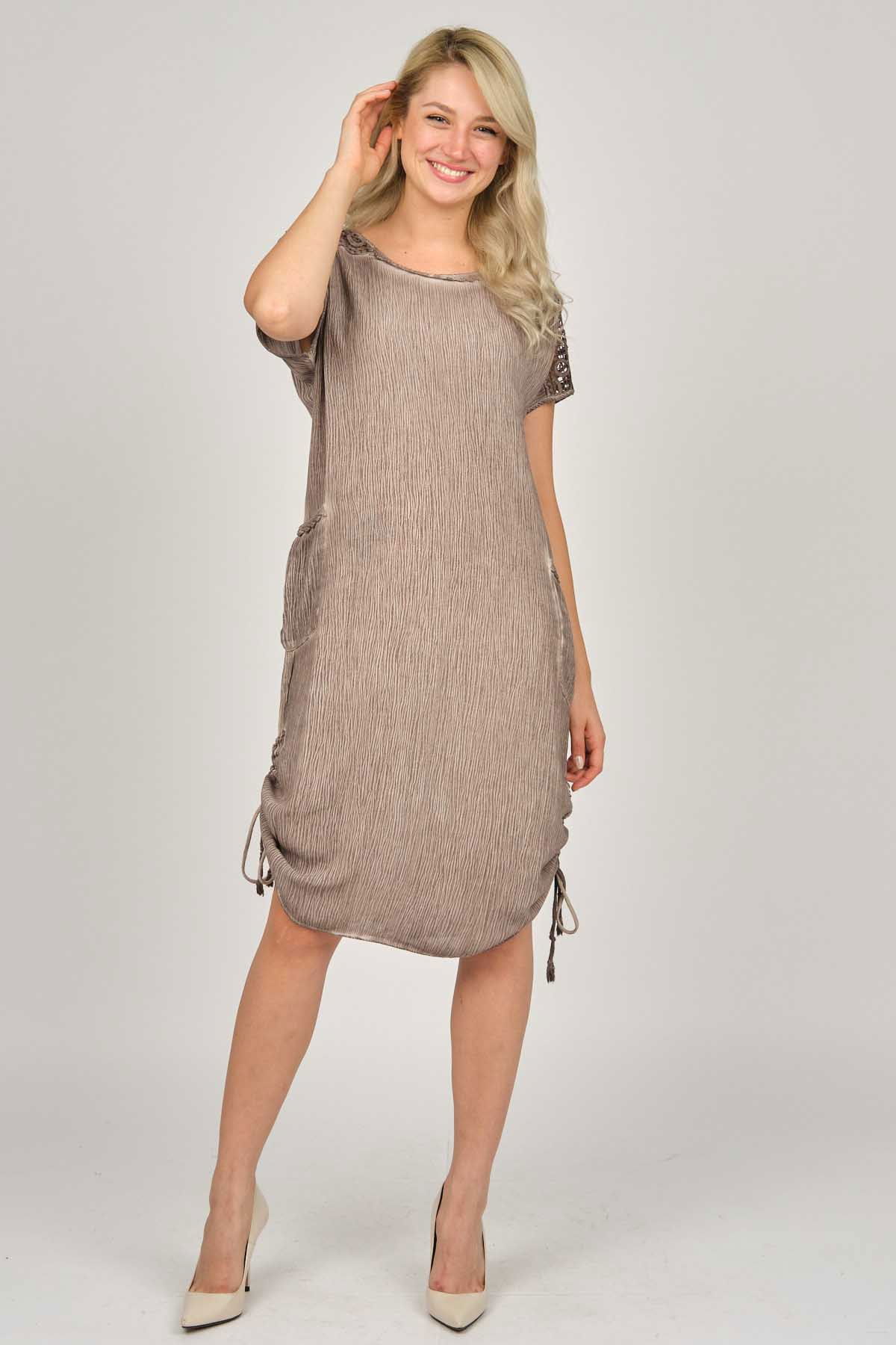 Ella Camelia Kadın Omuz Detaylı Elbise 5012175 Haki