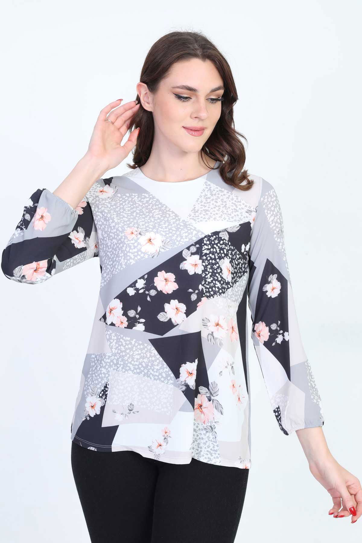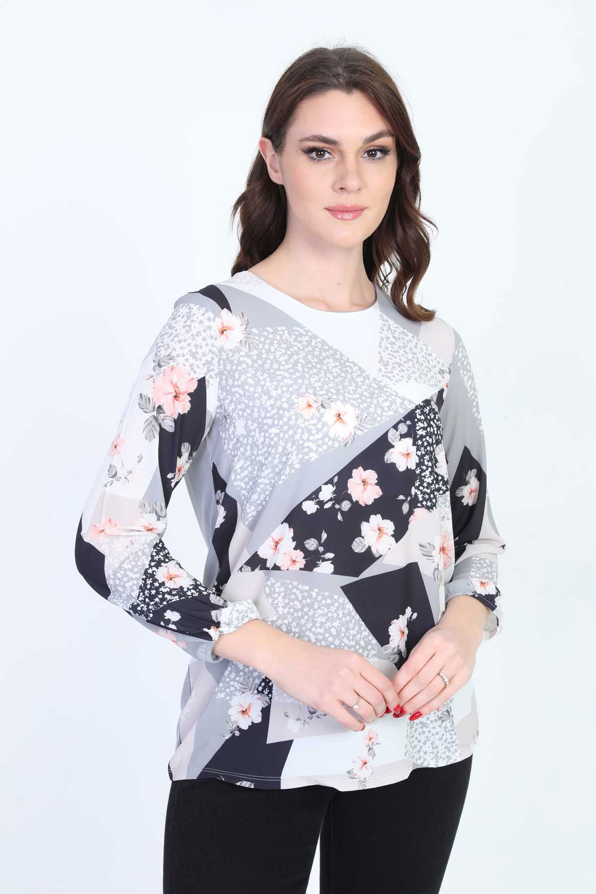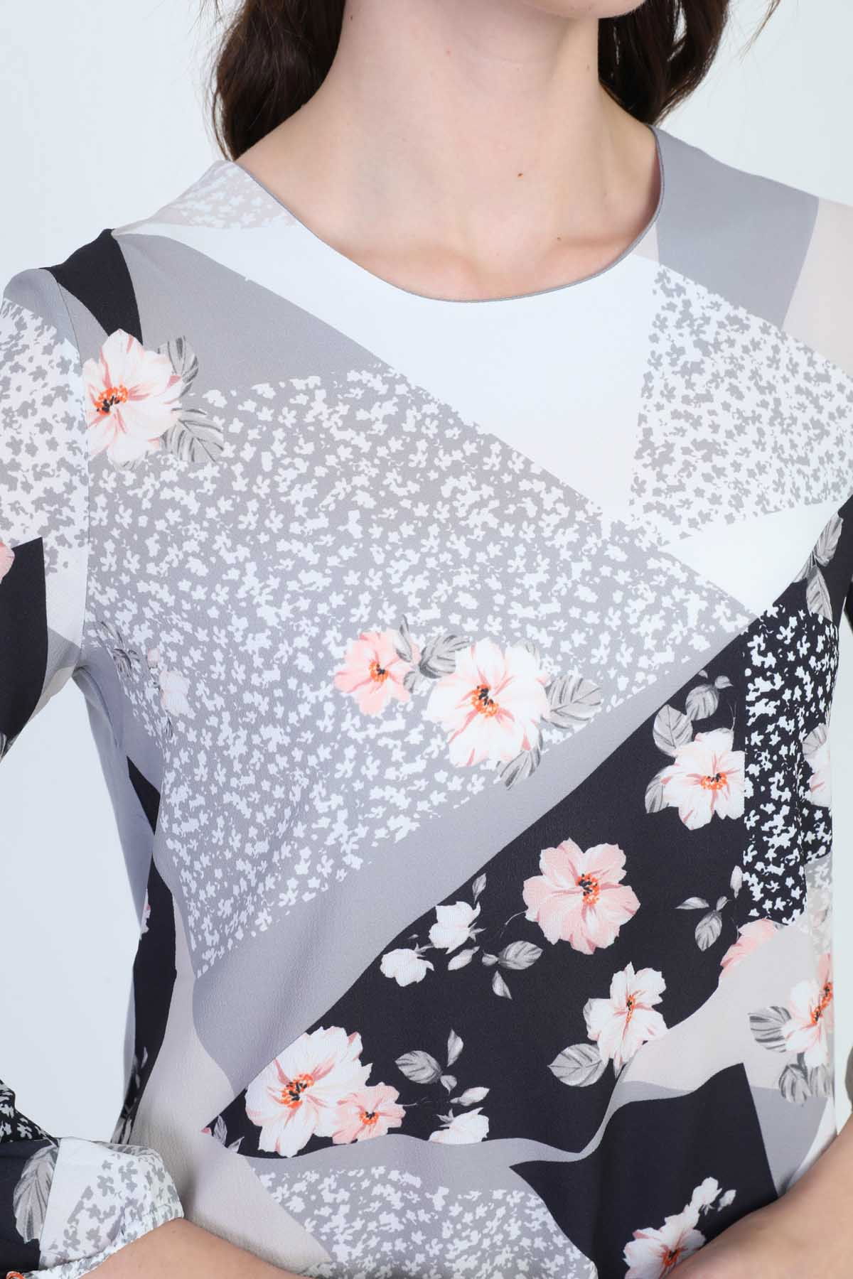 Kalıp Bilgisi: Standart; Detay: Uzun kollu, yuvarlak yaka, çiçek desenli bluz; Model Ölçüleri(cm) / Üzerindeki Ürün: Boy - 179, Göğüs - 89, Bel - 65, Kalça - 98 / 1 (M) Beden