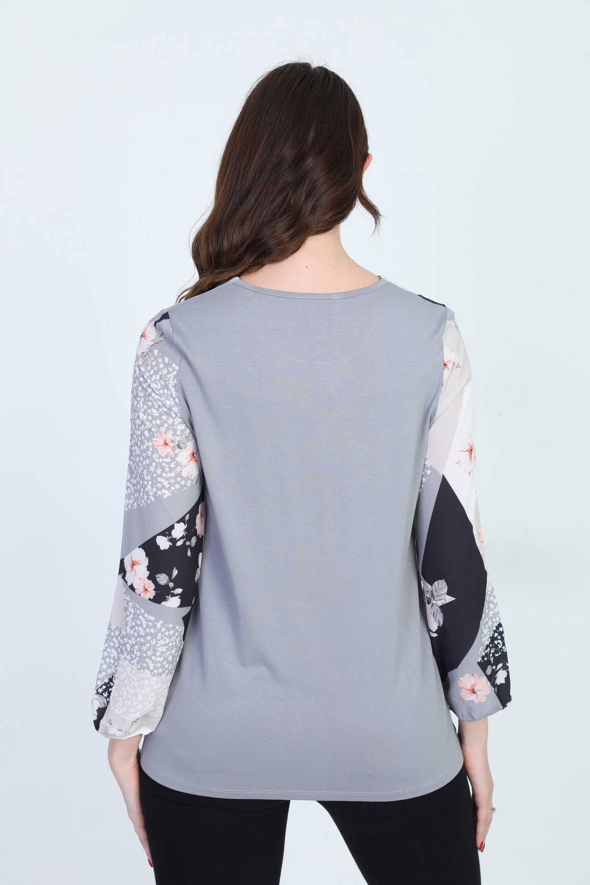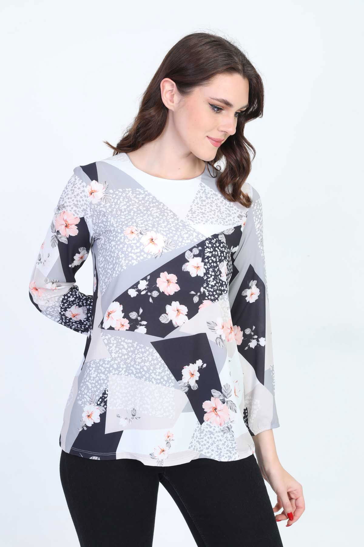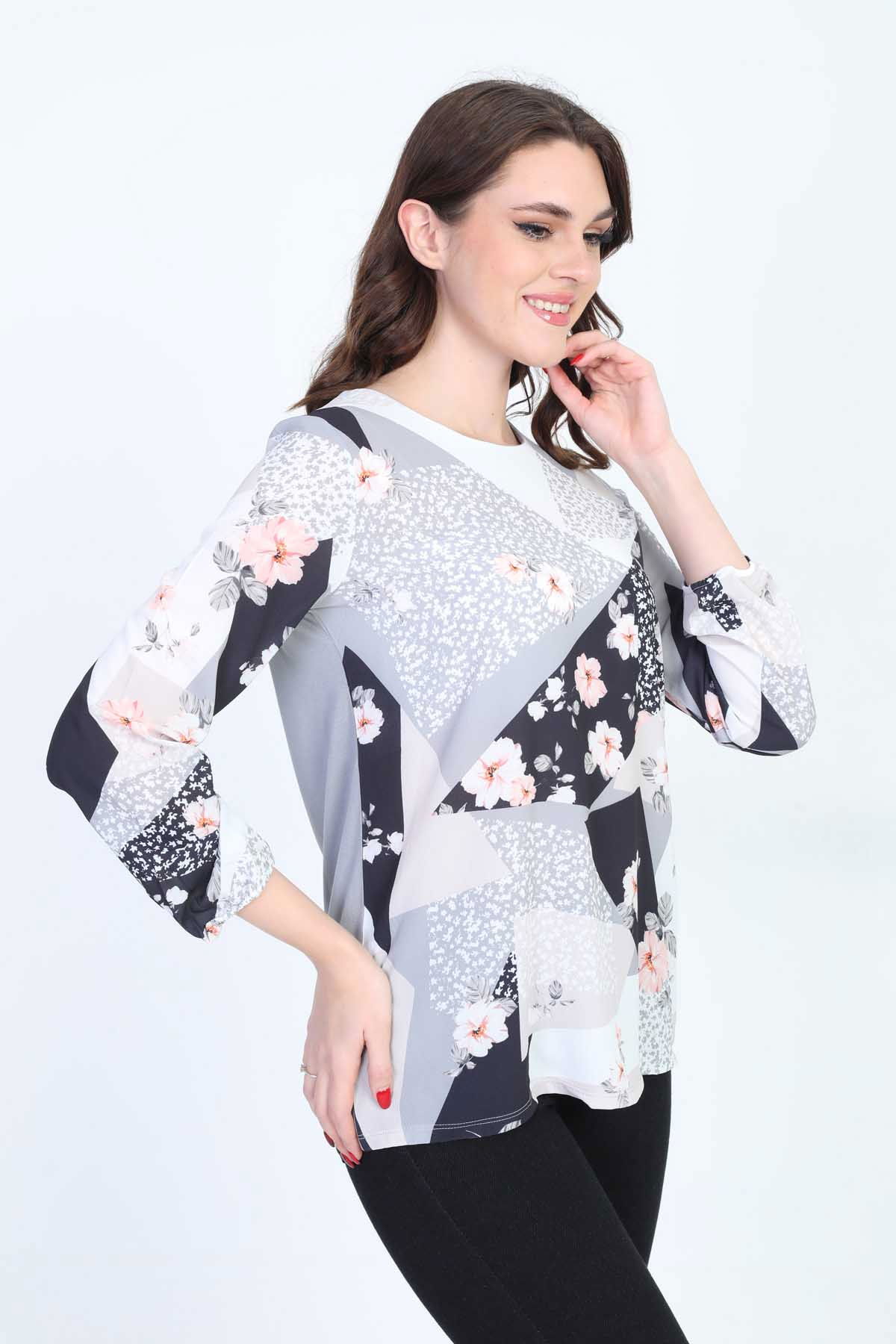 Kalıp Bilgisi: Standart; Detay: Uzun kollu, yuvarlak yaka, çiçek desenli bluz; Model Ölçüleri(cm) / Üzerindeki Ürün: Boy - 179, Göğüs - 89, Bel - 65, Kalça - 98 / 1 (M) Beden