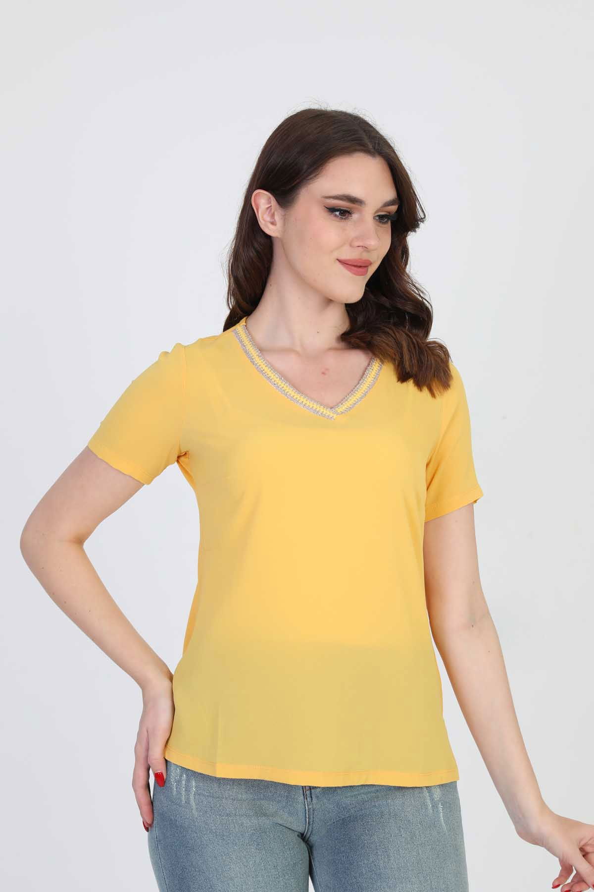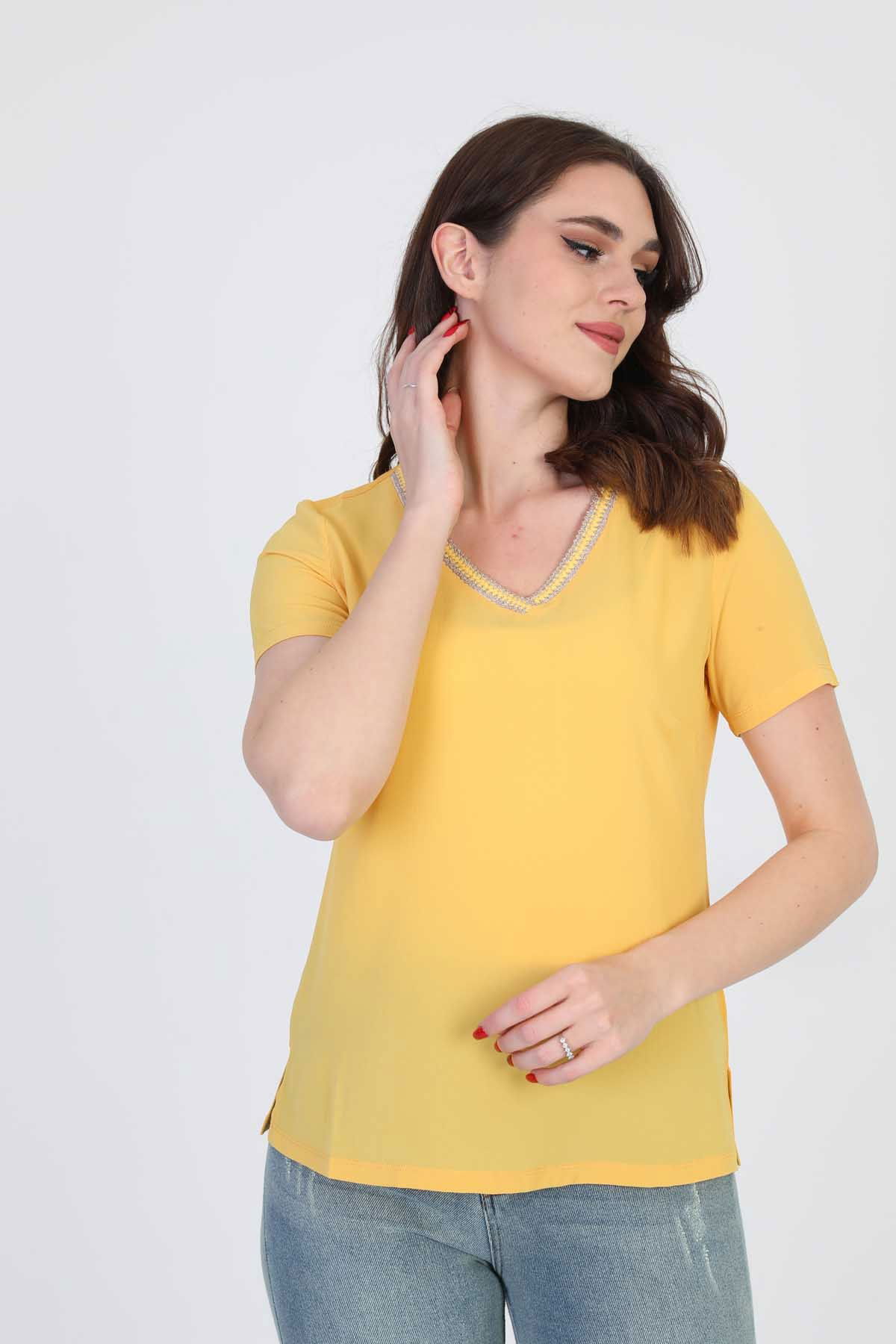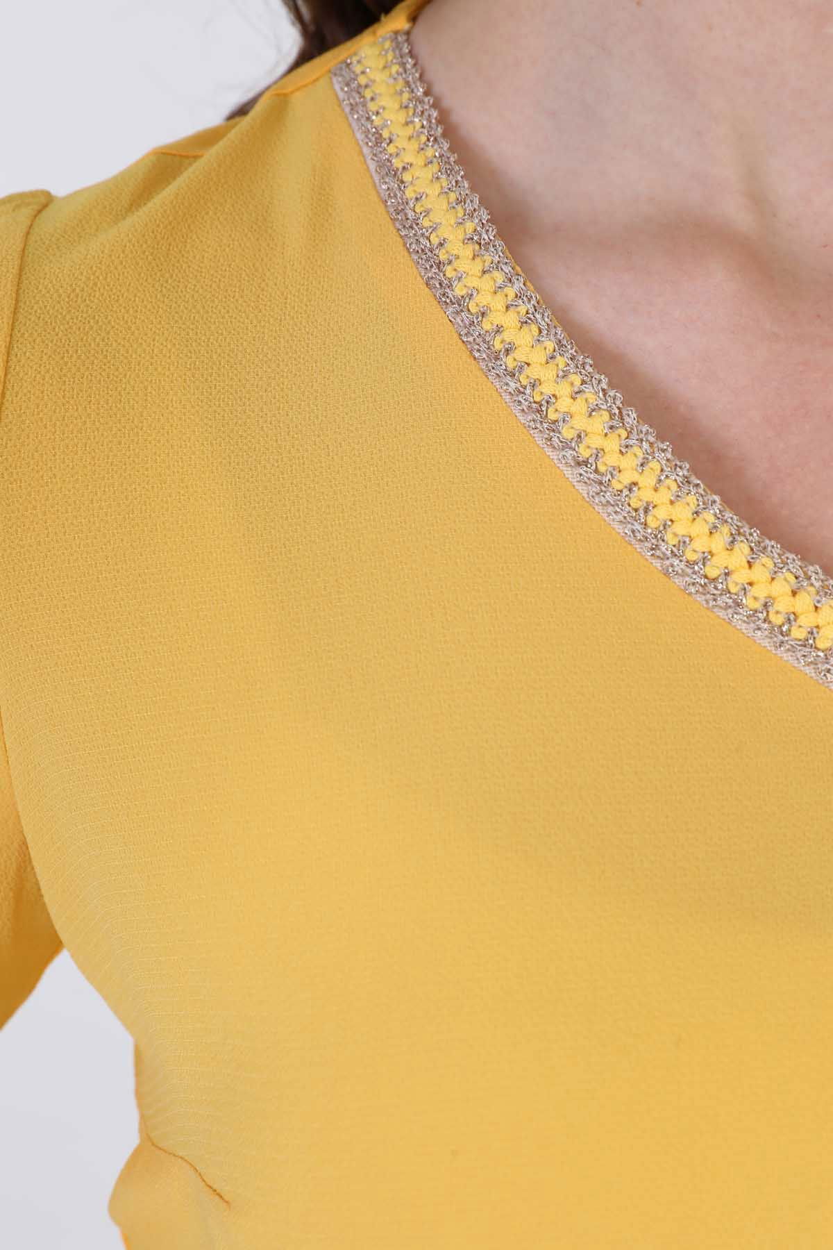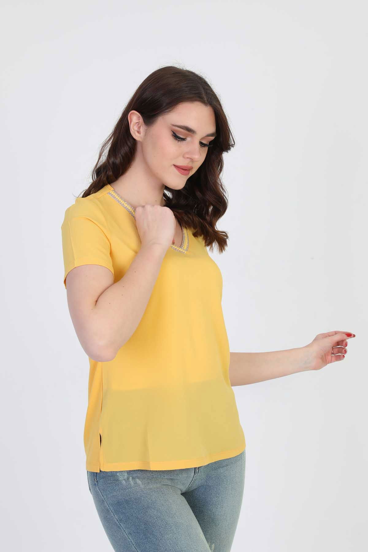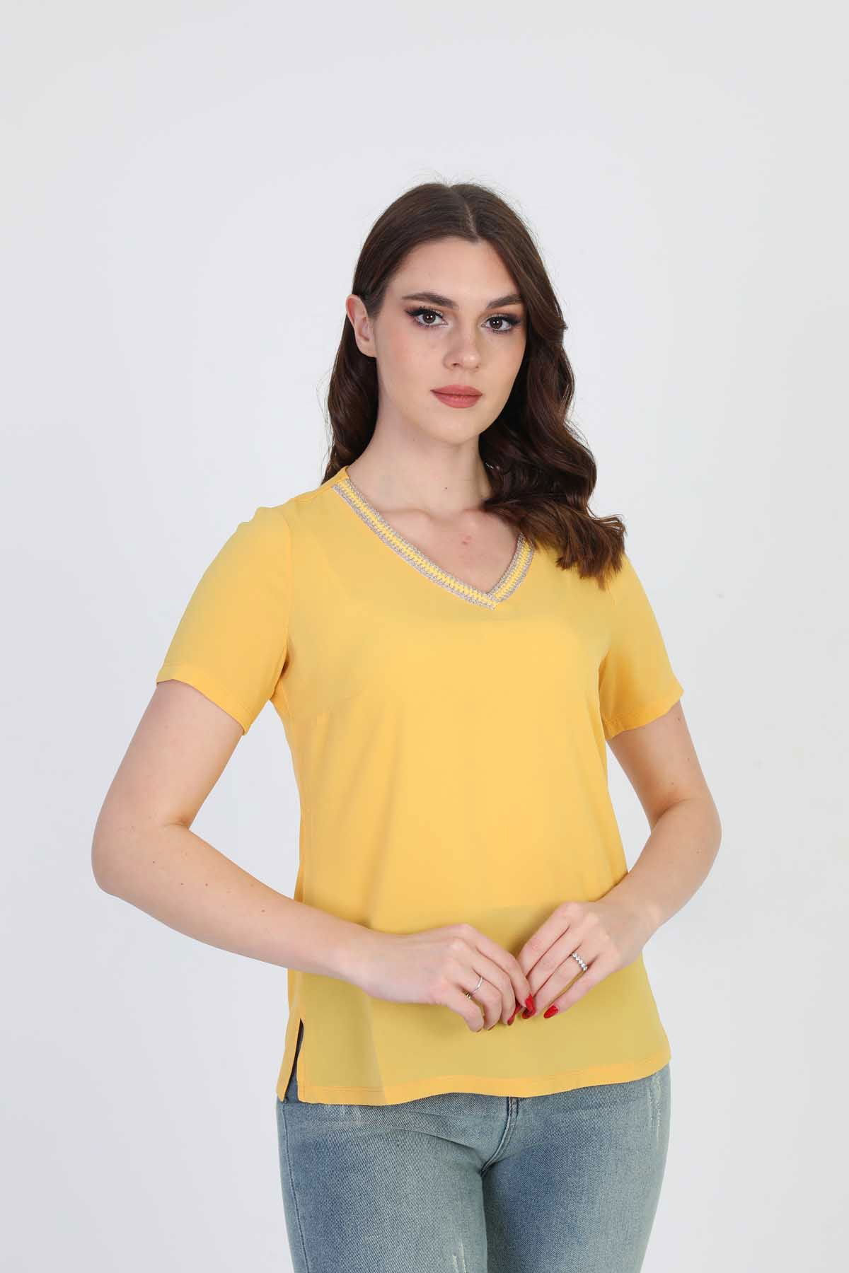 Ella Camelia Kadın Yaka İşlemeli Bluz 9E013 Sarı