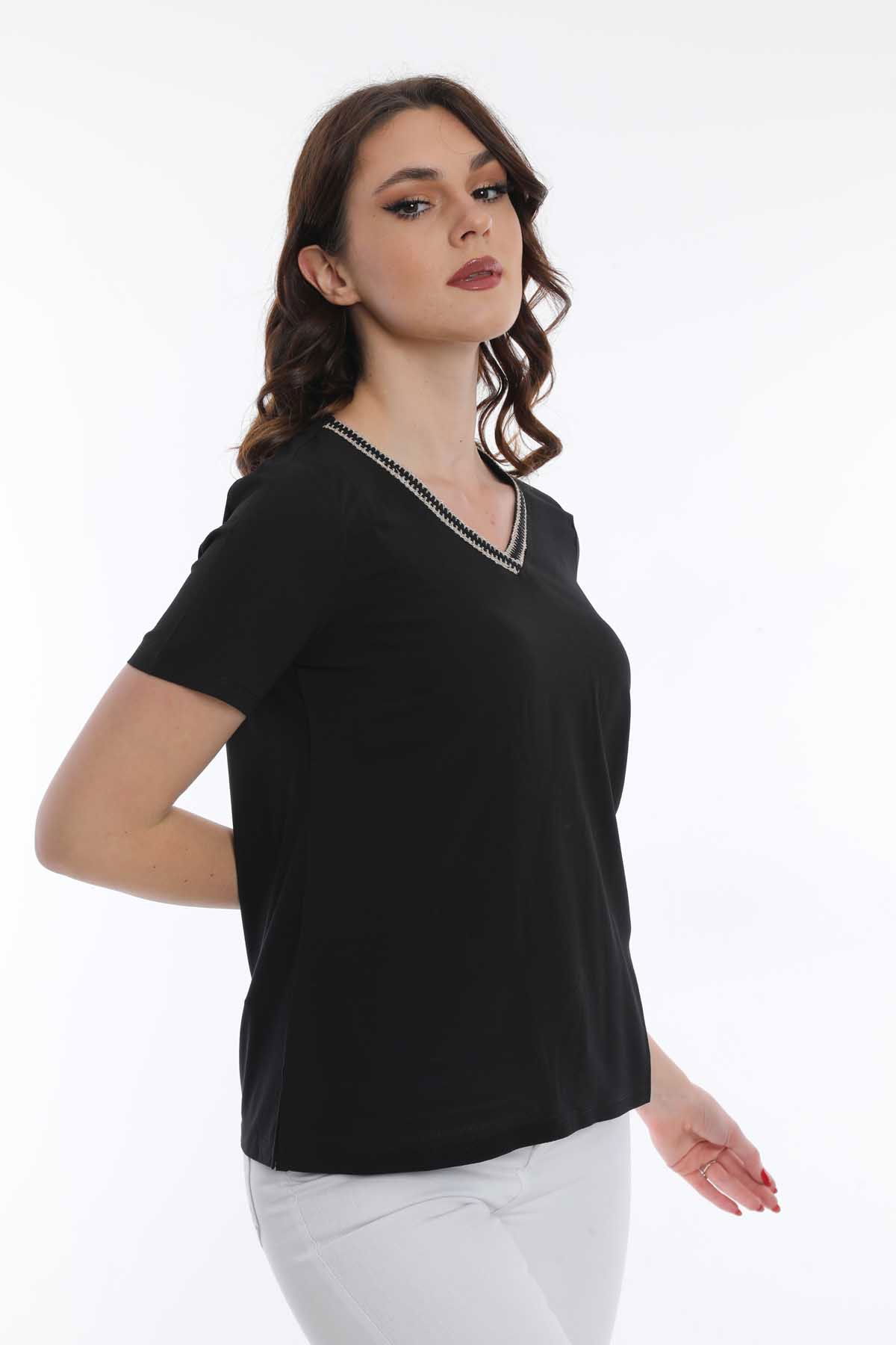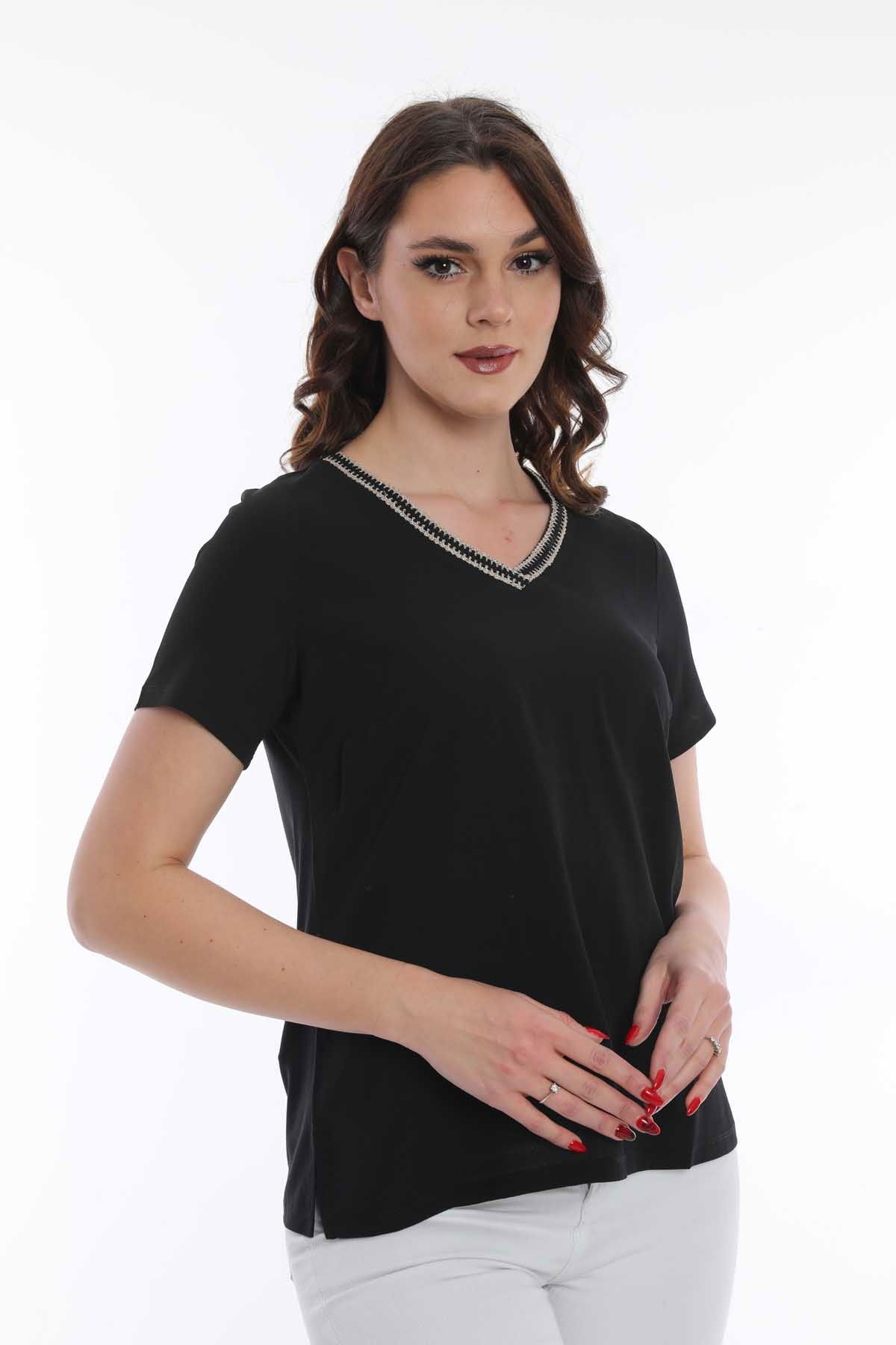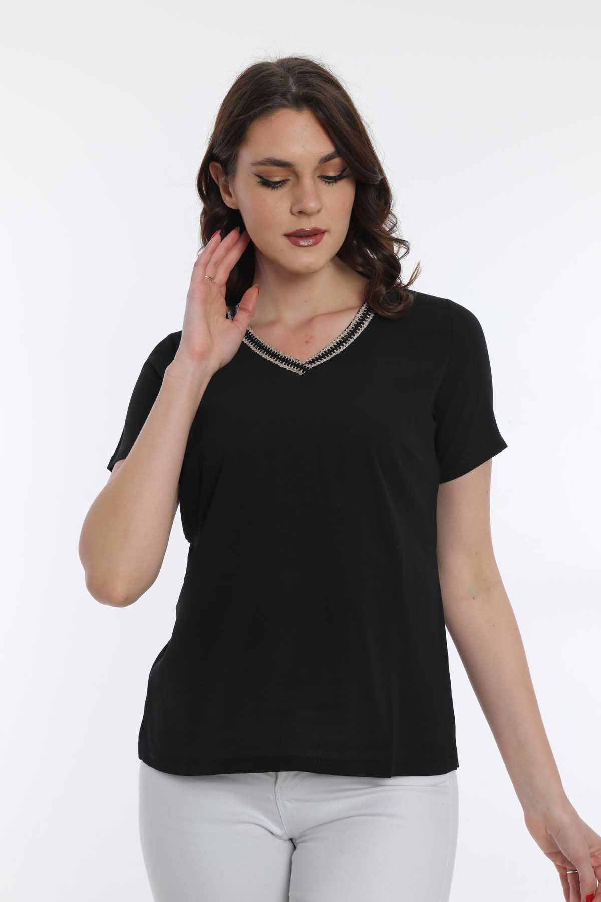 Ella Camelia Kadın Yaka İşlemeli Bluz 9E013 Siyah