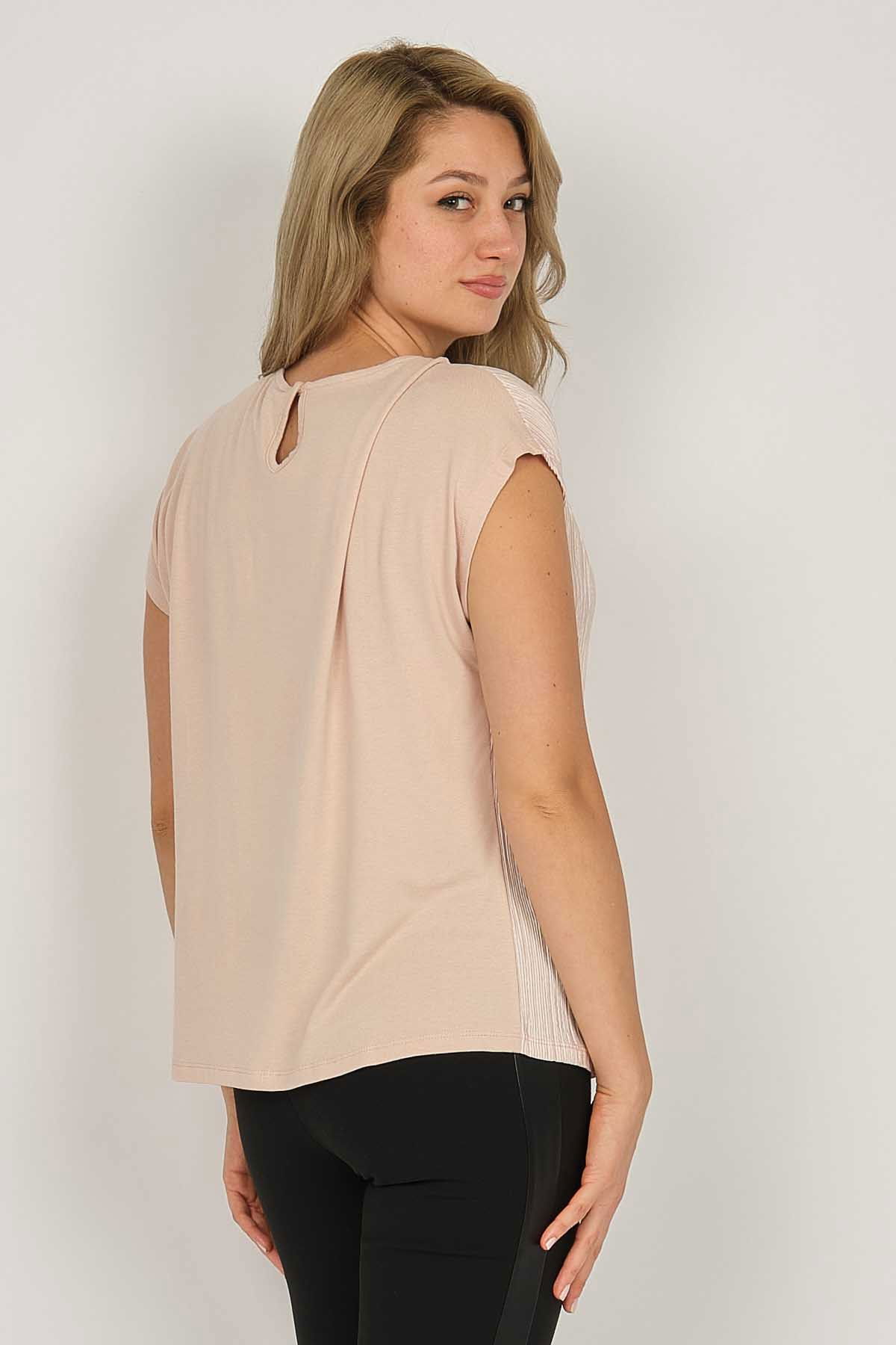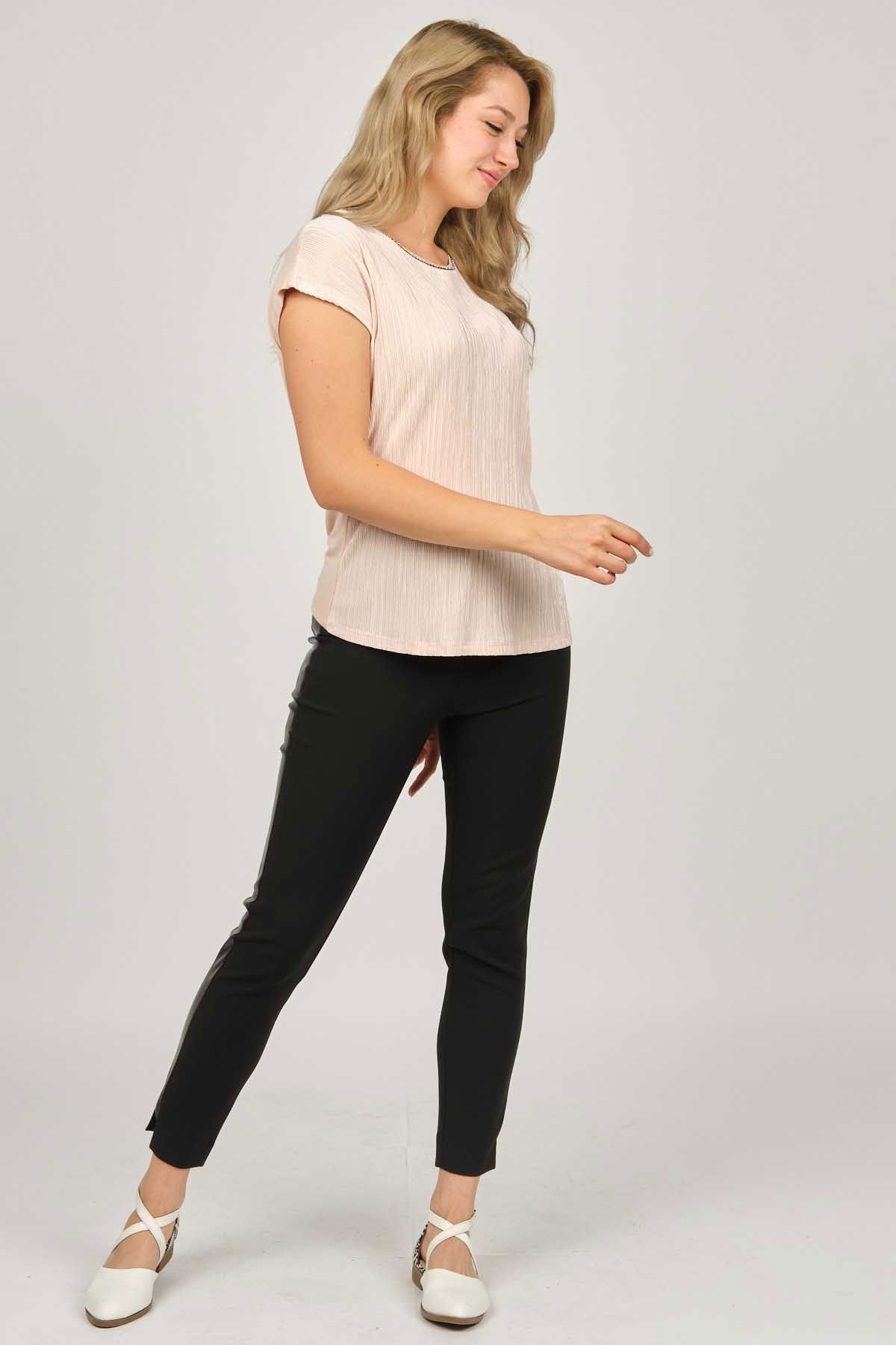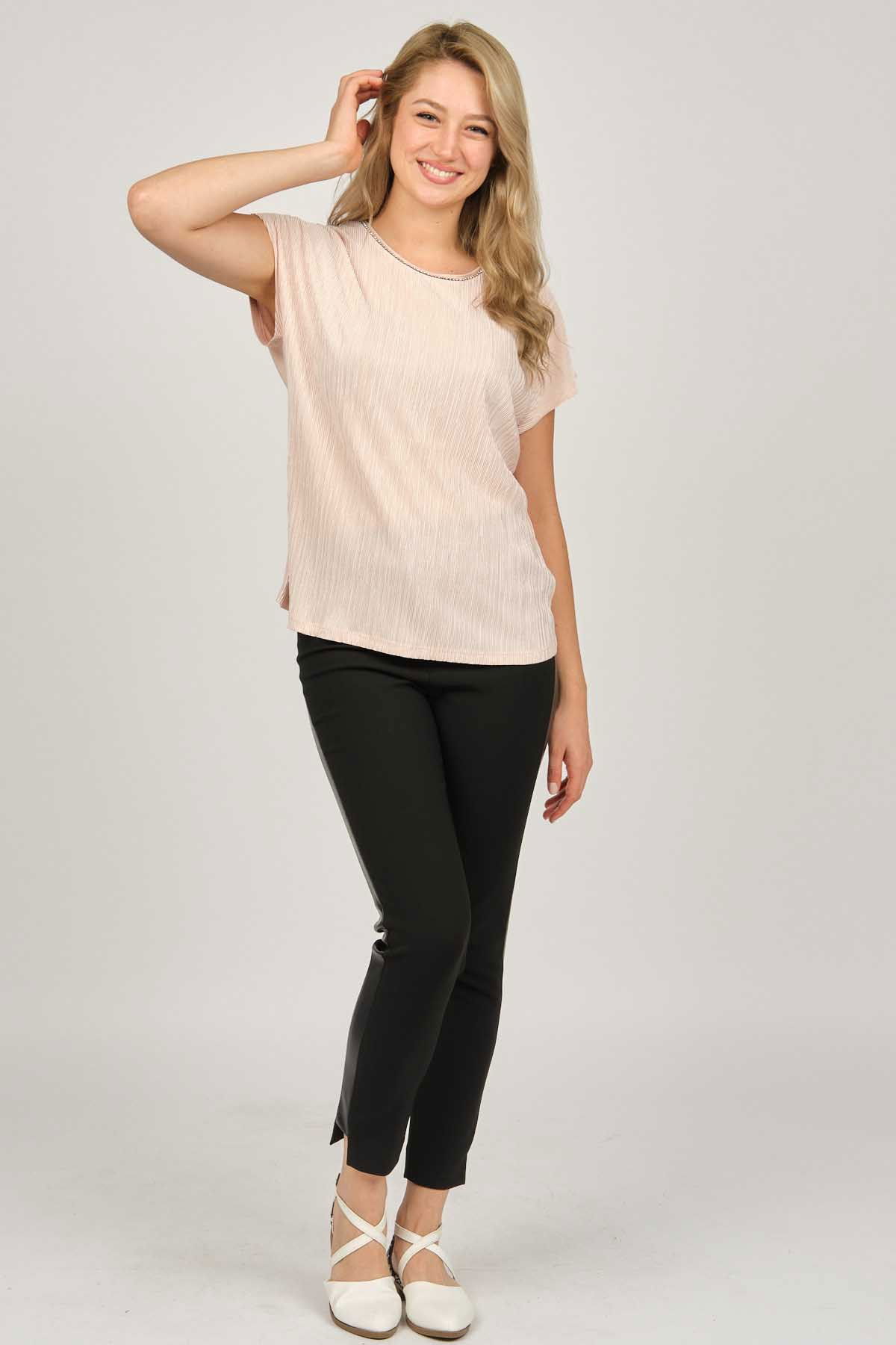 Ella Camelia Kadın Yakası Taş Detaylı Desenli Bluz 19E070 Pudra