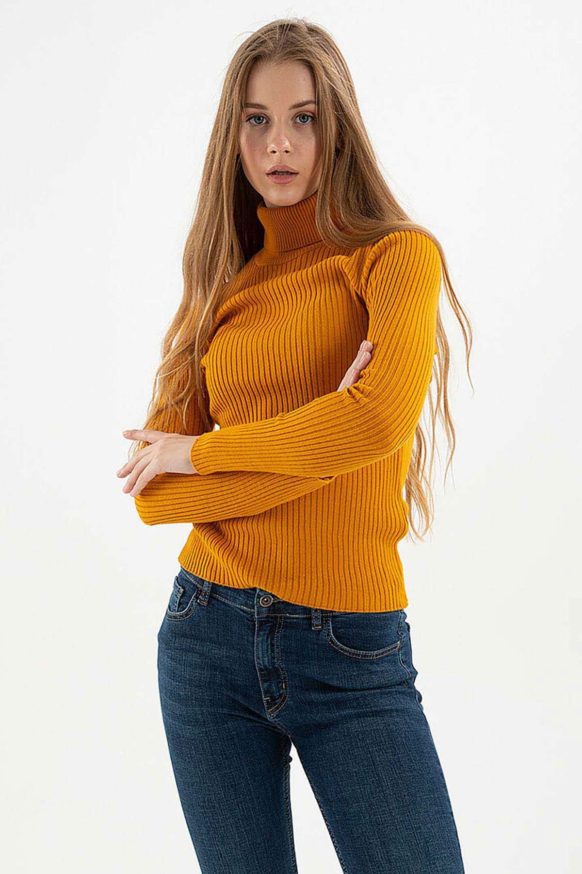 Fashion Friends Kadın Fitilli Balıkçı Yaka Kazak 23K0288K1 Hardal