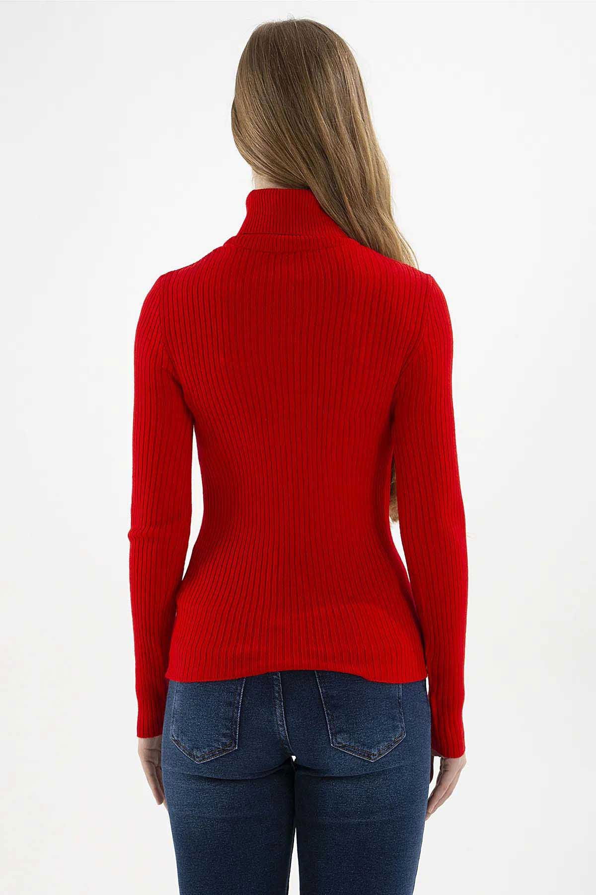 Fashion Friends Kadın Fitilli Balıkçı Yaka Kazak 23K0288K1 Kırmızı