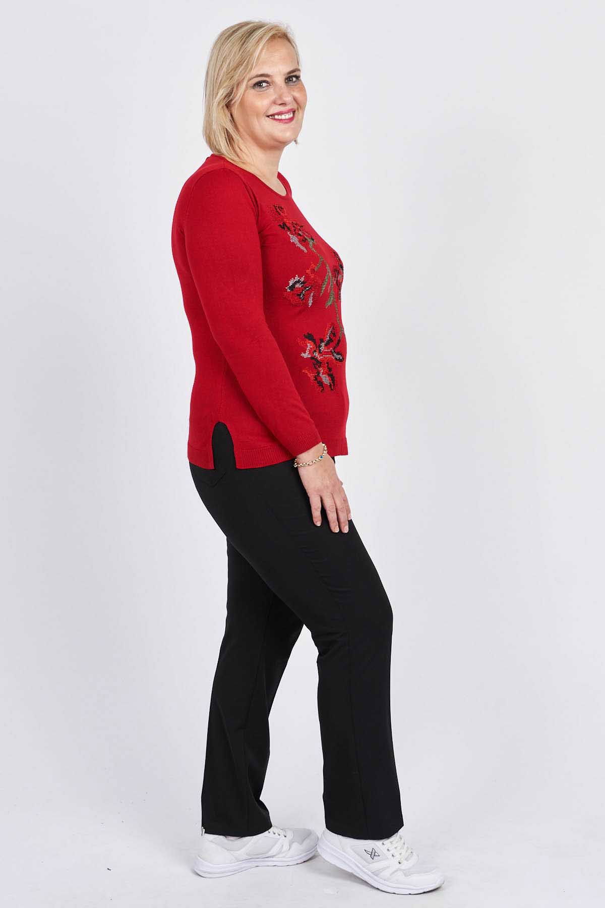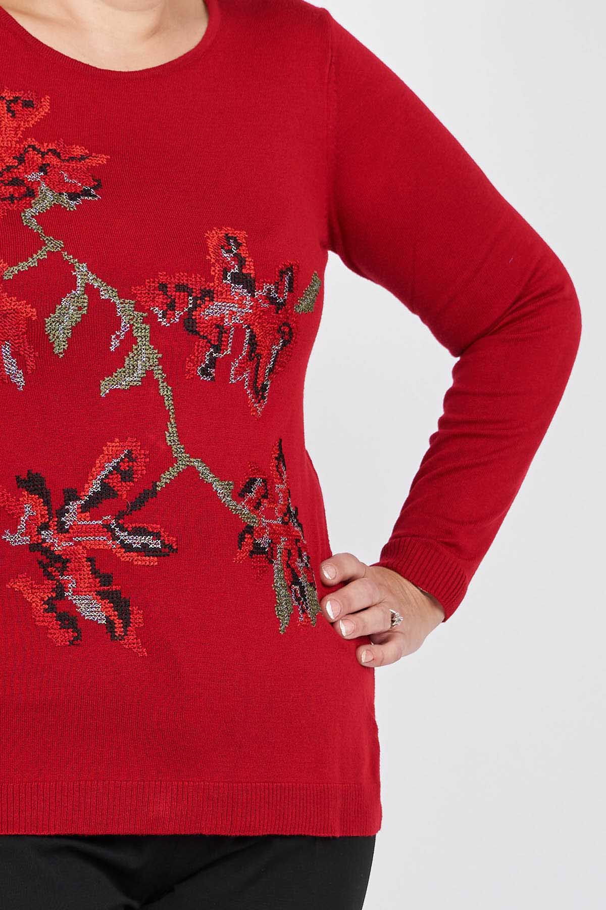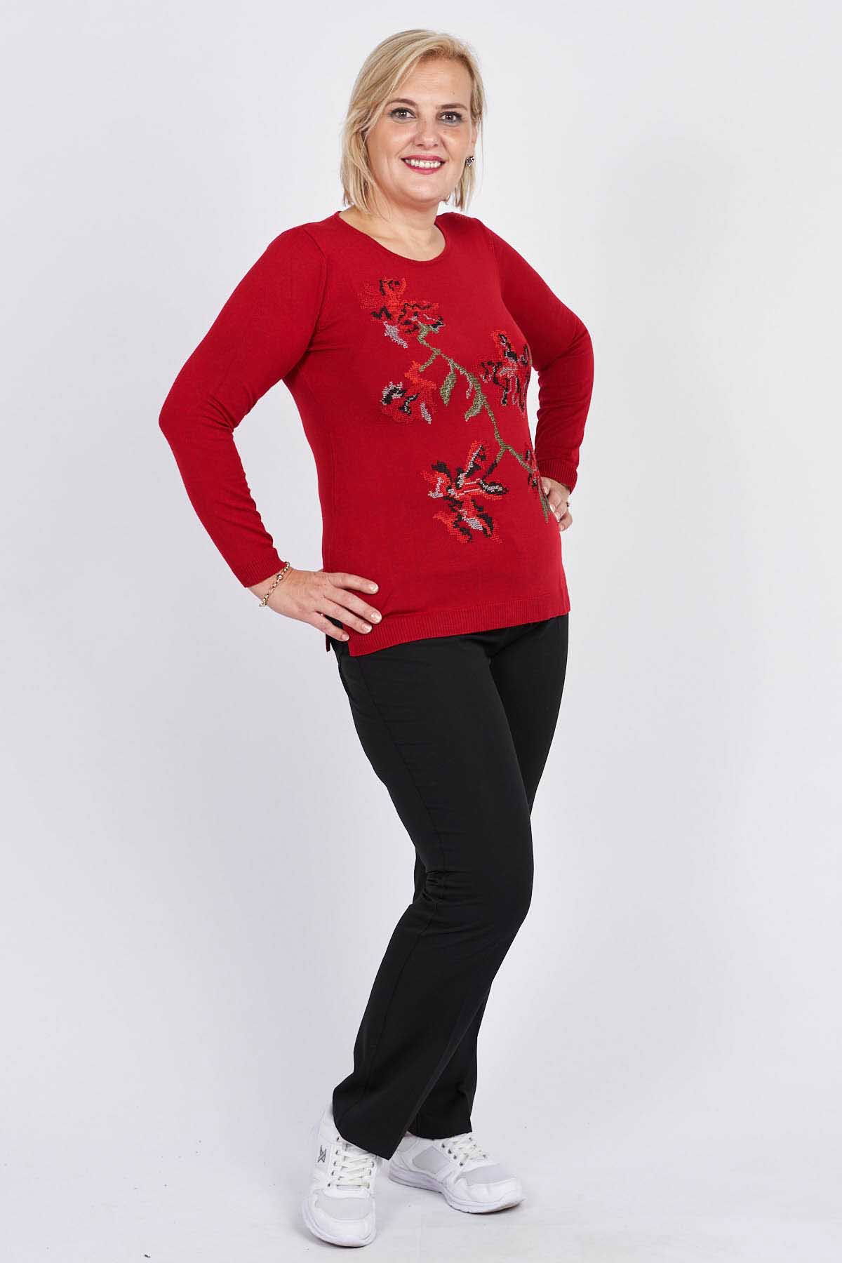 Detay: Önü Çiçek Nakış Detaylı, Uzun Kollu, Yuvarlak Yaka Bluz;
