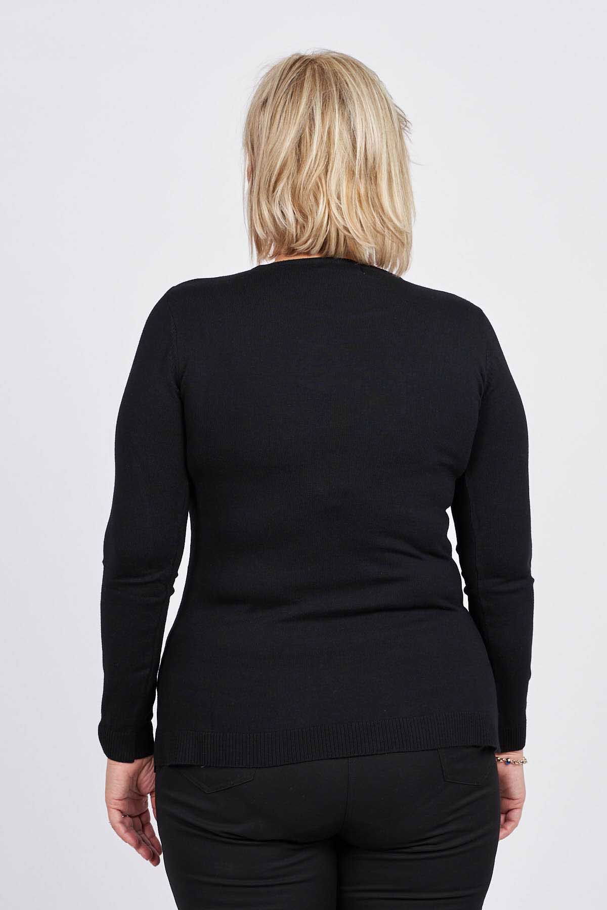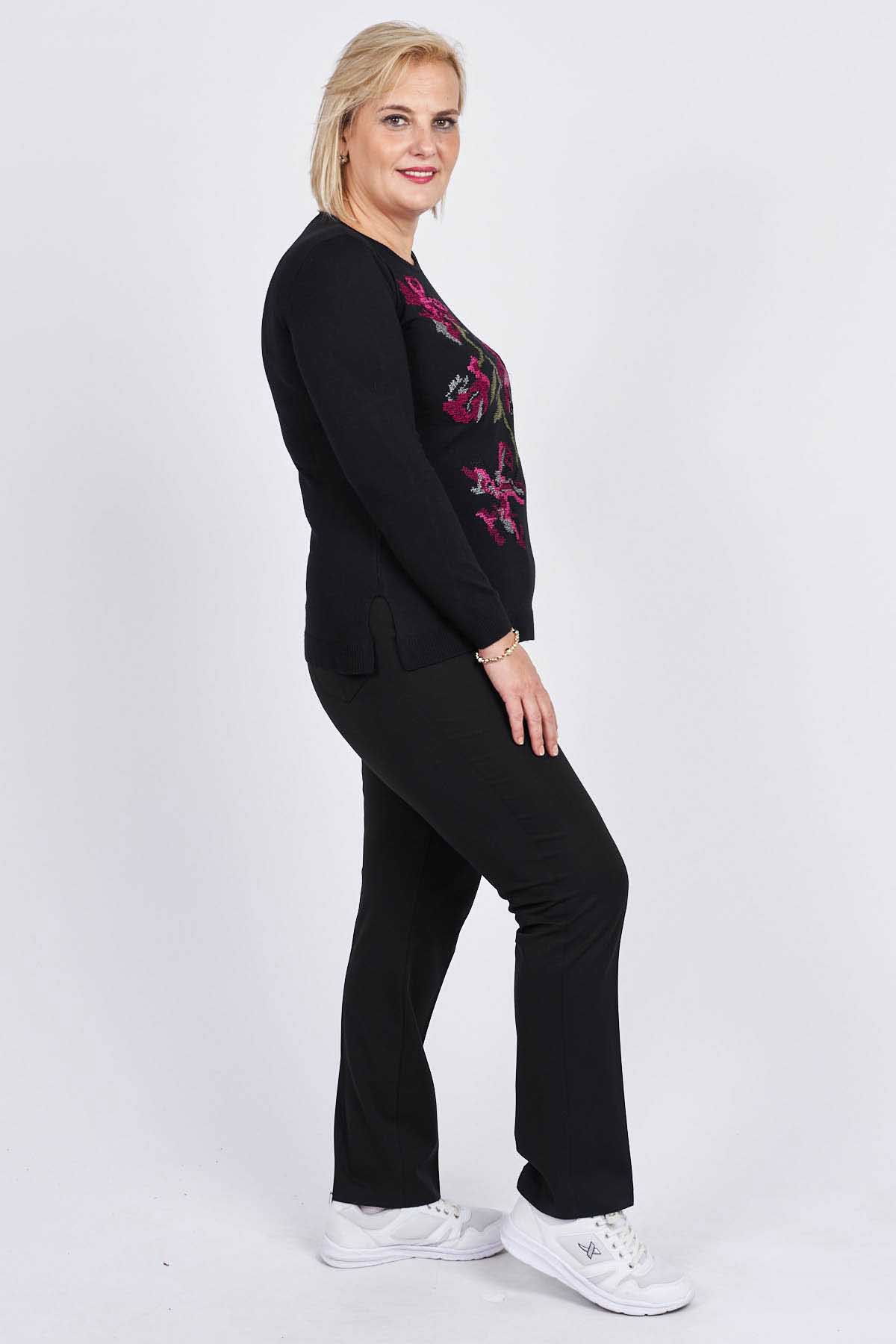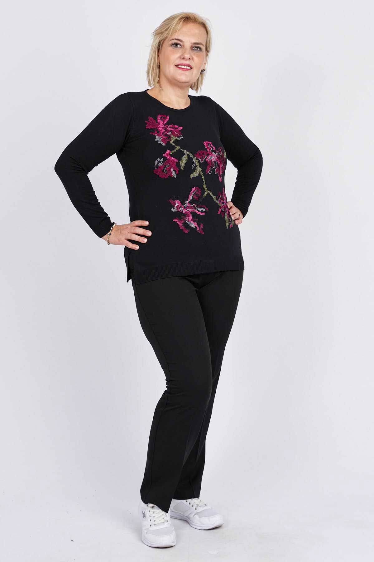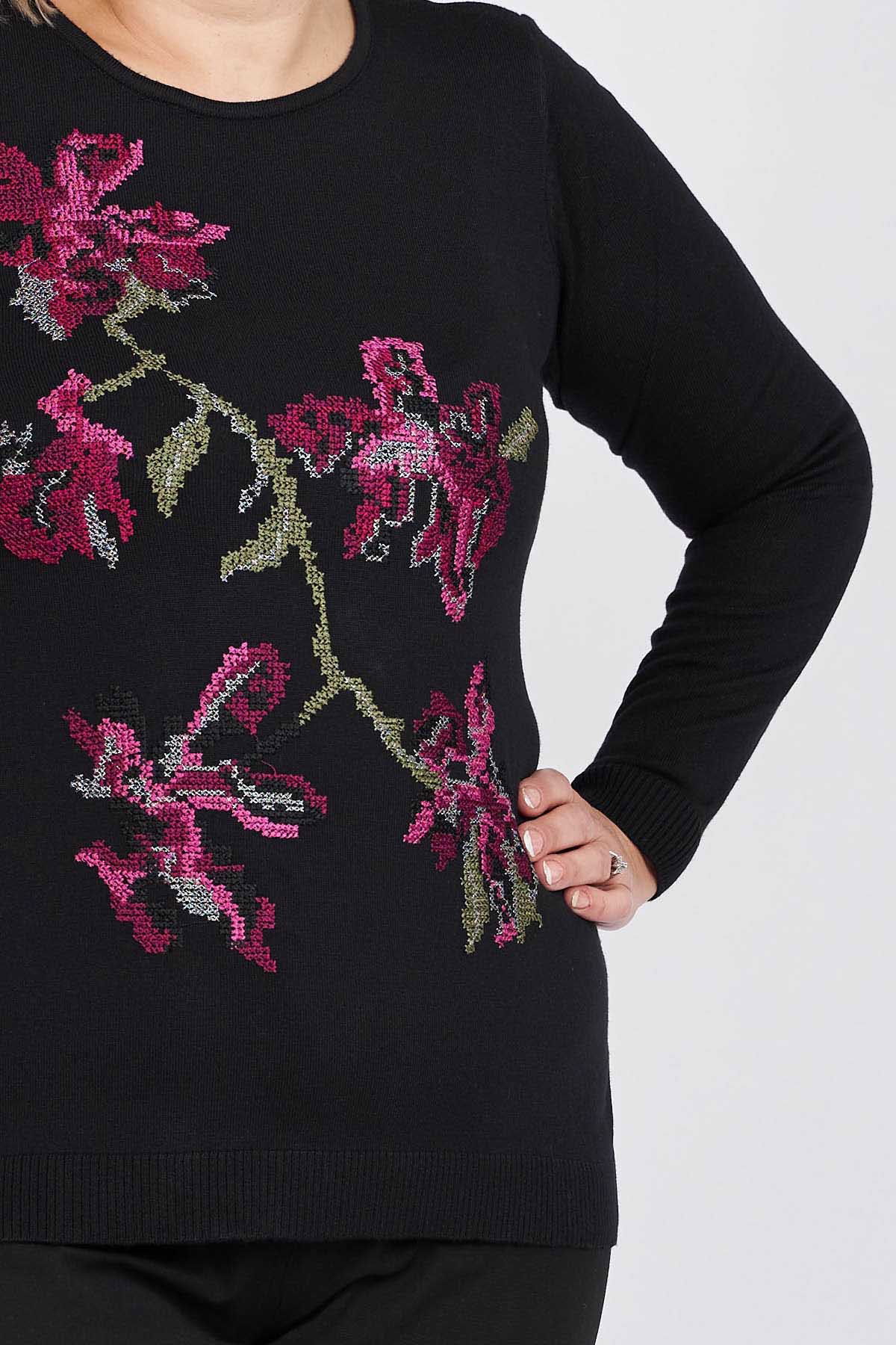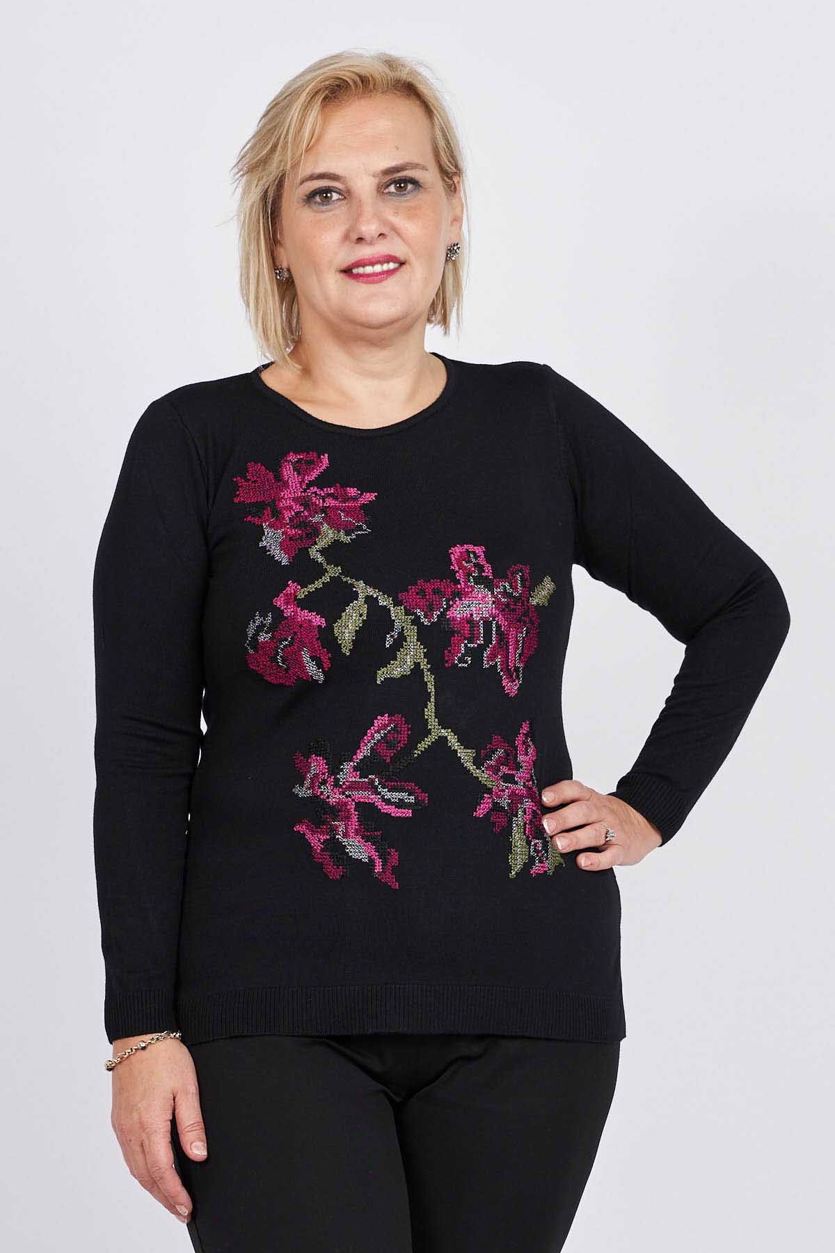Flaş Triko Kadın Çiçekli Nakış Detaylı Bluz 3320806 Siyah
