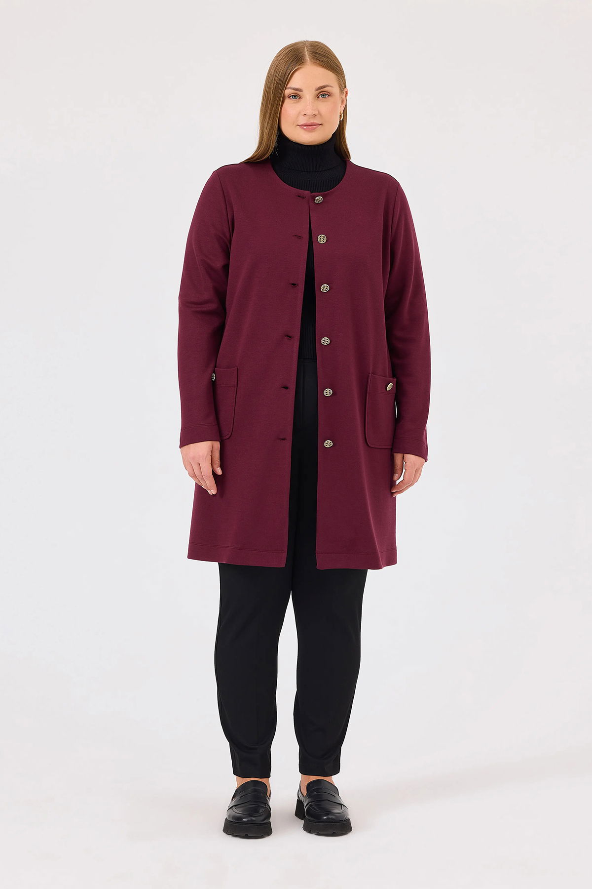 Model Ölçüleri(cm) / Üzerindeki Ürün: Boy - 176, Göğüs - 104, Bel – 81, Basen - 109 / 44 beden;