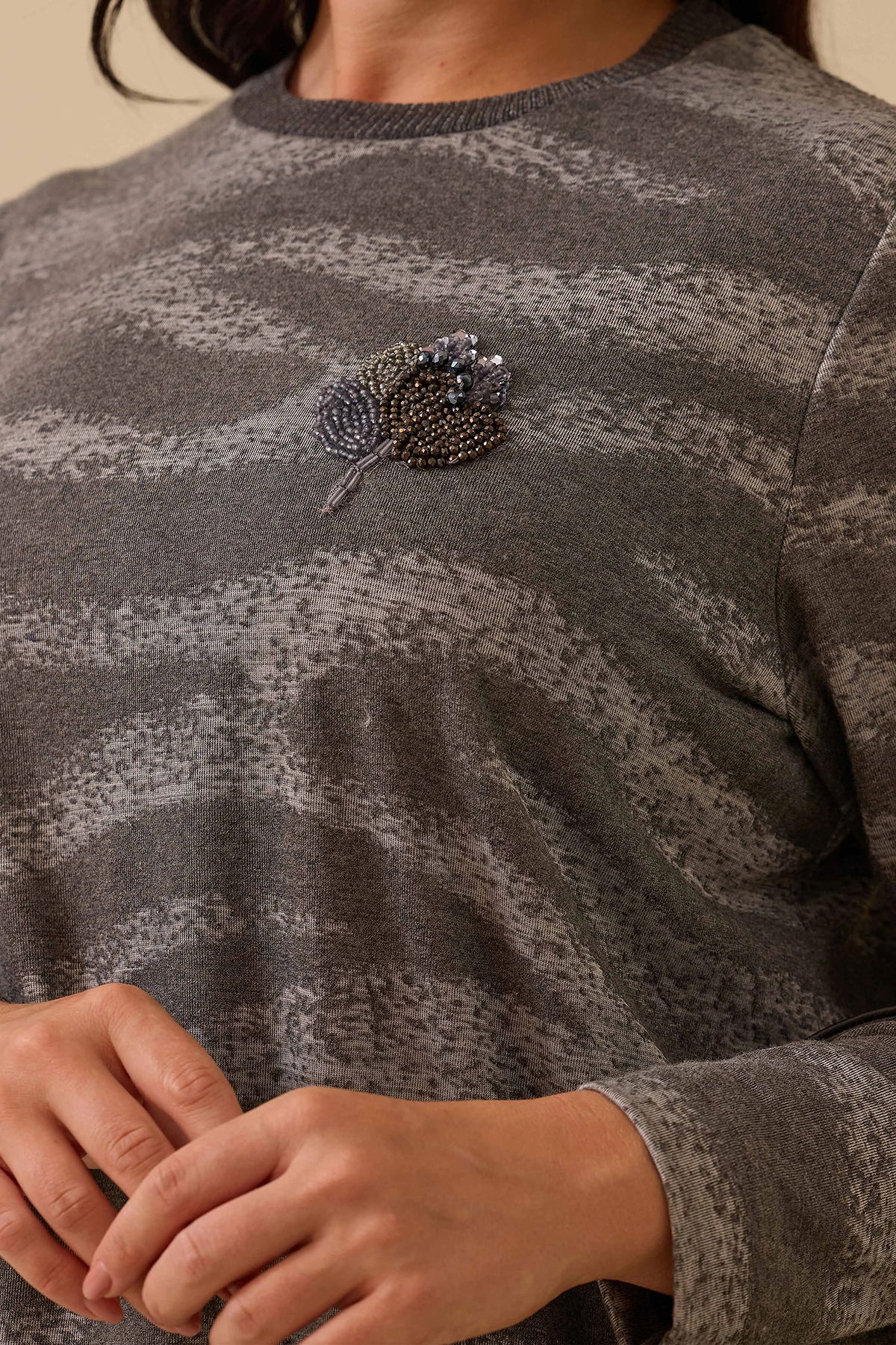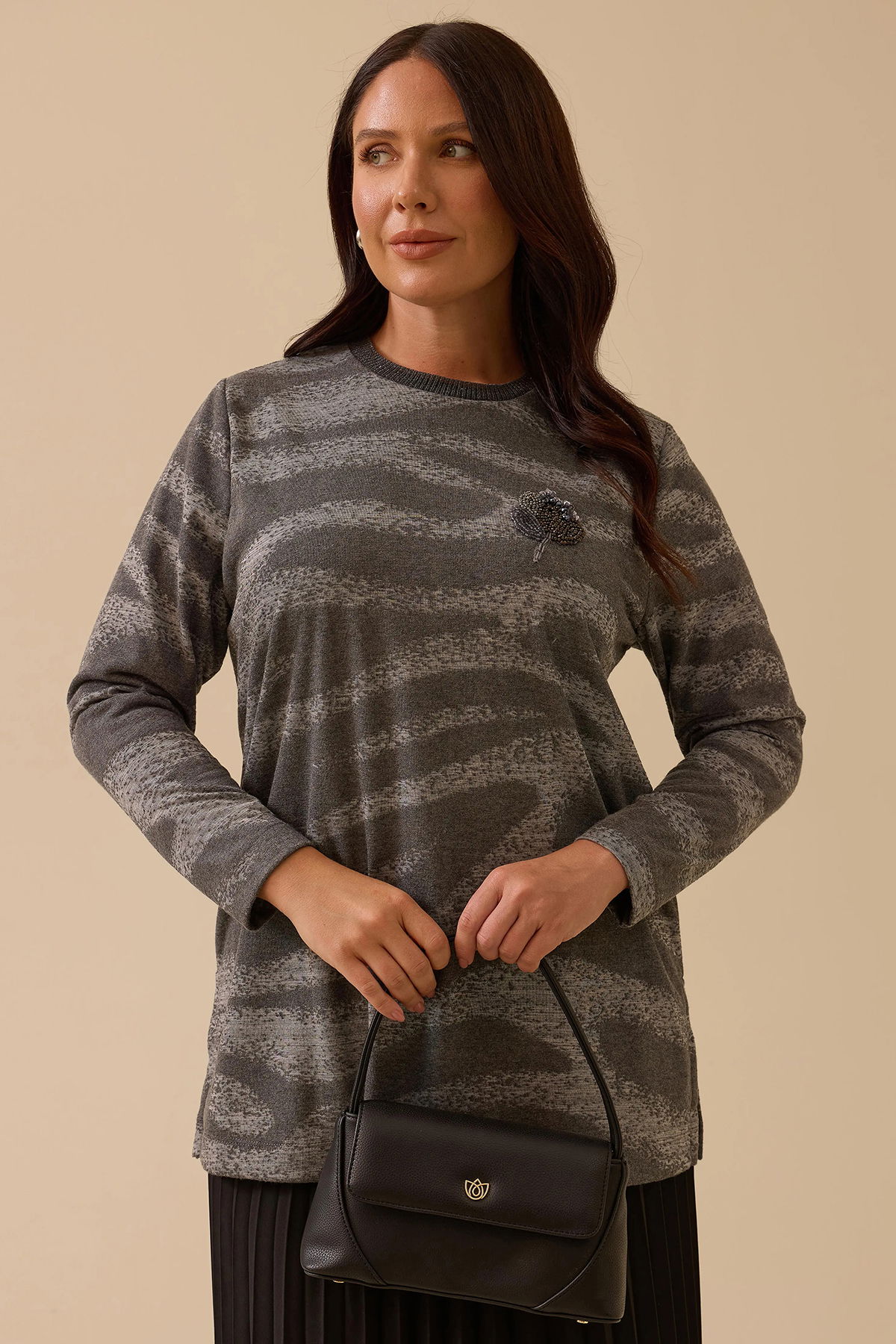 Detay: Desenli triko örme kumaştan üretilmiş bu relax fit bluz, basen boyu ve sıfır yaka tasarımıyla sade ve modern bir görünüm sunuyor. Takma kol yapısı ve uzun kol boyuyla mevsim geçişlerinde konforlu bir kullanım sağlarken, taş aksesuar detayıyla şıklığı zarif bir dokunuşla tamamlıyor. Astarsız yapısı sayesinde hafiflik sunan bu model, günlük stilinizde hem rahat hem de stil sahibi bir alternatif oluşturuyor;