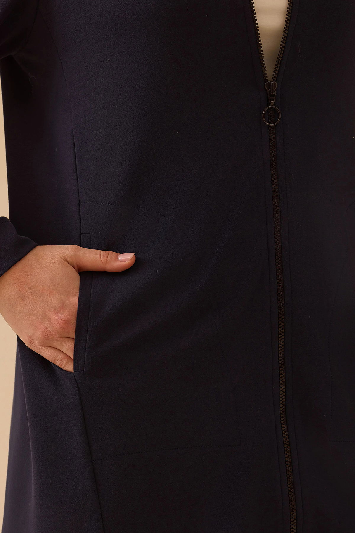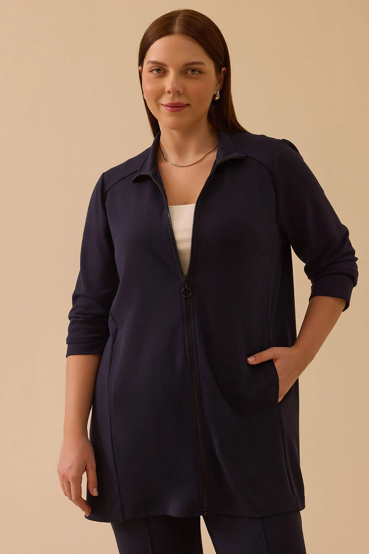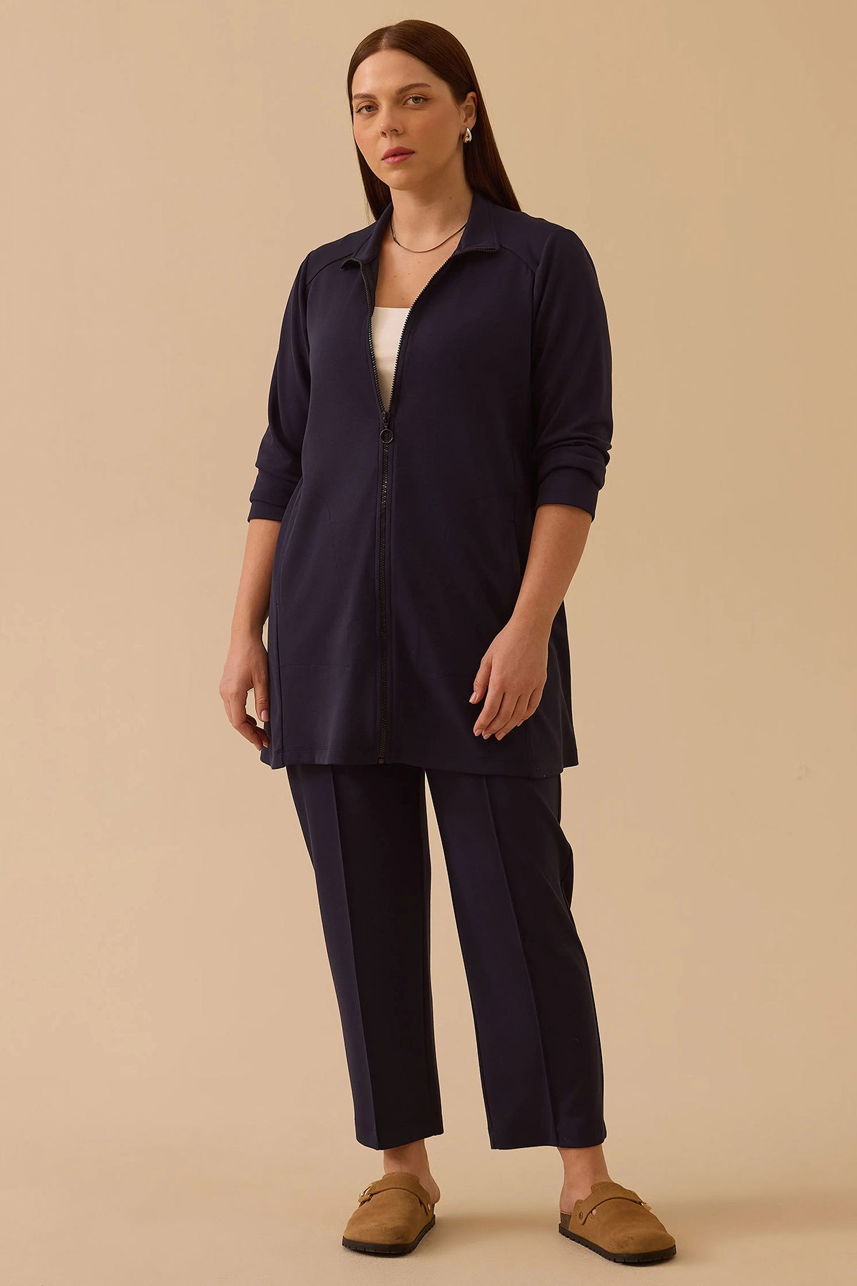 Detay: Örme kumaştan üretilen bu kap, klasik regular kesimi ve basen altı boyuyla günlük spor şıklığı yansıtırken dik yaka tasarımıyla modern bir görünüm sergiliyor. Uzun takma kollar ve düz kumaş özelliği rahat bir kullanım sağlarken, robalı bel detayı zarif bir duruş kazandırıyor. Fermuarlı kapama, cepli tasarım ve astarsız yapısı sayesinde fonksiyonel ve hafif bir kullanım sunan bu kap, spor tarzınızı tamamlayan şık bir seçenek oluyor;