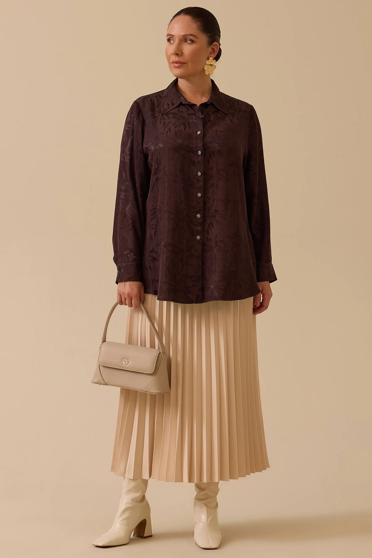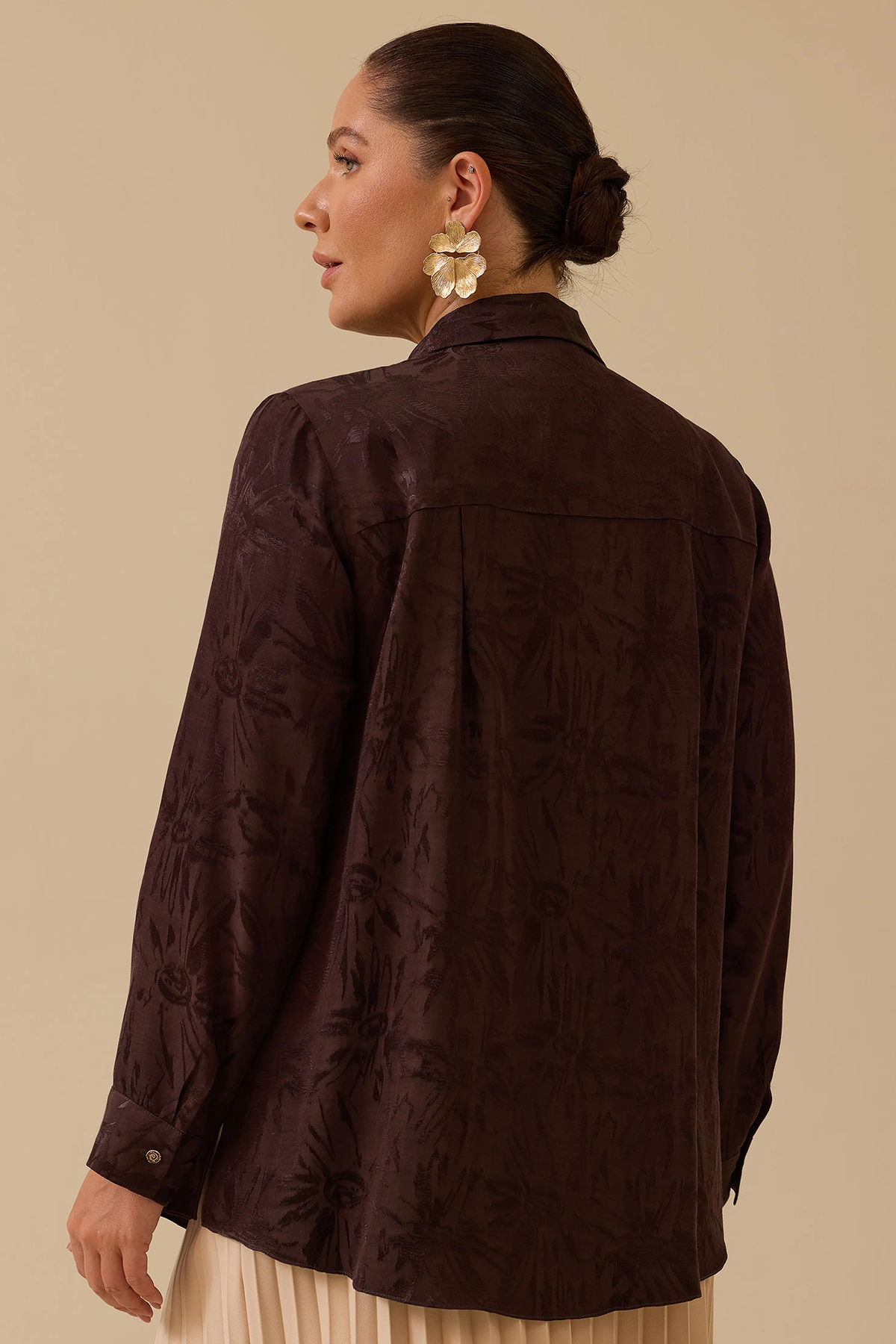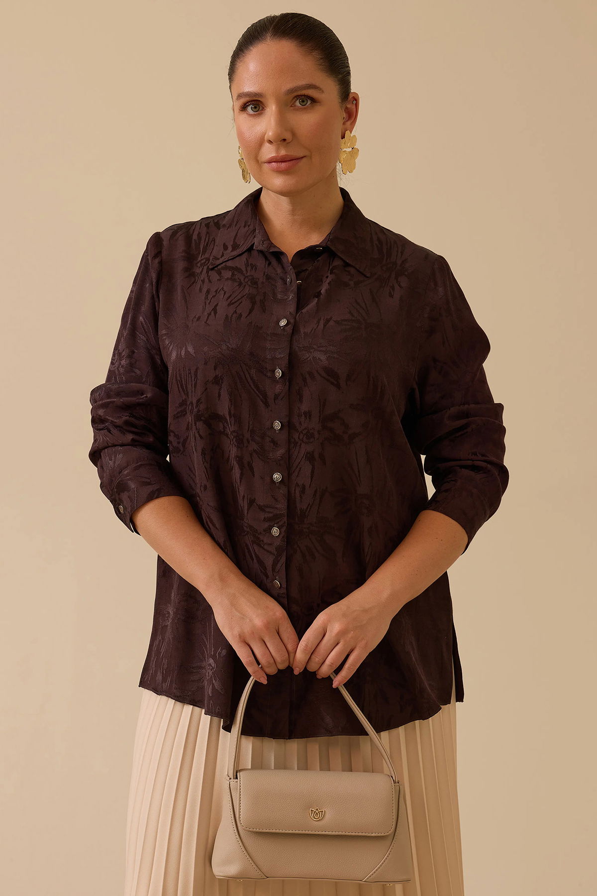 Detay: Çiçek desenli jakar dokuma kumaştan üretilmiş bu relax kesim gömlek, basen altı boyu ve uzun kol tasarımıyla zarif bir siluet sunuyor. Gömlek yaka detayıyla klasik şıklığı yansıtan model, düğmeli kapama özelliği sayesinde hem estetik hem de pratik bir kullanım sağlıyor. Şık tarzıyla günlük kombinlerden özel davetlere kadar stil sahibi bir görünüm arayanlar için ideal bir tercih oluyor;