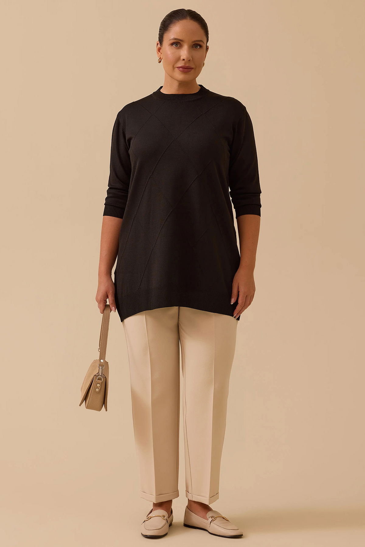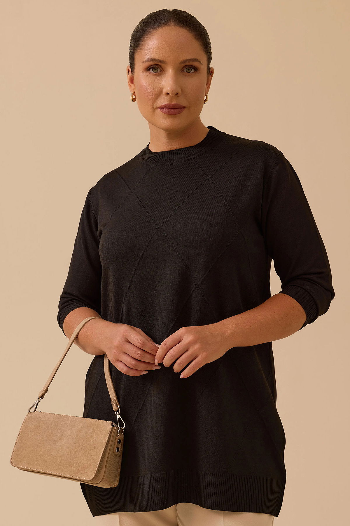 Galaxi Kadın Büyük Beden Desenli Basic Triko Tunik 4008 Siyah