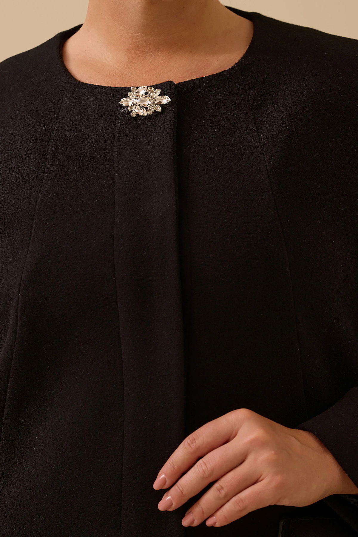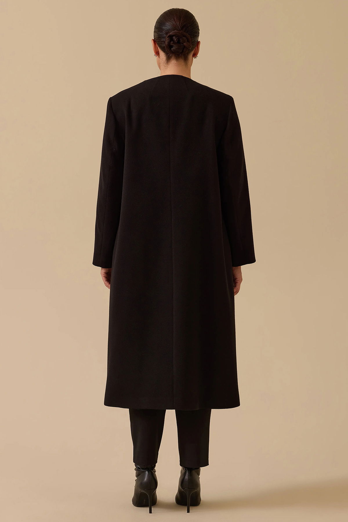 Detay: Bu kaban modeli, düz dokuma kaşe kumaşıyla hem sıcak tutar hem de şık bir görünüm sunar. Regular kesimi ve diz altı boyuyla klasik bir siluet oluşturur. Sıfır yaka ve takma uzun kol detayı sade bir duruş kazandırır. Çıt çıtlı kapama ve aksesuar detaylarıyla modern bir dokunuş sunar;