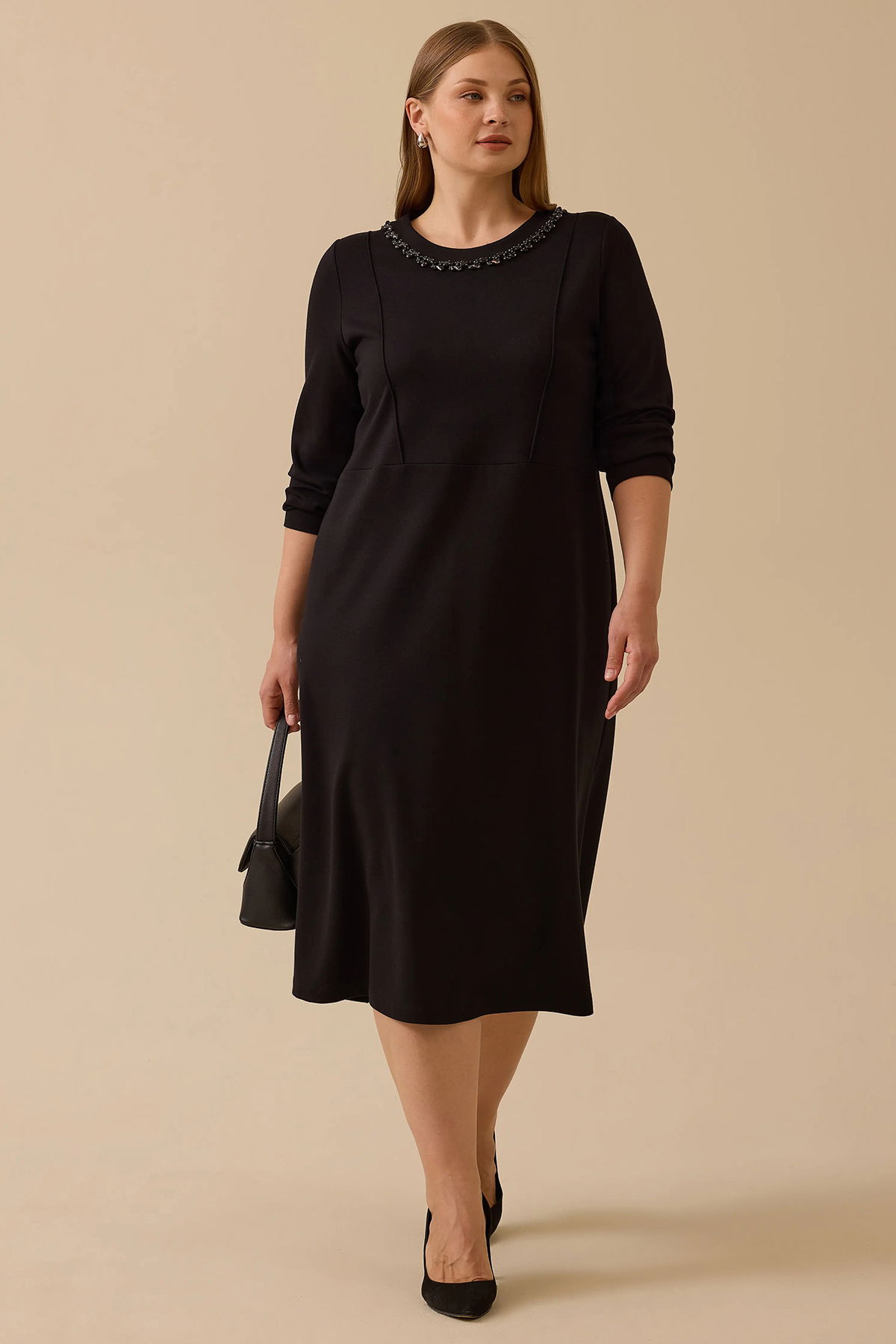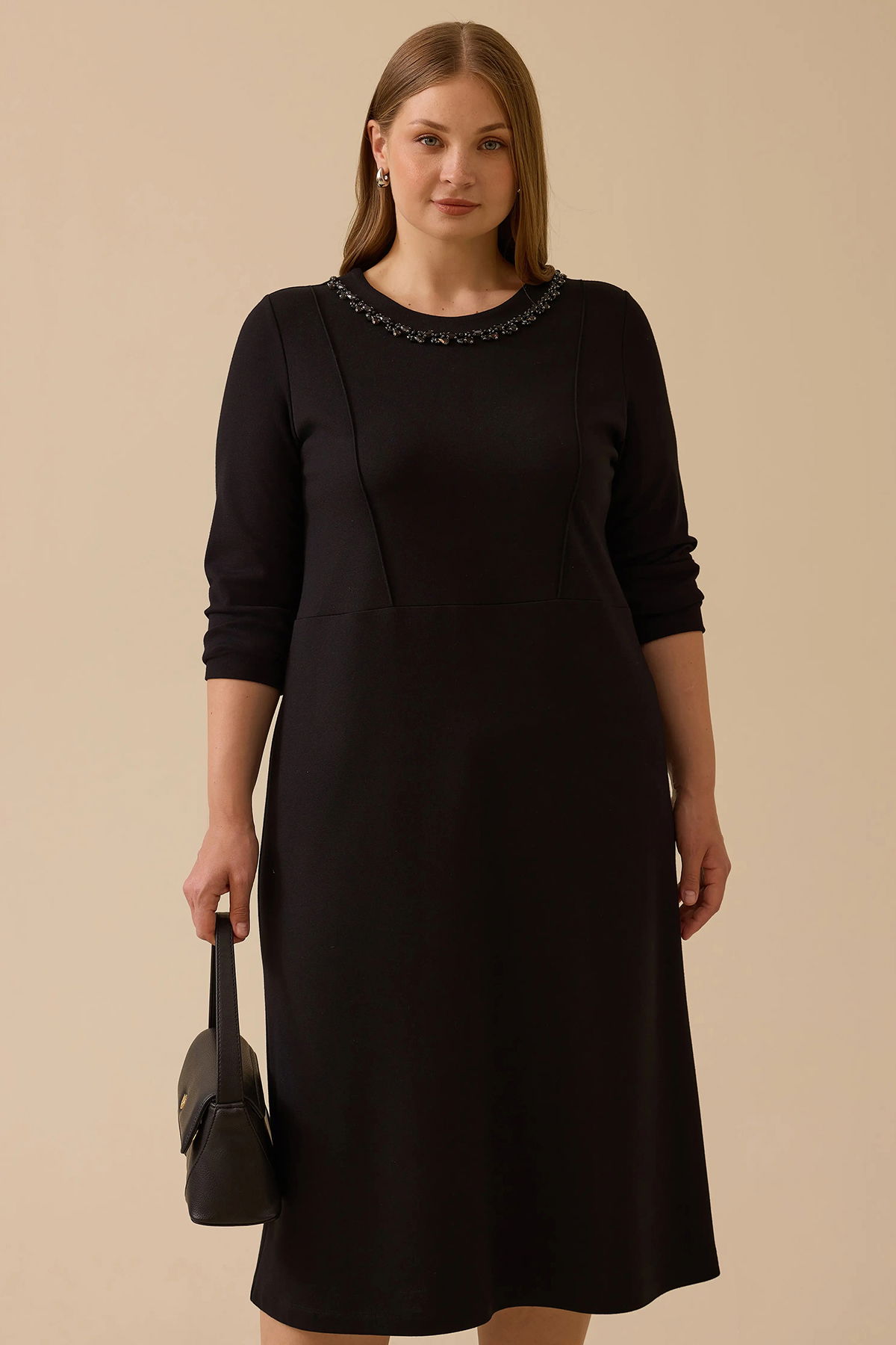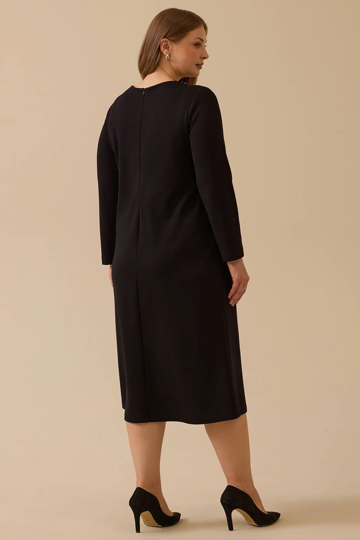 Detay: Düz dokuma kumaştan üretilmiş bu şık elbise, relax kesimi ve diz altı boyuyla zarif ve konforlu bir siluet sunuyor. Yuvarlak yaka ve takma kol detaylarıyla sade şıklığı ön plana çıkaran model, uzun kol yapısıyla mevsim geçişlerinde ideal bir tercih oluyor. Normal bel kesimiyle vücuda dengeli oturan bu elbise, günlük stilinizden özel davetlere kadar her ortamda stil sahibi bir görünüm sağlıyor;