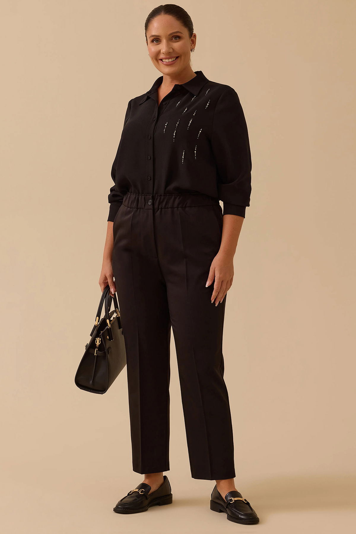 Galaxi Kadın Büyük Beden Tek Düğmeli Düz Paça Pantolon 4001 Siyah