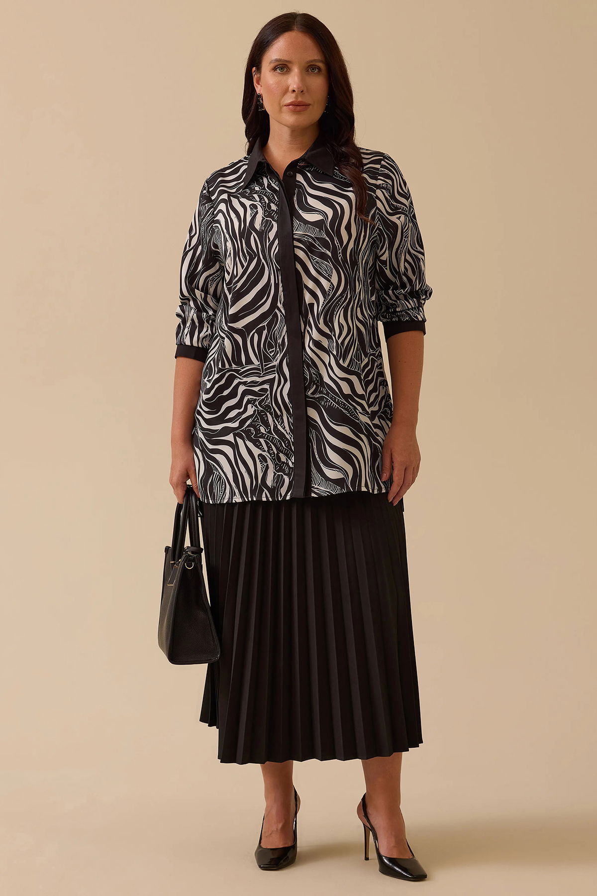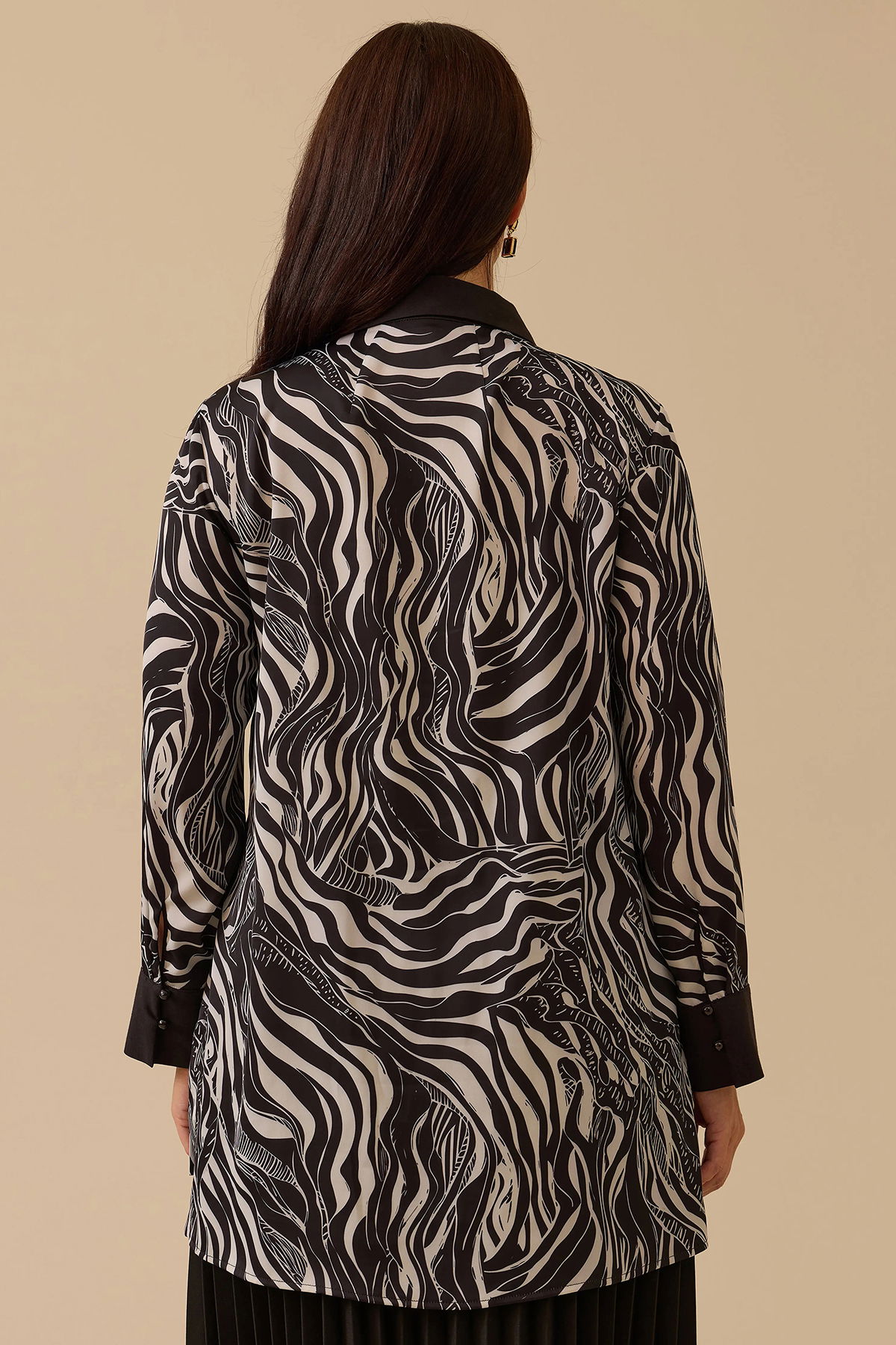 Detay: Desenli dokuma kumaştan üretilmiş bu şık tunik, regular kesimi ve basen altı boyuyla zarif bir siluet sunuyor. Gömlek yaka ve takma kol detaylarıyla klasik şıklığı modern bir çizgiyle buluşturan model, uzun kol yapısı ve düğmeli kapama özelliğiyle hem estetik hem de pratik bir kullanım sağlıyor. Normal bel kesimiyle rahatlık sunan bu tunik, günlük stilinizden ofis kombinlerinize kadar stil sahibi bir görünüm arayanlar için ideal bir tercih oluyor;